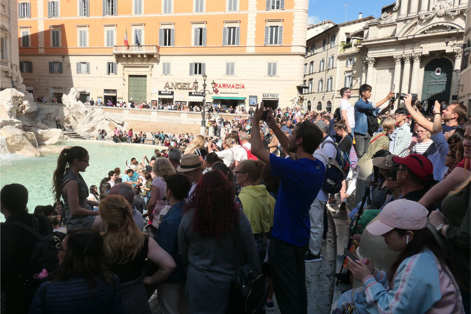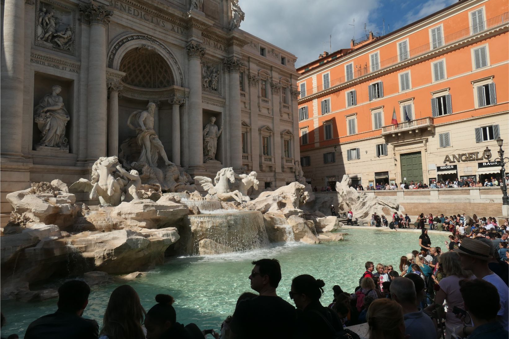 Just a short distance away was the Trevi Fountain. Once again, as expected, it was very crowded. It was beautiful, no doubt. And for anyone who remembers Anita Ekberg’s famous scene in La Dolce Vita where she wades around in the waters of the fountain in her evening dress, there is a nostalgic memory or two.