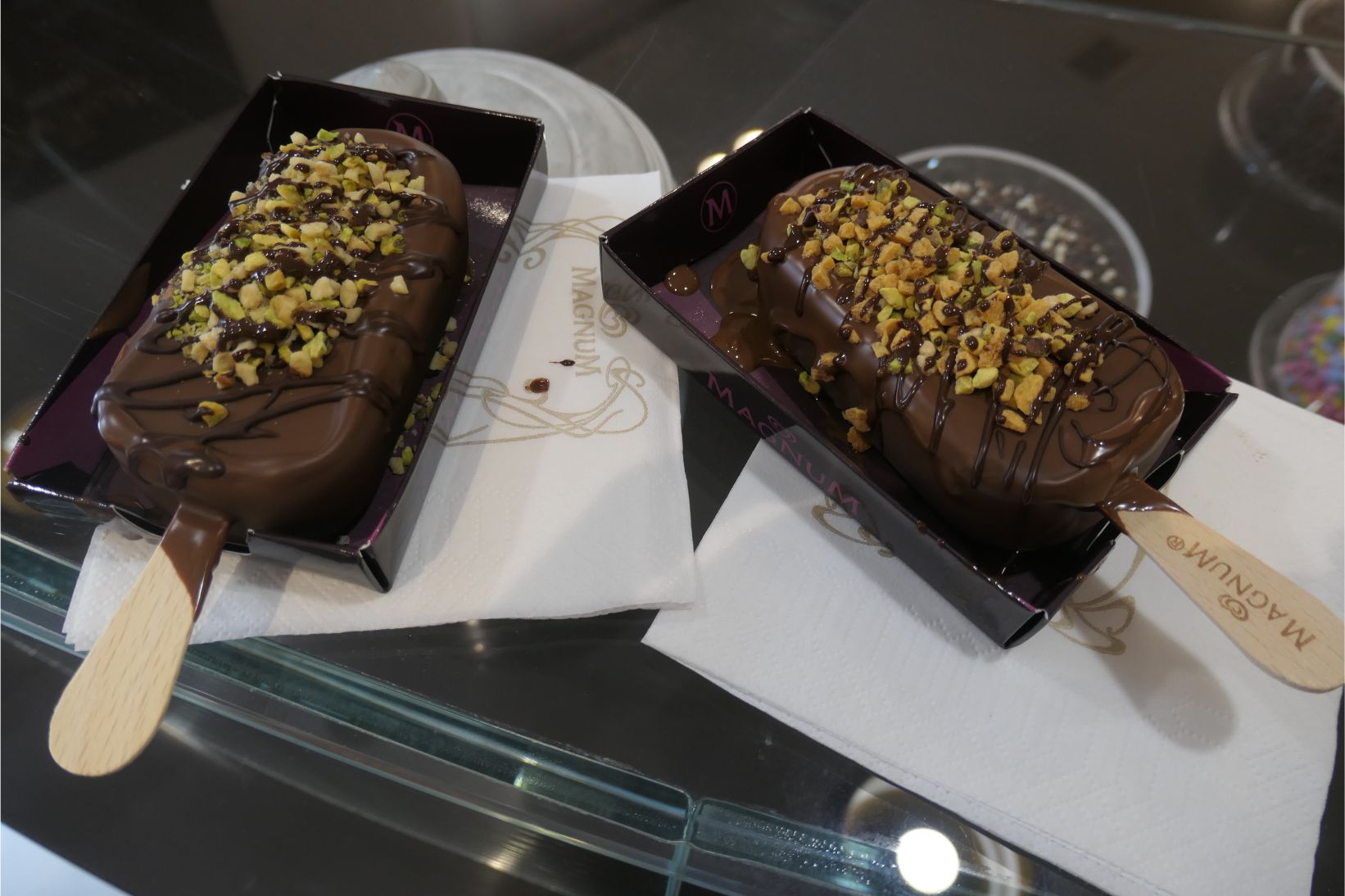 We’ve been treating ourselves with ice creams throughout this European trip, as a reward, I guess, for all the strenuous activity we’re doing. So when we saw a Magnum shop that allows people to determine their own toppings and form of chocolate coating, we went straight in and ordered one each. Yum!