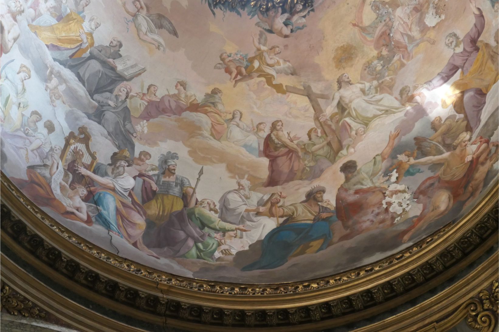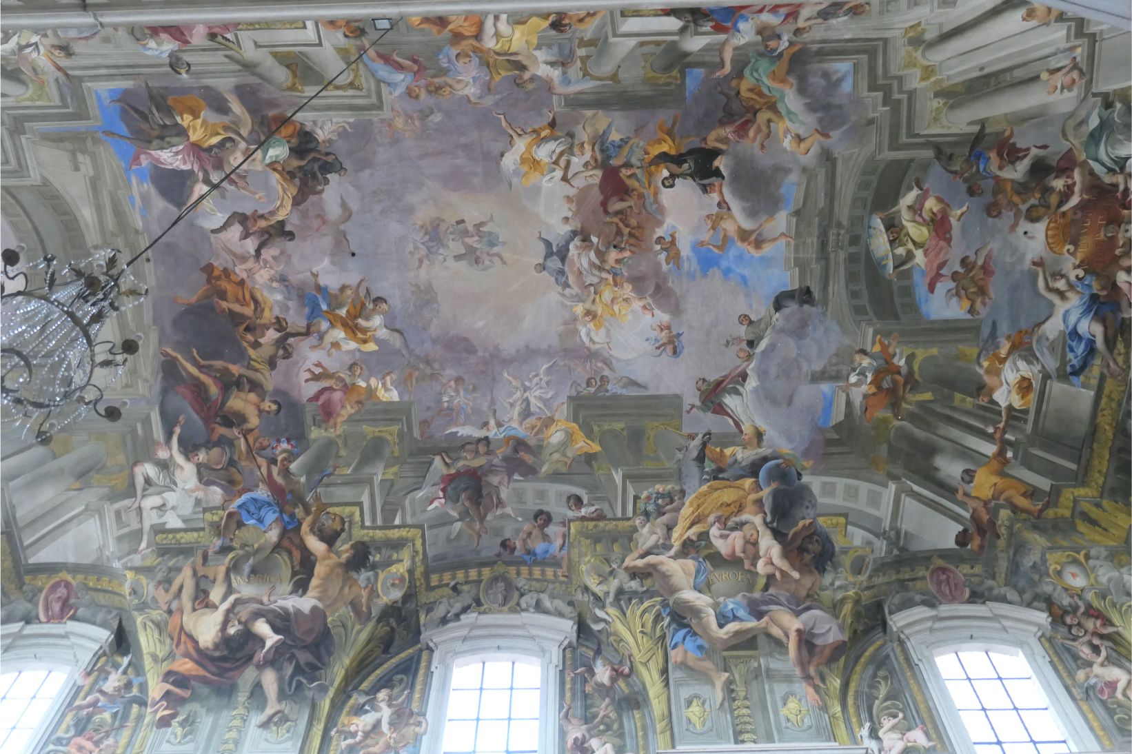 The Church of St Ignatius of Loyola was our next stop on the way back. It suddenly emerged in a narrow side street, which seems quite typical of old cities like this one. You never know what you might chance upon when you turn a corner in Rome. Of course, it was beautiful inside, and once again, it was filled with magnificent art treasures. I particularly loved the painted ceilings.