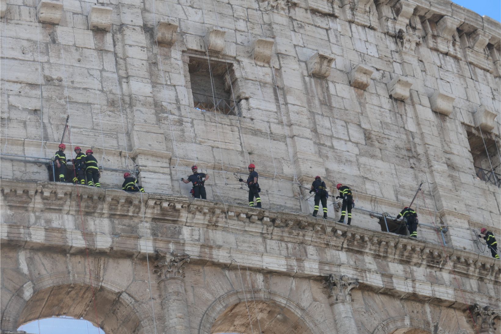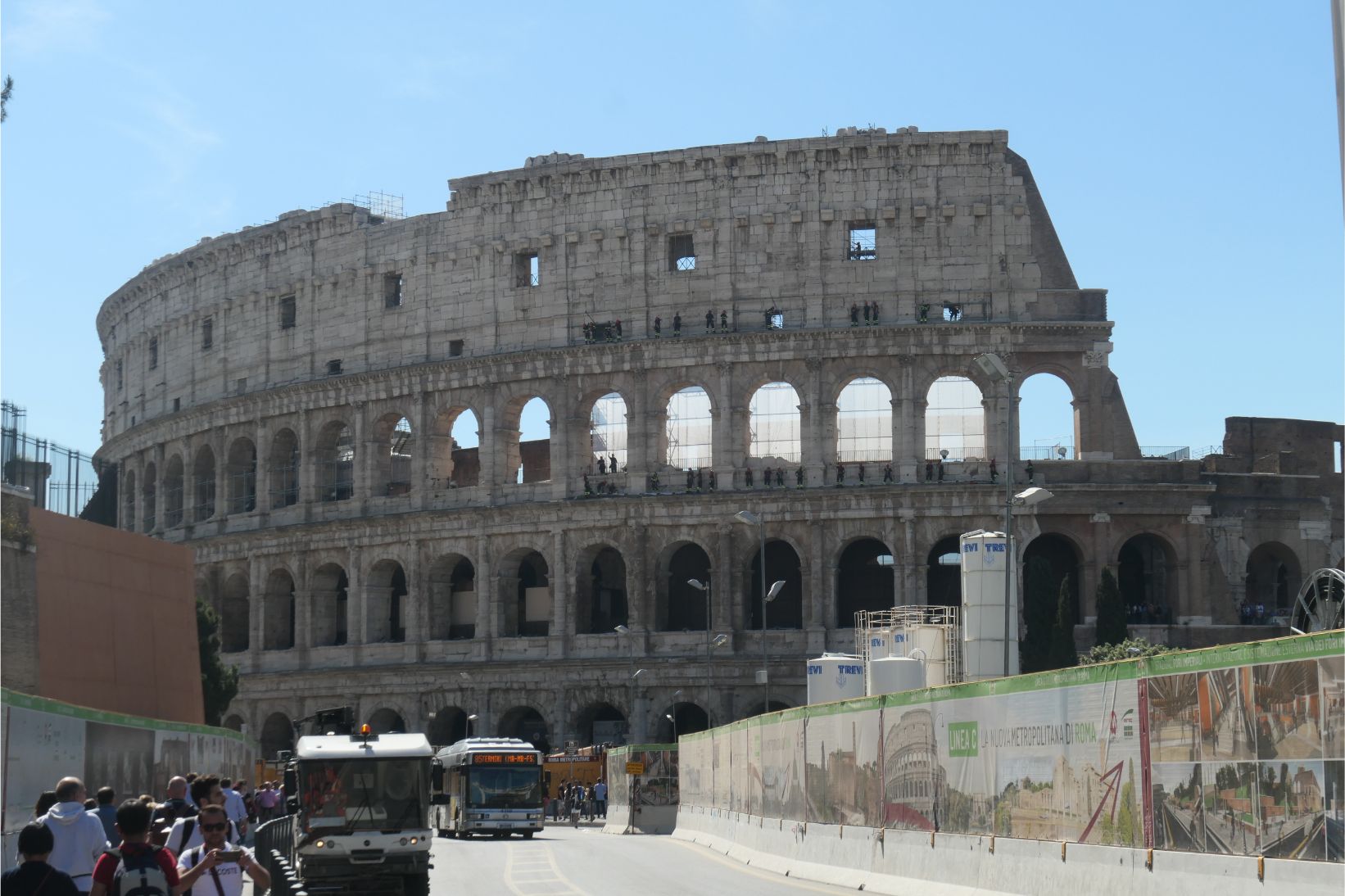 This morning we walked from our apartment to Piazza Venezia on our way to the Colosseum. The general area stretching from the piazza to the Colosseum was being busily prepared for tomorrow’s Republic Day celebration parade. Italian flags were flying out the front of the Vittorio Emanuelle II monument and the lawns and garden beds were freshly manicured. Temporary stands and seating lined both sides of the Via del Fori Imperiali, television camera platforms were being rigged up, paths were closed off by barricades and armed soldiers were quite visible everywhere. On the outer wall of the Colosseum we saw a large group, all harnessed to ropes and looking like they were about to abseil down the face of one of the world’s most famous ancient structures. Instead, they combined to hoist a massive banner up the wall, all the way to the top. I guess it will be unfurled tomorrow.
