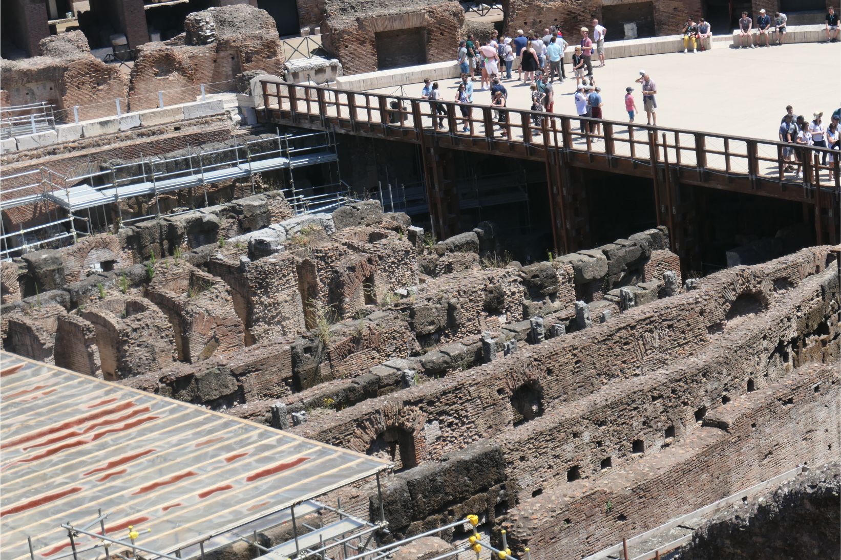 We descended the stairs to the lower level and completed another slow circumnavigation of the arena. We could see from behind barriers that there was another level underground, where animals, weapons, machines and other things required for the sports and games were kept, but this area is currently undergoing renovation so we were unable to go down there for a closer look.