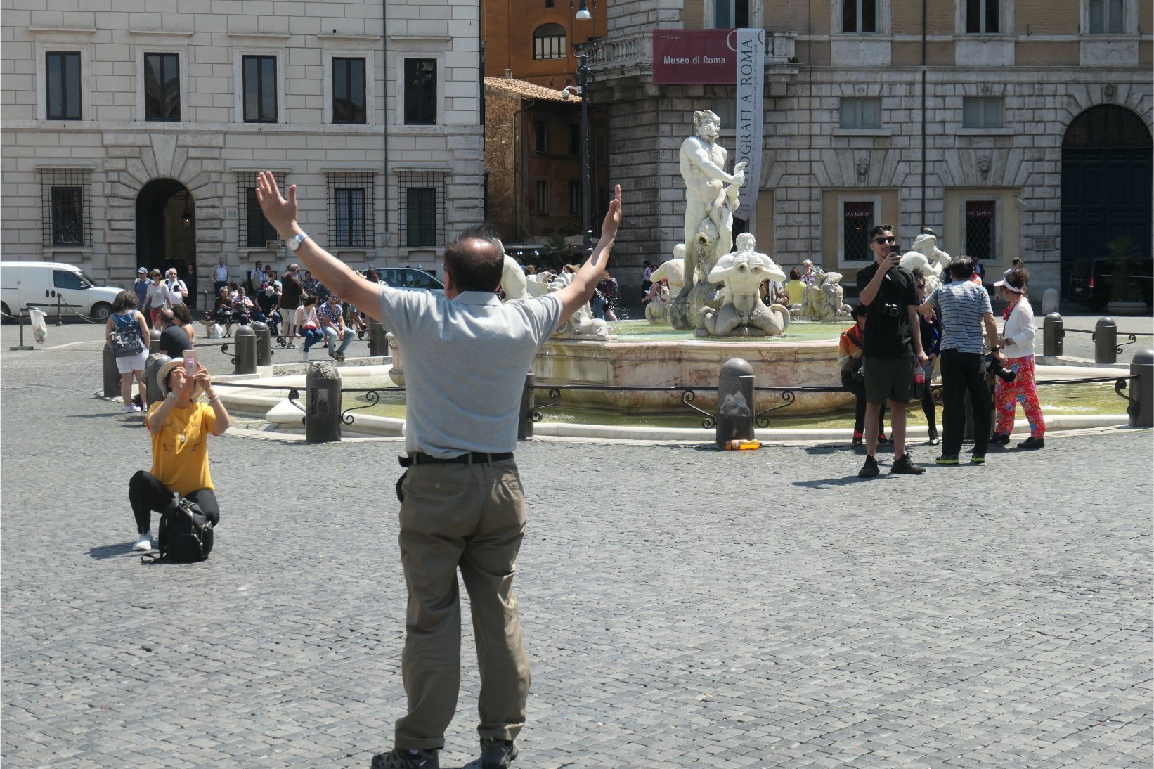 Piazza Navona was one of the biggest we’ve seen here in Rome. It has three very impressive fountains and a large Egyptian obelisk. Some very large buildings surround the piazza and there are many places to dine here. We moved on to Piazza del Popolo, even bigger than Piazza Navona, and featuring yet another Egyptian obelisk. Here we came across a number of tourists getting the hang of operating their hired Segways before they were game enough to take them out on the roads.