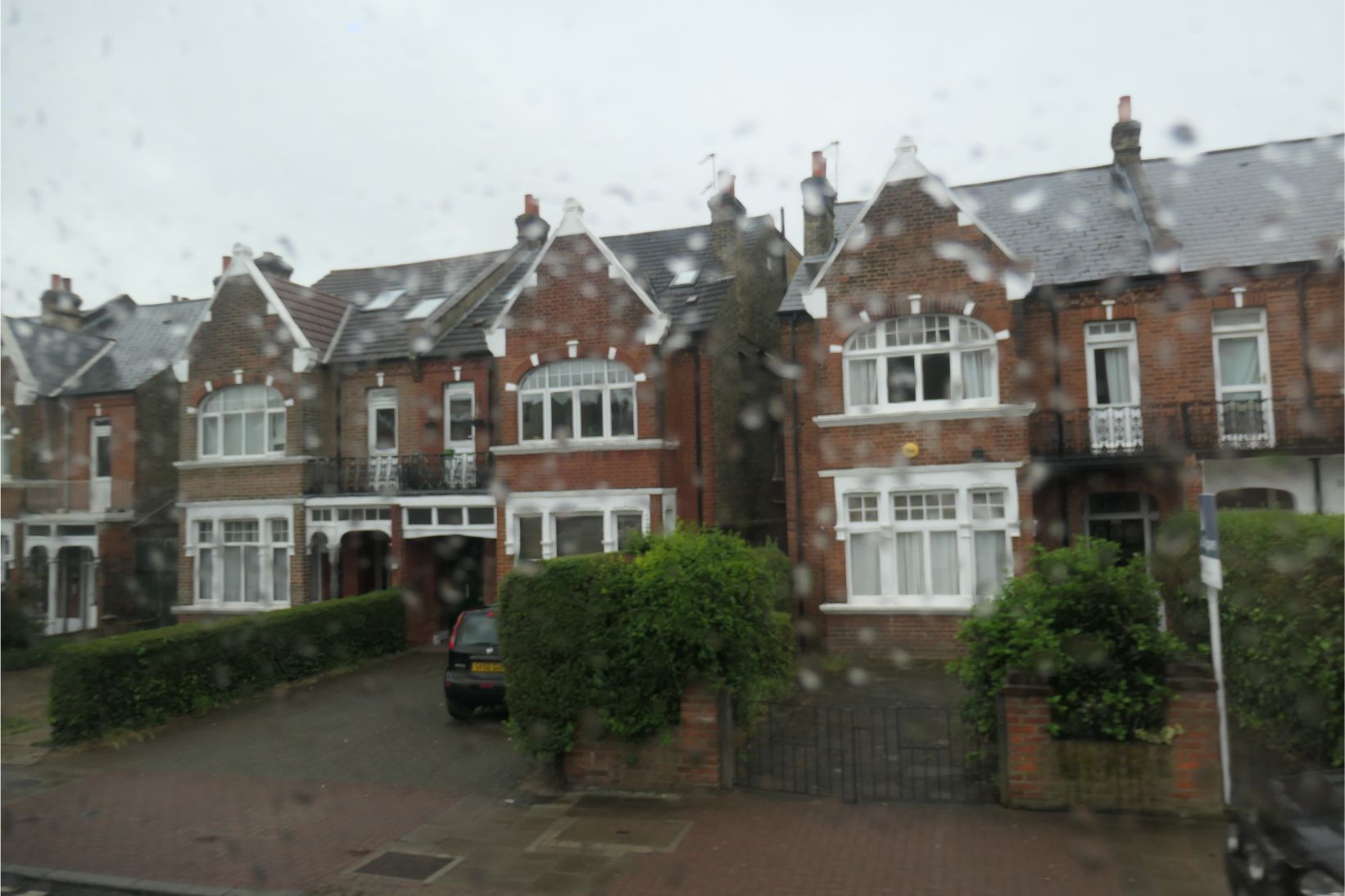 It’s the first week of the northern hemisphere summer, and we’ve just been sweltering in Rome, so we were hoping it would be relatively pleasant in England when we arrived. But we touched down on a gloomy, drizzly afternoon at Gatwick. We bought some tickets for a bus to take us into London. The ride was over two hours, and most of it was in driving rain. What an awful day. But the bus ride was a good one, as it took us through some of the suburbs on the south side of the Thames – Sutton, Mitcham, Streatham, Clapham, Lambeth – and we had a chance to see housing styles and neighbourhoods that were so similar to those we’d seen in movies and television shows when we were growing up. We passed a couple of beautiful cricket grounds that I would have loved the chance to play on when I was younger.