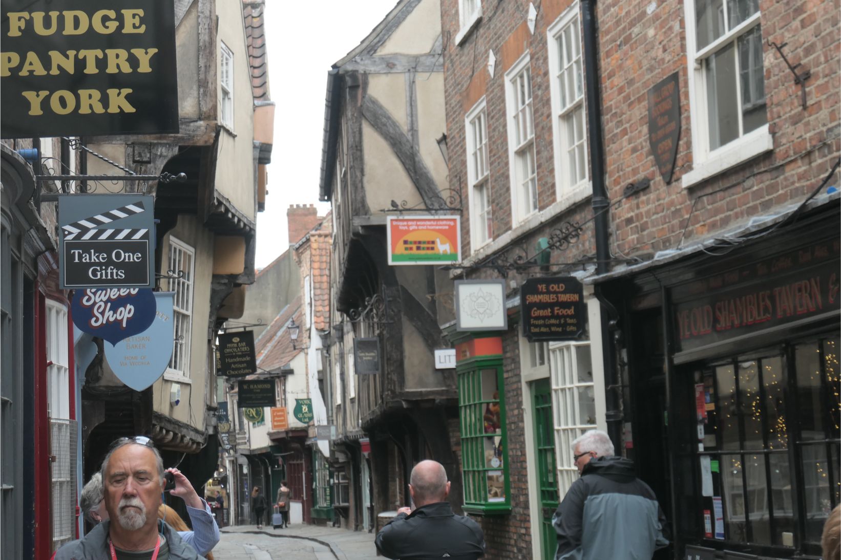 This morning began with a guided walk around some of the historic sites in old York. The history of this town dates back to very early times. The Vikings were here. So were the Normans. Sections of the old city wall and city gates still exist in remarkably good condition. Our walk took us past some of the old fortifications and the city wall. We entered the Shambles via the shortest street in York, named Whip-Ma-Whop-Ma-Gate, which is so short one shop has the street number 1½.