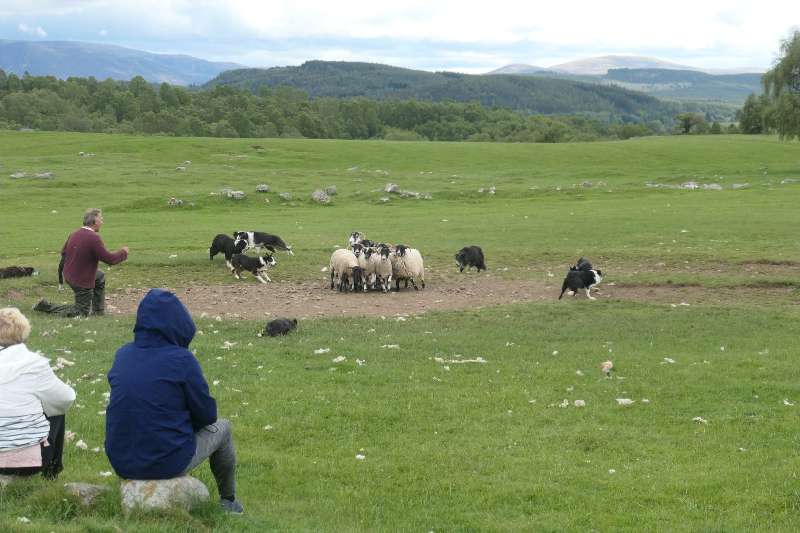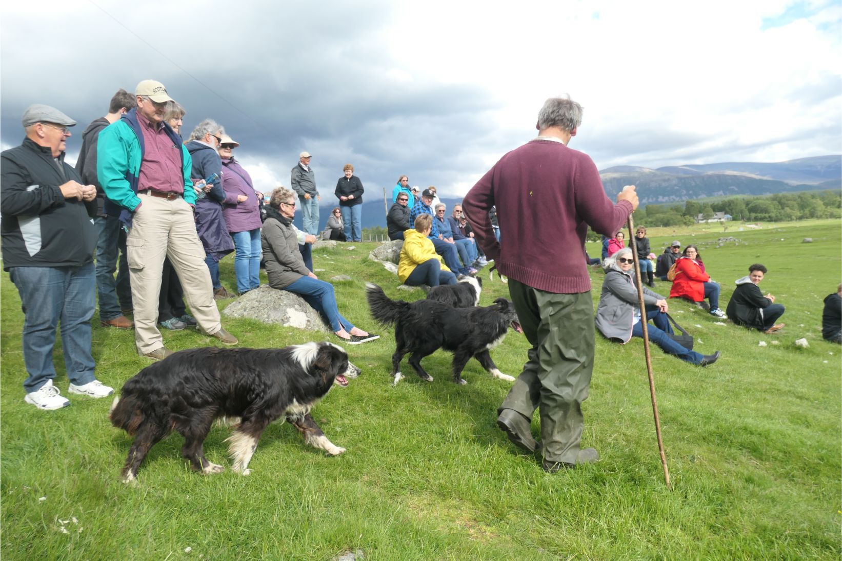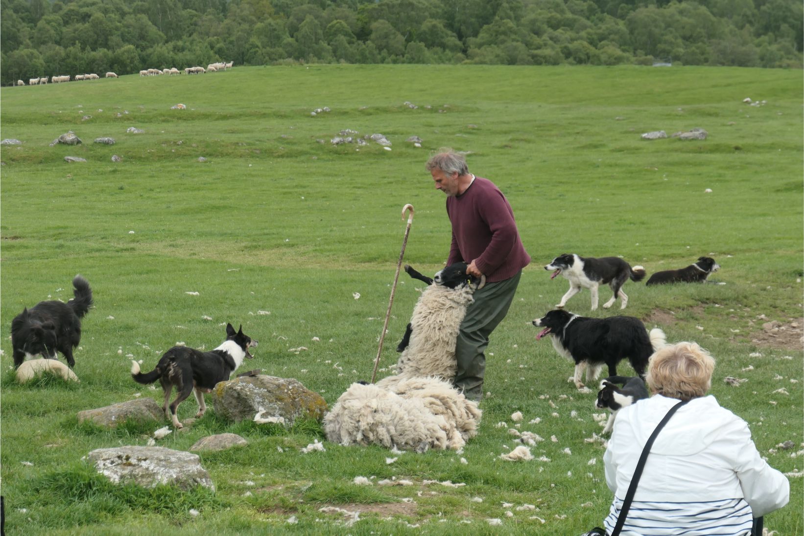 Soon after our arrival at the Laggan Hotel we were back on the bus, travelling to a nearby farm to view a sheepdog demonstration. Neil was born and raised on this farm, where his father was the shepherd before him. Neil has a well-trained team of border collies who respond to his voice commands and whistles to round up the sheep and bring them quickly to Neil or take them to a pen.