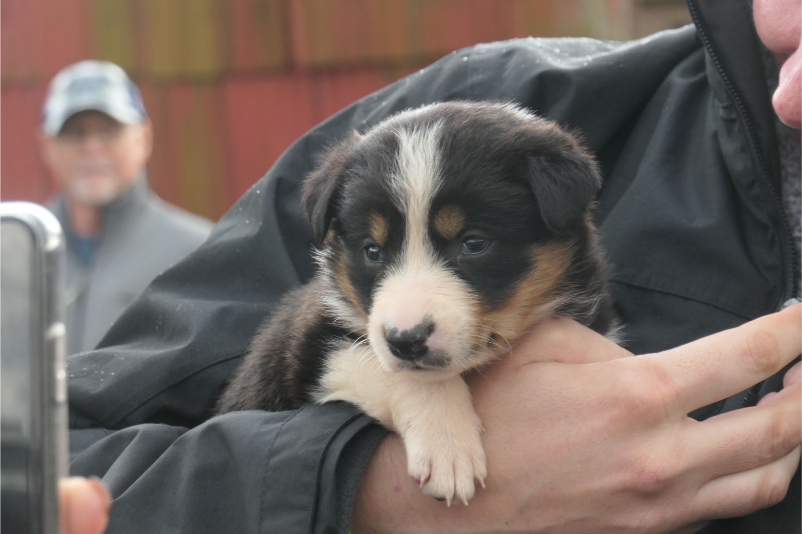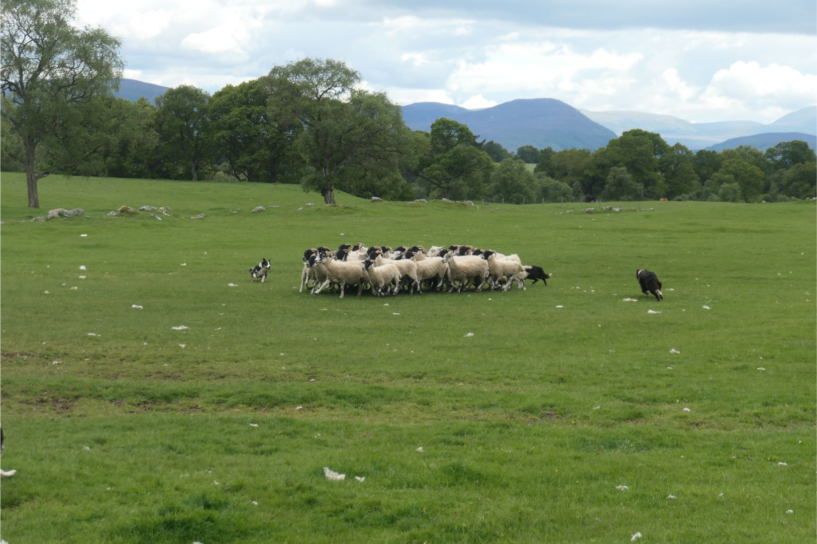 Neil’s a bit of a character, with a broad Scottish accent. He’s very matter of fact when he explains what the dogs are trained to do. Sometimes his command was a single spoken word, sometimes a harsher shout. His whistles ranged from piercingly loud to some that could barely be heard. But each time Neil gave a command, one or more of the dogs responded, just as he had trained them to do. And within moments the herd of sheep that had been grazing in a distant part of the field were brought to Neil and circled by the dogs to ensure none could break free. Towards the end of the demonstration, we watched a pup going through its paces. It did not have all the skills of the other dogs, so at times Neil had to hold it in his arms until it learnt what had to be done and when.