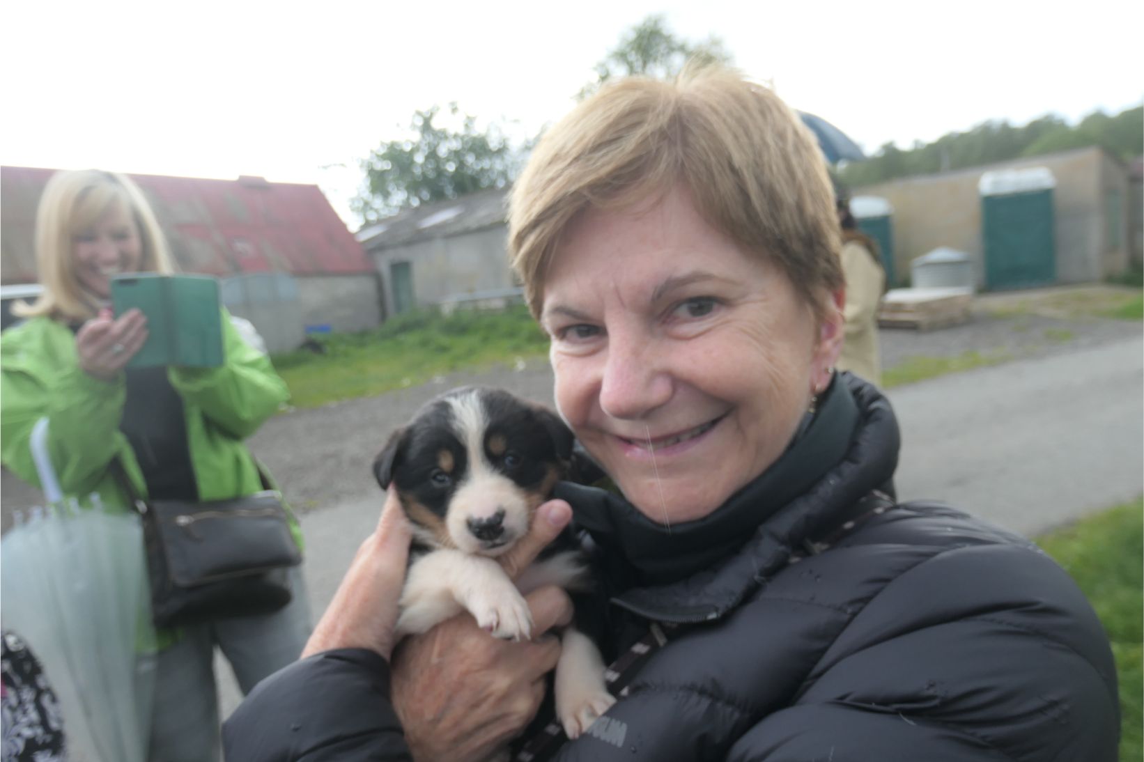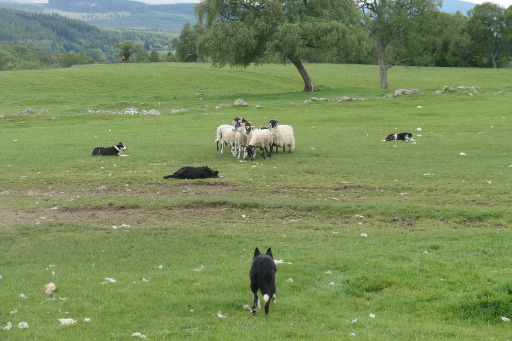 The visit ended with lambs and puppies to be held and cuddled. Neil was doing a brisk business selling children’s books written by his wife about life on the farm. It began to rain quite heavily, so Neil grabbed the puppies and put them straight into a car, as they were so young they’d had no experience of rain in their short lives. But the rain didn’t last long, and we returned to the hotel in Laggan in bright late afternoon sunlight.