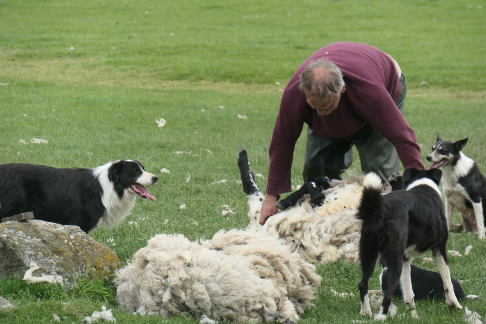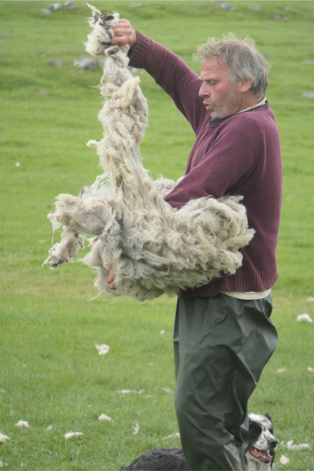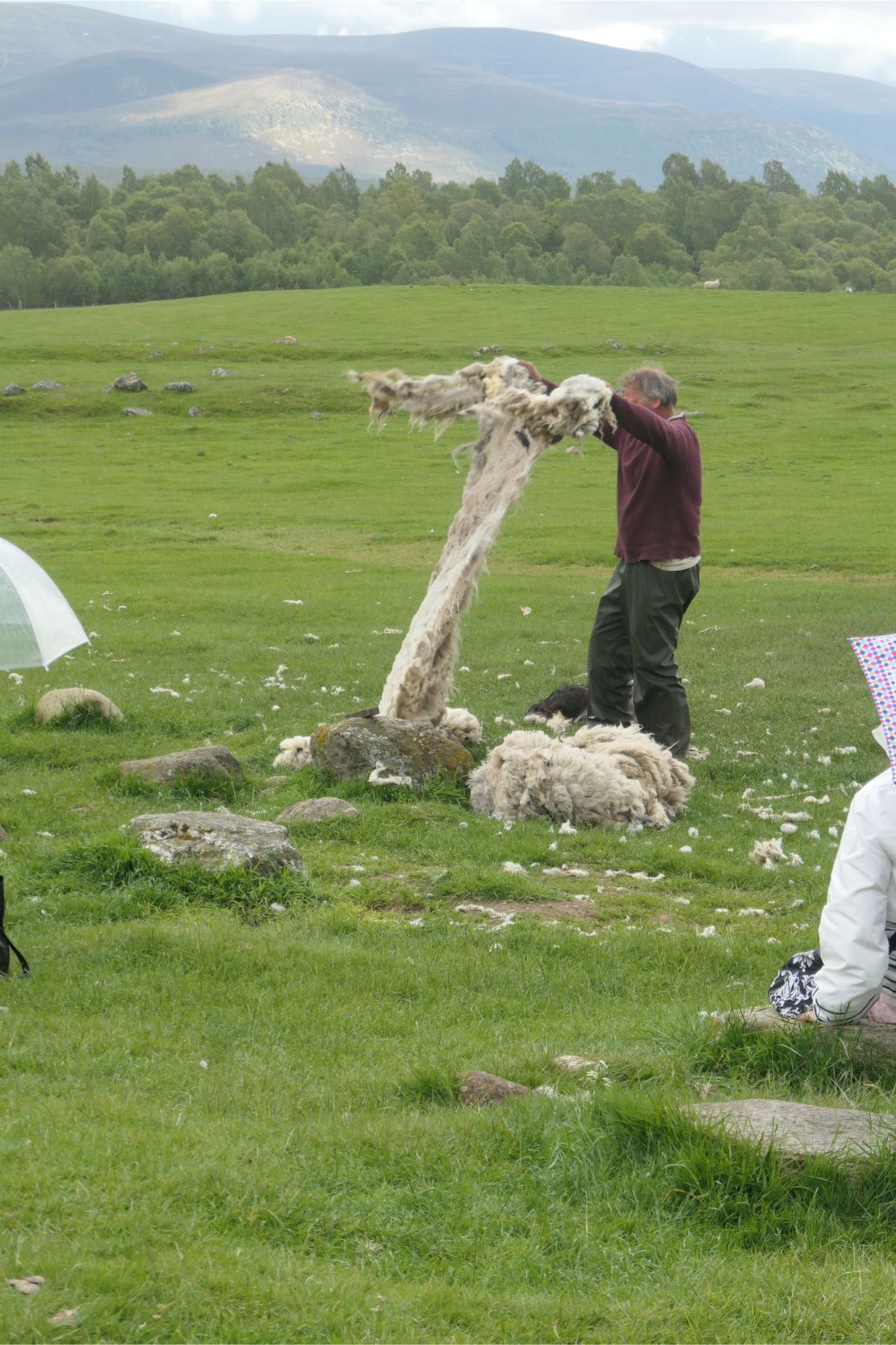 Neil took a sheep by its horns and held it to him. He took out a pair of clippers and proceeded to shear the fleece from the sheep so that when the job was done he left with a single fleece. Neil offered his audience an opportunity to try their hand at shearing, but there were no volunteers. I’m not sure whether it was the bucking of the sheep when Neil first grabbed it, the horns, or the thought of harming the sheep that worried people, but I think there might have been elements of all three in their decision making process. I certainly wouldn’t have felt confident holding the animal and removing its fleece at the same time.