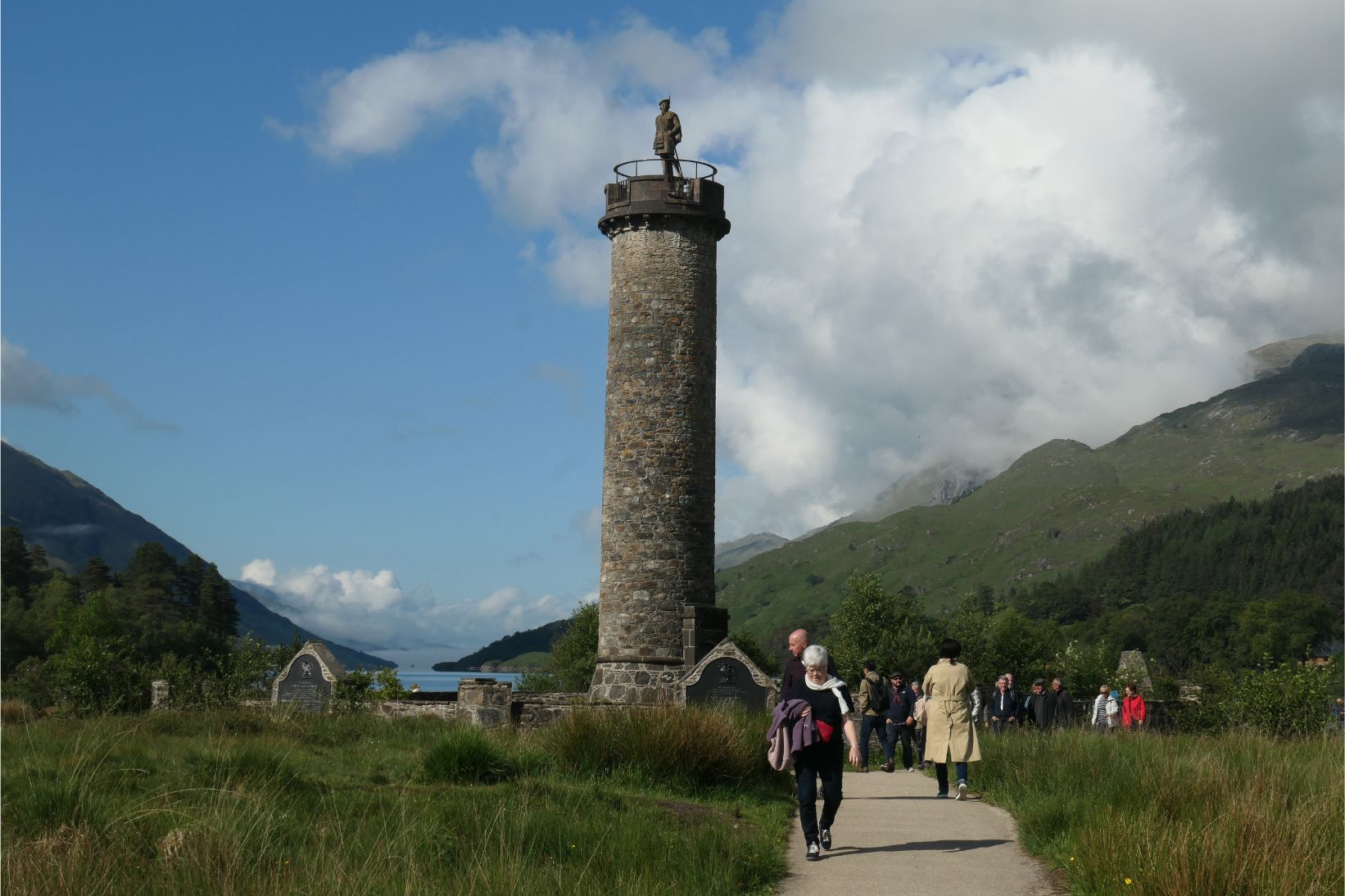 At Glenfinnan, we caught a glimpse of the viaduct which has featured in several Harry Potter movies. The construction of this viaduct was one of the great engineering feats of the Industrial Revolution, which was my favourite topic to teach my Year 9 history classes, so I was delighted to see it and would have loved a closer look. Across the road is the magnificent Glenfinnan Monument to the brave Highlanders who supported Bonnie Prince Charlie in the failed Jacobite Rising against the British. The Jacobites’ quest was to oust the reigning Hanoverians and restore the Stuarts to the throne of Britain. Sadly, the Jacobites suffered a disastrous defeat at Culloden, when their numbers were decimated in battle and survivors were hunted down and executed. The power of the clans was lost and the rights to wear their kilts and speak in the Gallic tongue were removed from them. The highlander atop the monument stares out over the mountains, with the waters of Loch Shiel stretching out behind him. This is a place of great beauty where a terrible slaughter is remembered.