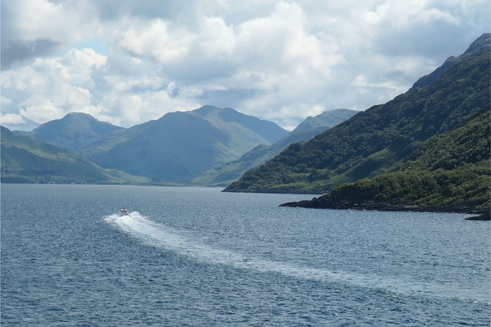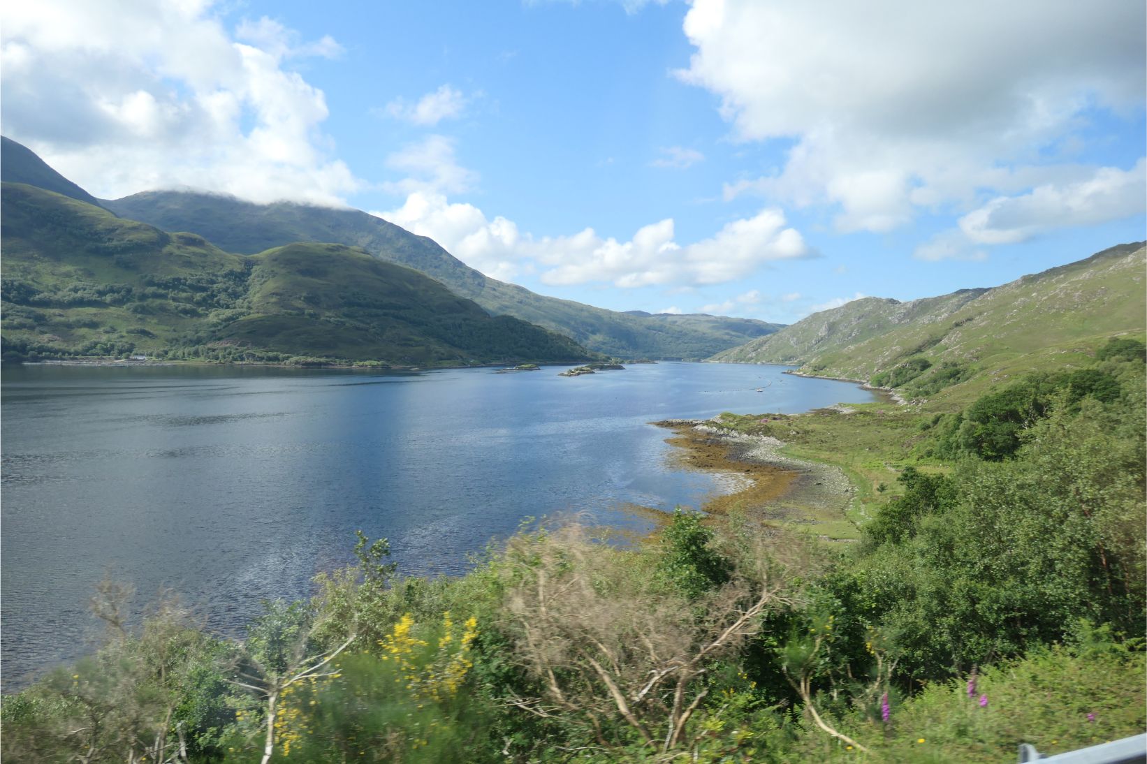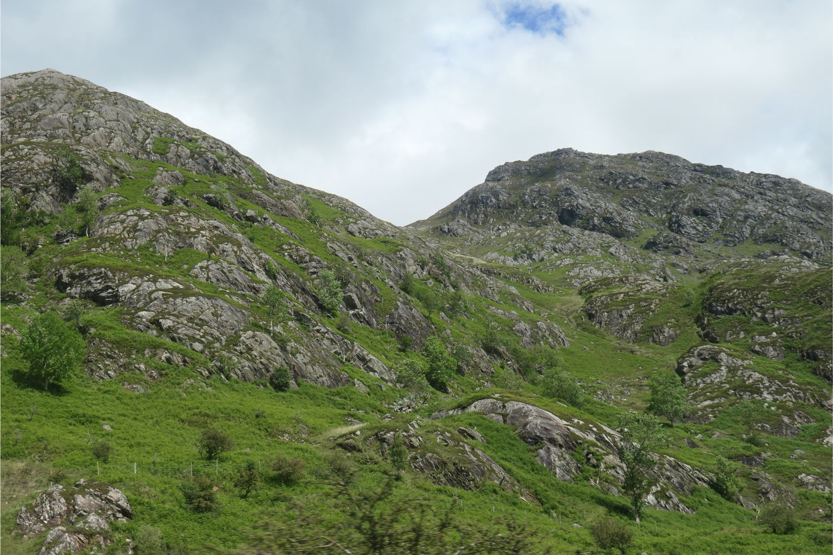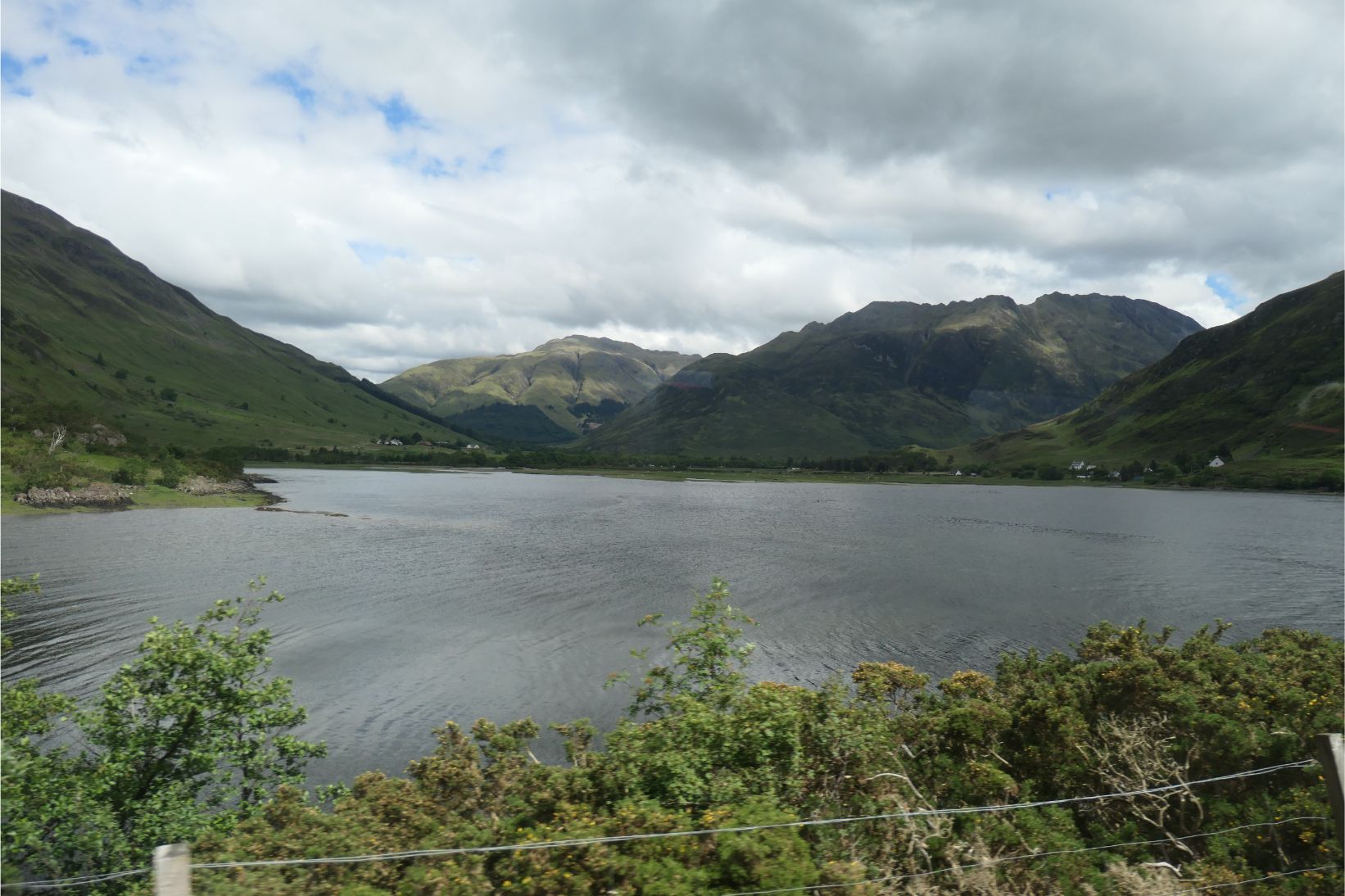 The road took a gently winding path between the hills, occasionally passing through a small rustic village. We passed lakes and streams. Ben Nevis, the highest peak in the British Isles, was on our left, the upper slopes obscured by clouds. Some of the hills were so high and desolate, that I found myself wondering how the highlanders of the past would have handled such difficult terrain. They must have been hardy, resilient souls to live in this wild country.