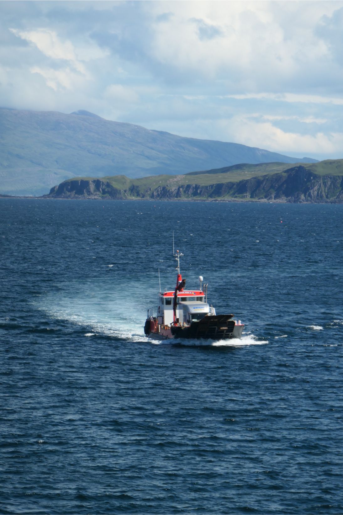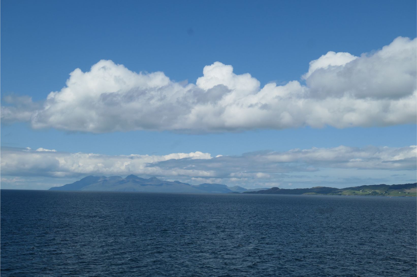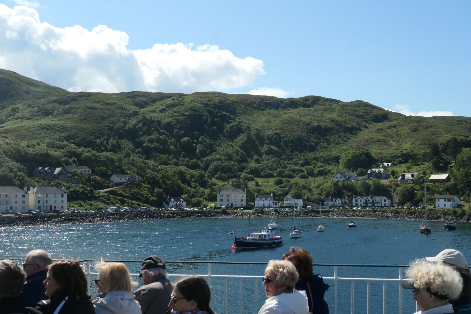 The road continued through to Malaig, where we disembarked from the bus for the 30-minute ferry ride across the sea to the Isle of Skye. It wasn’t too windy, so I took the opportunity to enjoy the views from the open top deck. It was quite crowded up there. The sea was quite calm and it was a very smooth crossing. In the distance we could see some of the other islands of the Inner Hebrides. When I was a little kid in primary school, we often had to sing the Skye Boat Song. I never realised at the time that Skye was actually a place. I always sang “over the sea to sky” and wondered what the words meant. It took a while for the penny to drop. Text continues below the next group of photos.