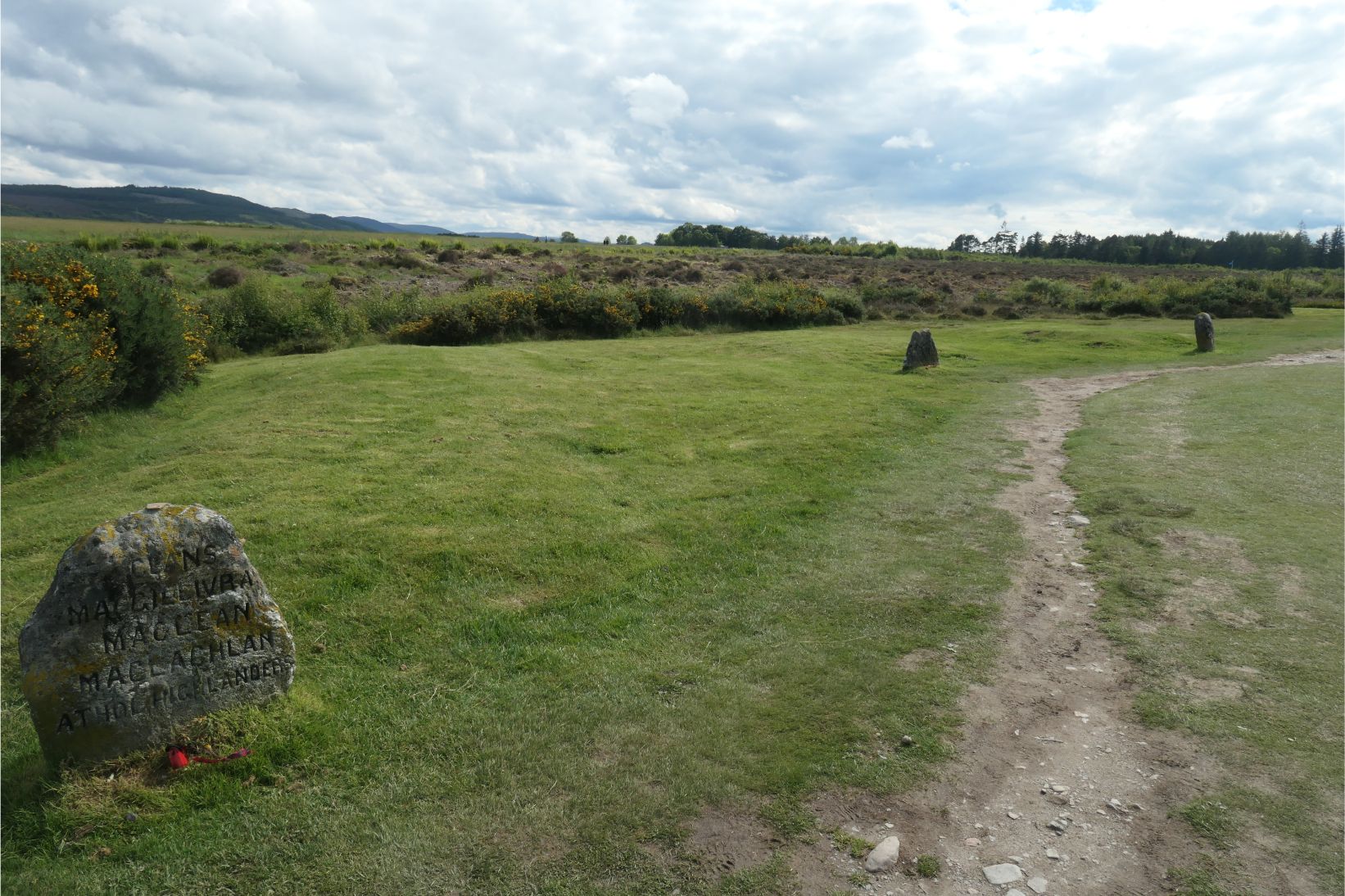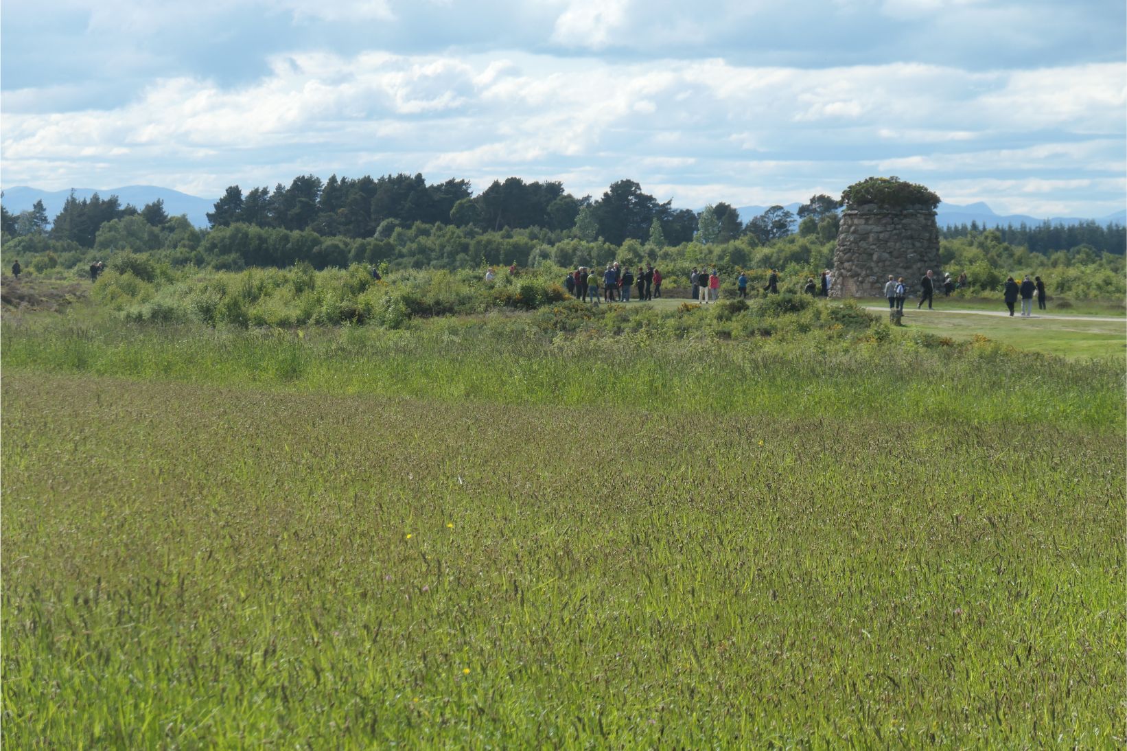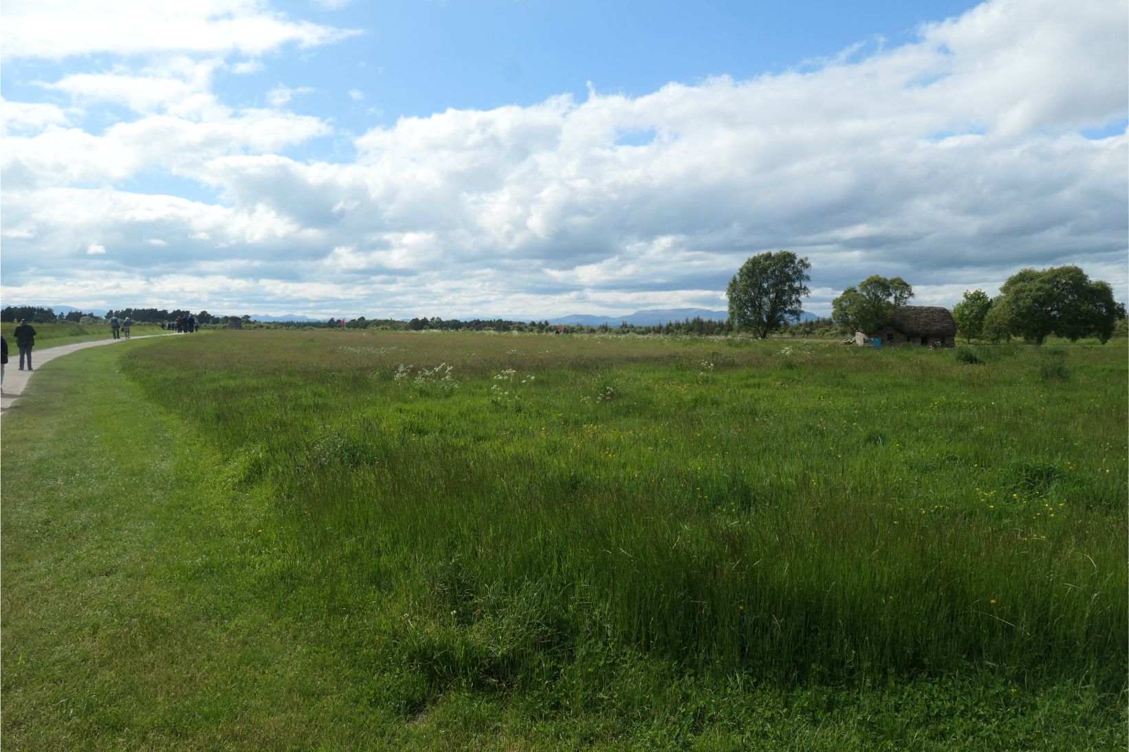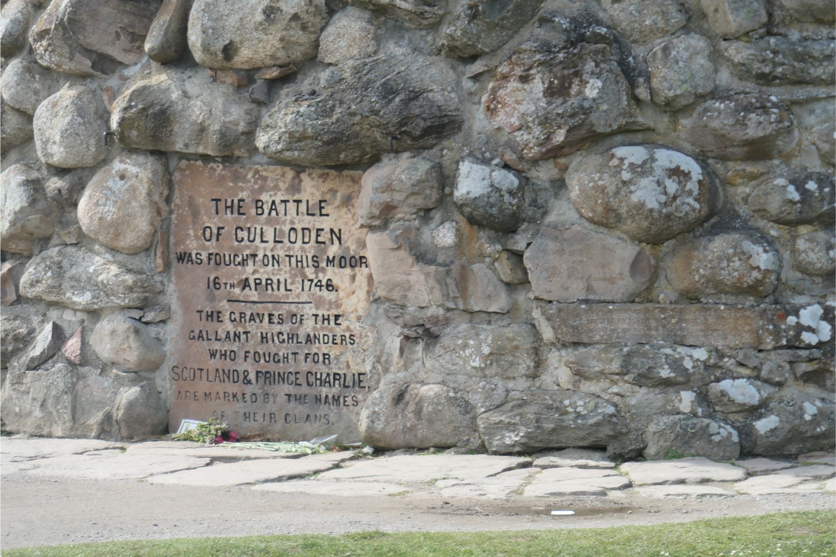 At Culloden Moor, Marg and I walked out across a desolate, vacant field. Gorse bushes, long grasses and small shrubs, marshy bogs and uneven terrain cover the area of the former battlefield, causing one to wonder how the Jacobite highlanders could have ever charged into battle without losing their footing or sinking calf-deep into the slimy peat. Culloden was the last battle ever fought between two opposing sides on British soil. Bonnie Prince Charlie’s Jacobite supporters belonged to some of Scotland’s most powerful clans. They were fine warriors when all things were equal, but they were armed with claymores and the British had guns and artillery. It was a tragic mismatch and the courageous, but ill-equipped, highlanders were slaughtered in large numbers. Many years after the battle, stones were placed at the foot of each of the mass graves, identifying the clansmen who fell in the service of the Jacobites. Marg and I recalled some of the facts we’d learned about the causes and outcomes of Culloden from the Outlander series as we wandered along the path from the memorial cairn. The battle scenes were brutal, reflecting an event which changed the course of Scotland’s history forever.