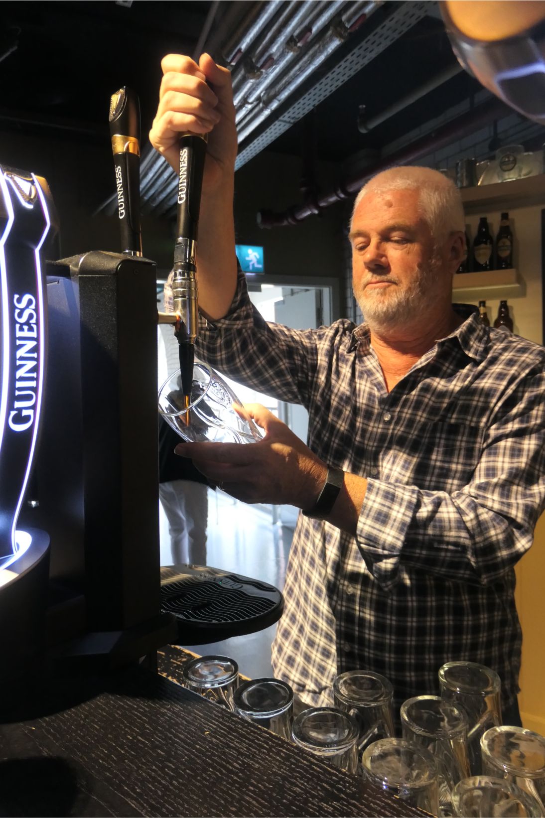 This morning’s first destination was the Guinness Storehouse. Our local specialist, Mary, told us a number of stories about Dublin’s past and present as the bus toured the city en route to Guinness. Some notable sites we passed were the Georgian houses with the different coloured doors, built during a period of English rule. Four King Georges of England reigned during this time. We saw Oscar Wilde’s house and the statue built to honour him. Then there was the lady selling toilet rolls on a street corner which the locals refer to as ‘bogside’. There was a canal running through the town, straight out of the Industrial Revolution, with water spilling over a lock. And not forgetting Irish pubs, lots of them, including the newest one – The Virgin Mary. Mary told us about the hard times Dublin and its people went through, as recently as the 2008 Global Financial Crisis and its aftermath, but she reassured us that the city is bouncing back well again and Dublin is now back on its feet and forging ahead.