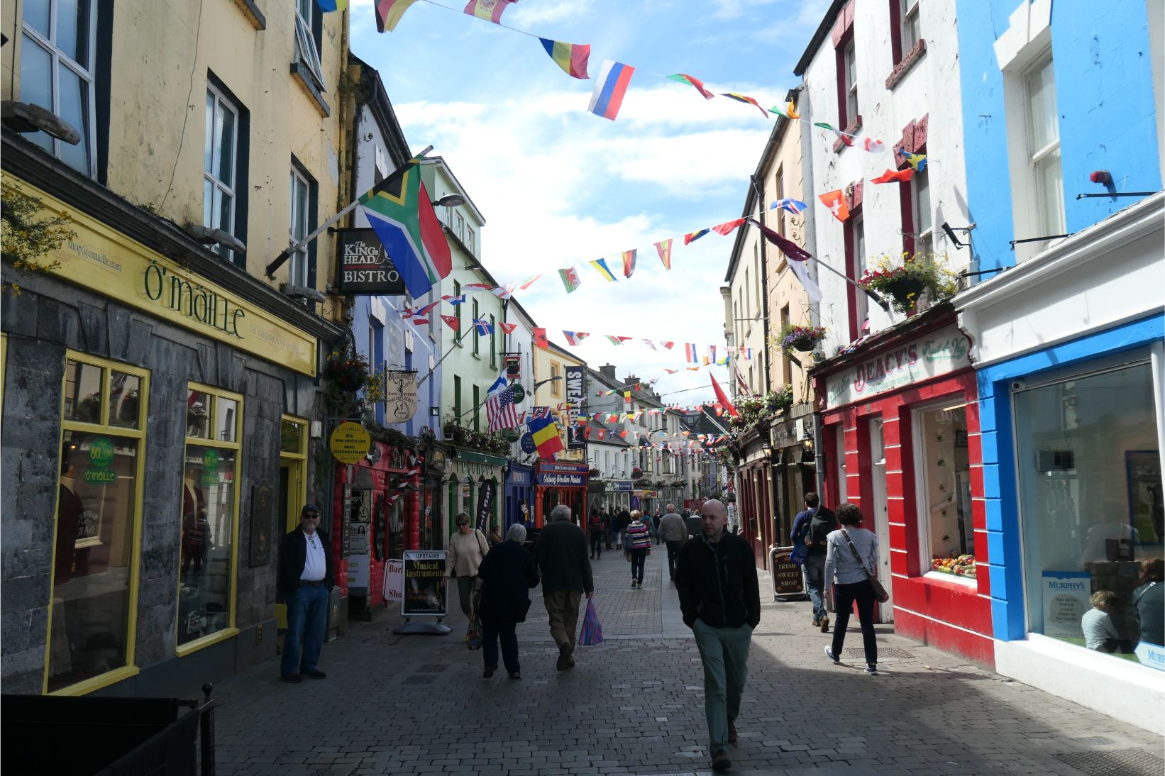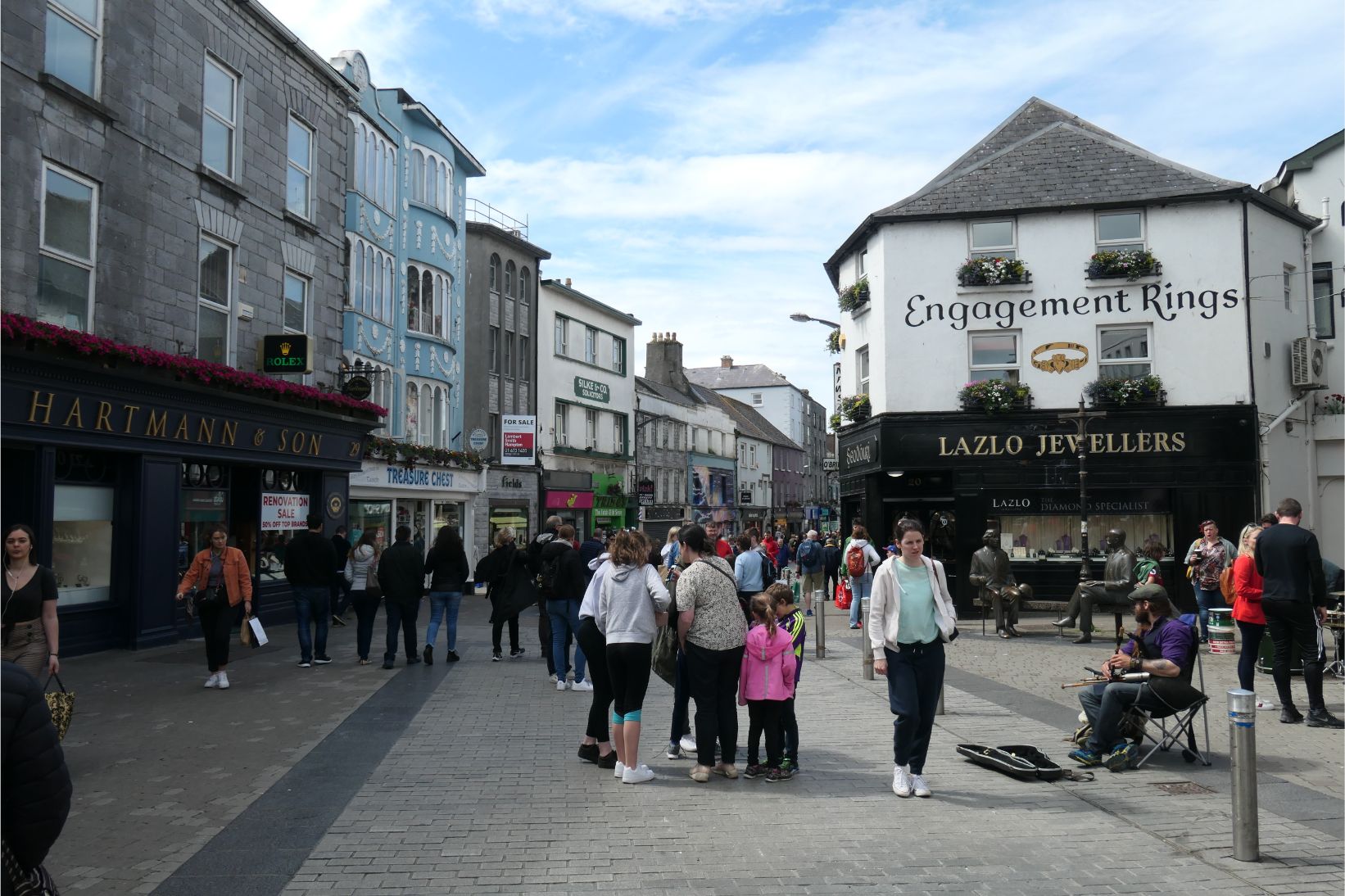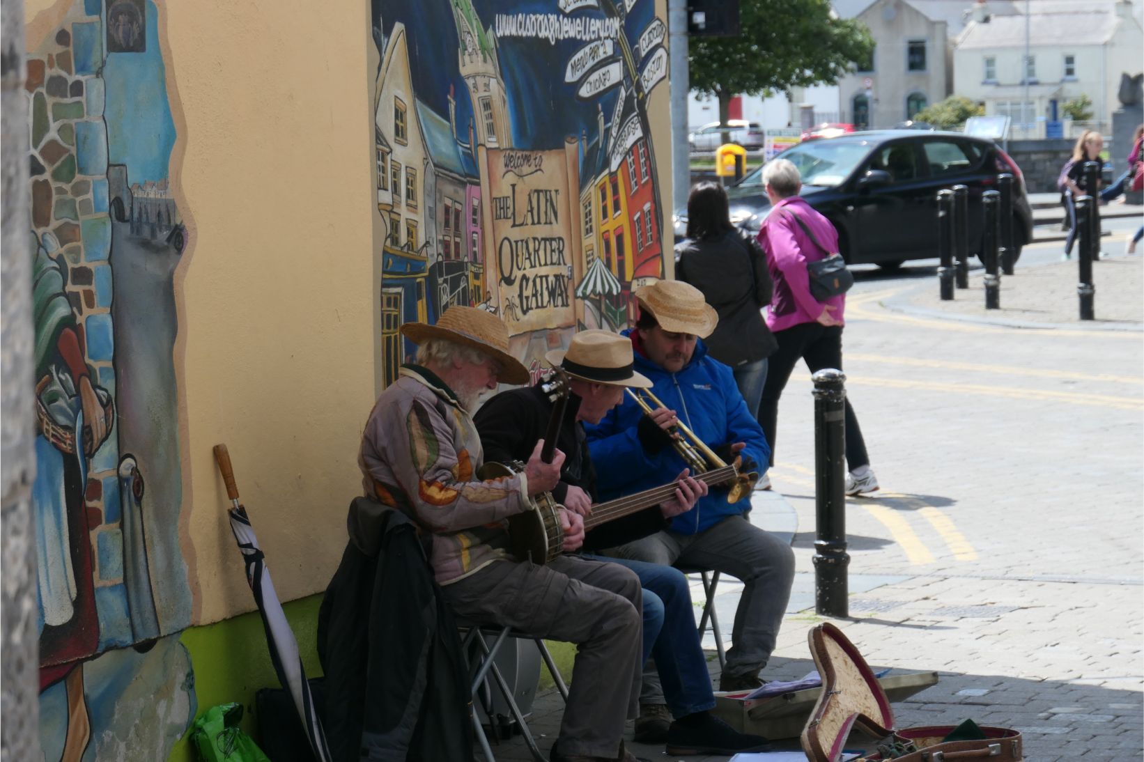 We were able to have a couple of hours in Galway. The sun was out and the skies were blue. There were plenty of people out and about in the main shopping precinct. Coloured flags representing the fourteen tribes of the region fluttered in the breeze. There seemed to be musicians busking on every street corner. Irish pubs were plentiful. The vibe across the town was a good one. Everyone seemed to be having a great day. So were we.