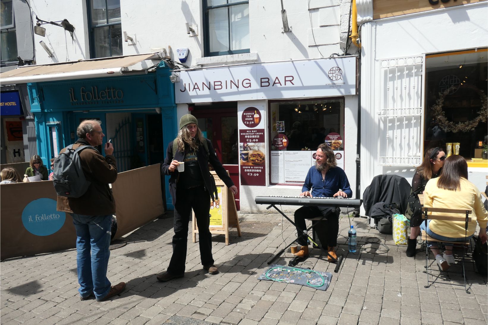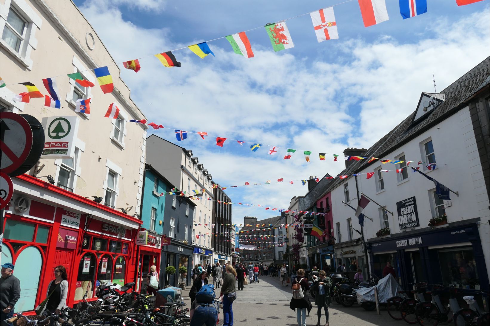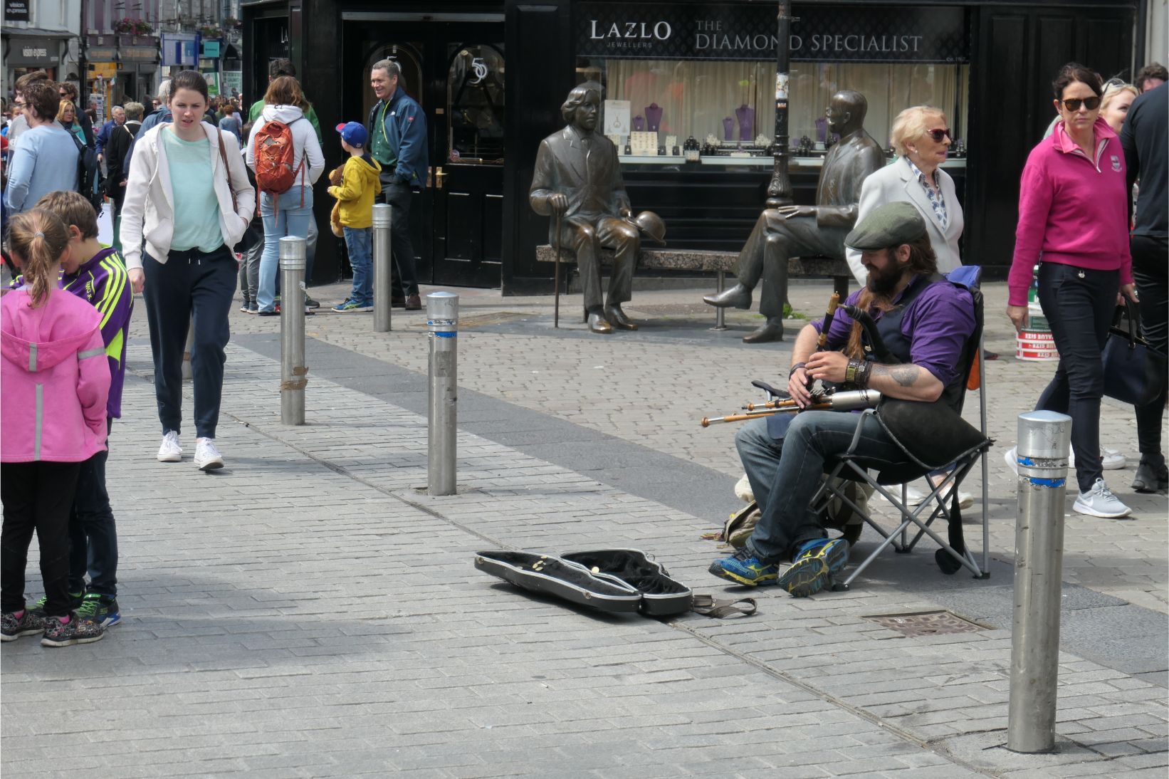 We were able to have a couple of hours in Galway. The sun was out and the skies were blue. There were plenty of people out and about in the main shopping precinct. Coloured flags representing the fourteen tribes of the region fluttered in the breeze. There seemed to be musicians busking on every street corner. Irish pubs were plentiful. The vibe across the town was a good one. Everyone seemed to be having a great day. So were we.