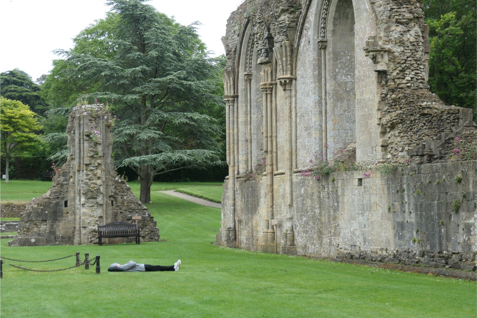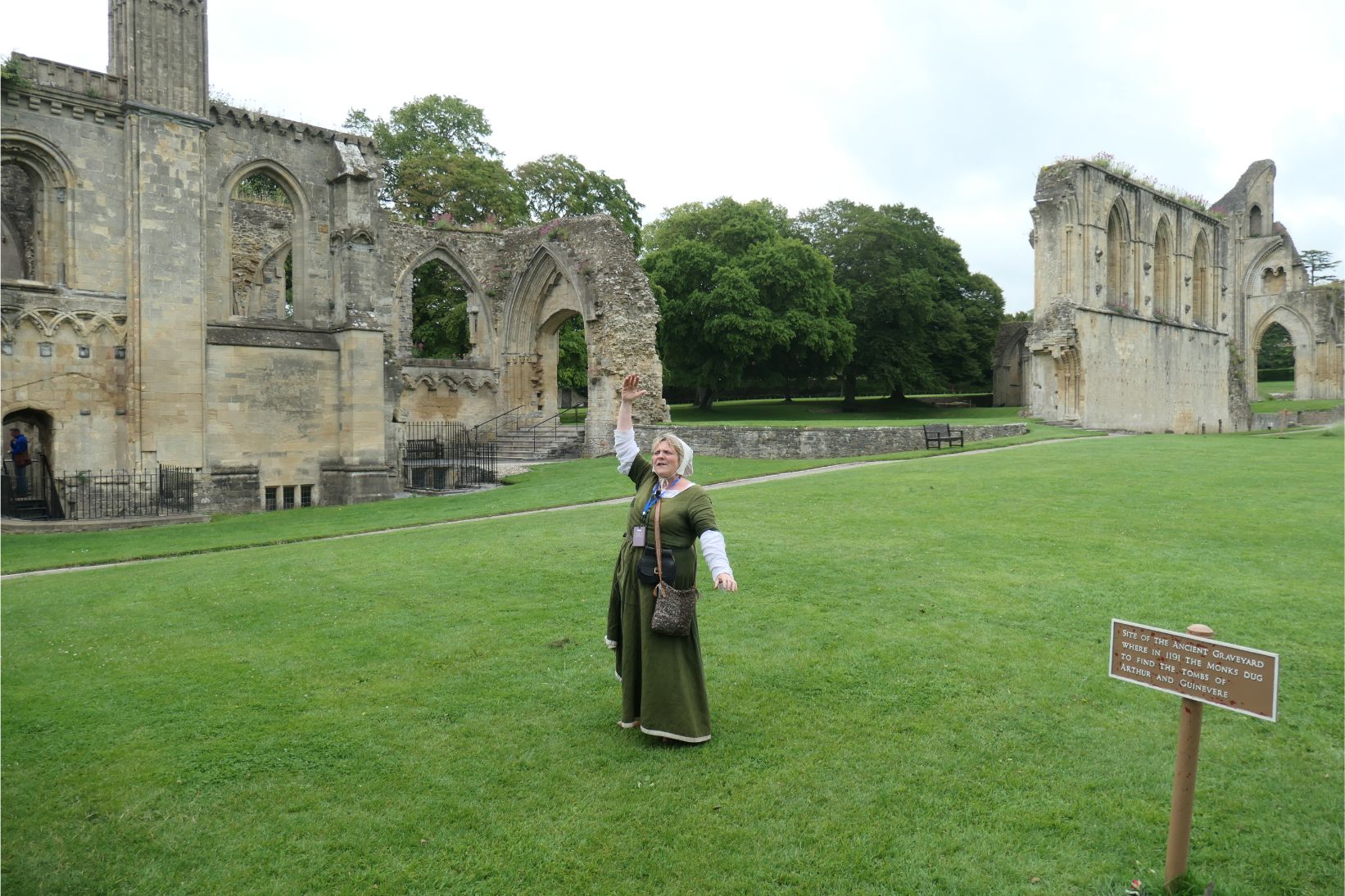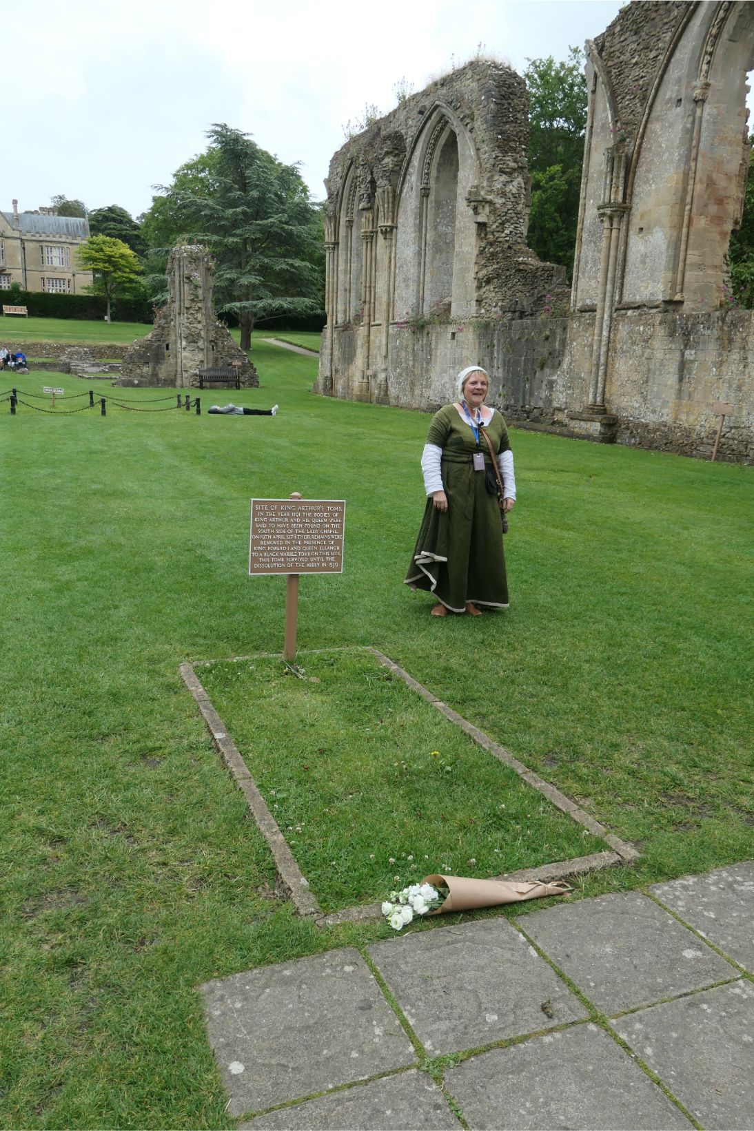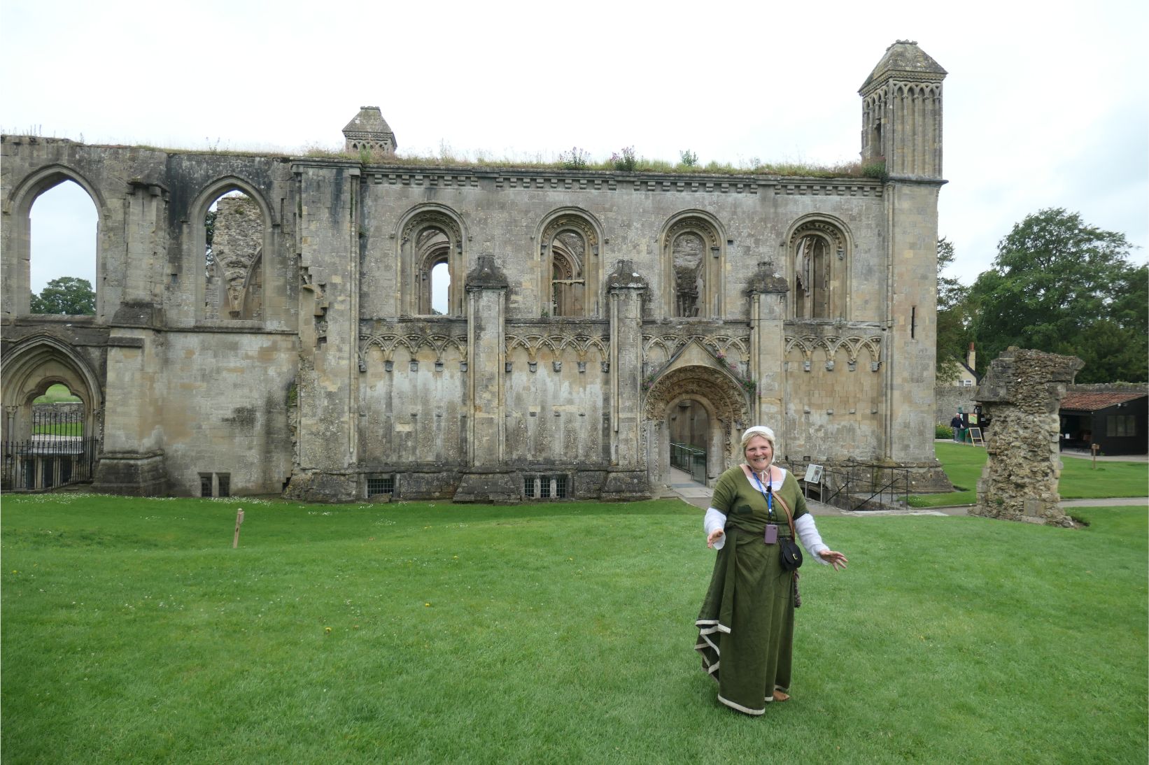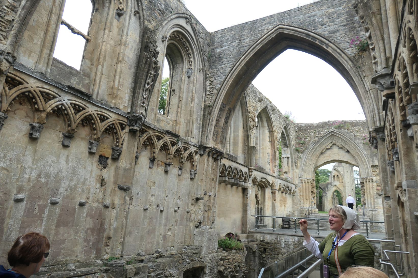 There are several sites at Glastonbury of both historical and spiritual interest. Approaching the town, we had seen the tower atop the fabled Glastonbury Tor. In the town are the remains of Glastonbury Abbey, where our tour was led by Good Wife Molly. The abbey once covered a huge area, but much of it was destroyed upon the orders of King Henry VIII, who was responsible for the destruction of numerous Catholic religious sites after he founded the Church of England. Apparently the money required to build such an imposing structure was not forthcoming in the early days of the twelfth century, but that all changed when a couple of monks ‘discovered’ the remains of King Arthur and Lady Guinevere conveniently buried within the grounds of the abbey in 1191. Word soon got out that these holy relics were at Glastonbury, and pilgrims flocked to the site. The wealth this generated was used to complete the construction of the abbey long before Henry ordered its destruction.
