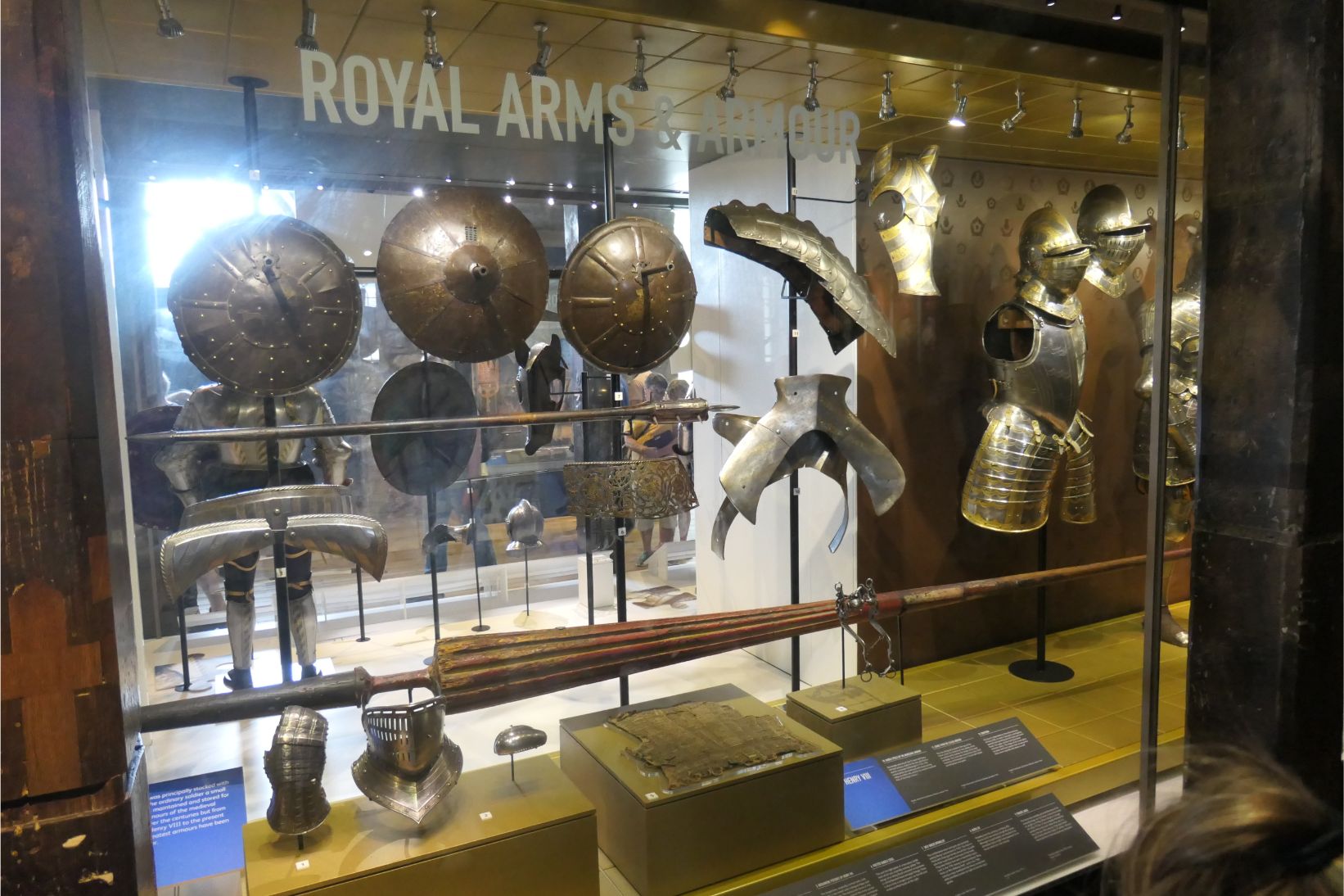 We were told there would be a 40-minute wait to see the Crown Jewels, so that’s where we headed first. The queue was really long, but it did keep moving and that kept us happy. The fact is, however, that we were in the queue for exactly an hour before we eventually laid our eyes upon the fabulous jewelled crowns worn by some of the kings and queens of England. In order to give everyone an unhindered look at the coronation crowns, we had to get onto a fast-moving walkway that carried us relatively swiftly past each crown and on to the next. Blink and you would miss it. Please note that the text continues after the next set of photos.