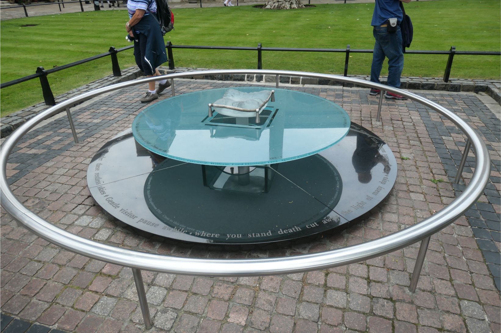 There was plenty to see around the historic site. We walked up onto the palace wall (yes, it was once the royal palace) which took us into rooms in several towers to view displays. They ranged from the room where Sir Walter Ralegh was imprisoned for over a decade, to the room which focused on the wild beasts kept at the tower and the room which detailed how the tower was used to aid Britain during World War I. We paused to read the names inscribed on the monument to some of the important people who were executed in full public view on what, today, is a lawn. Ann Boleyn’s name, of course, was listed there.