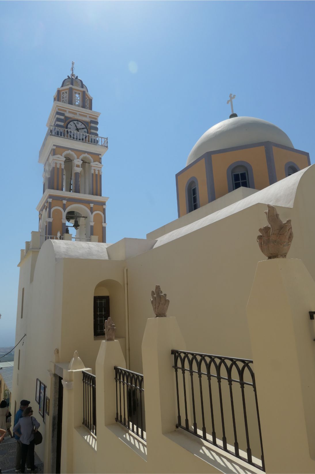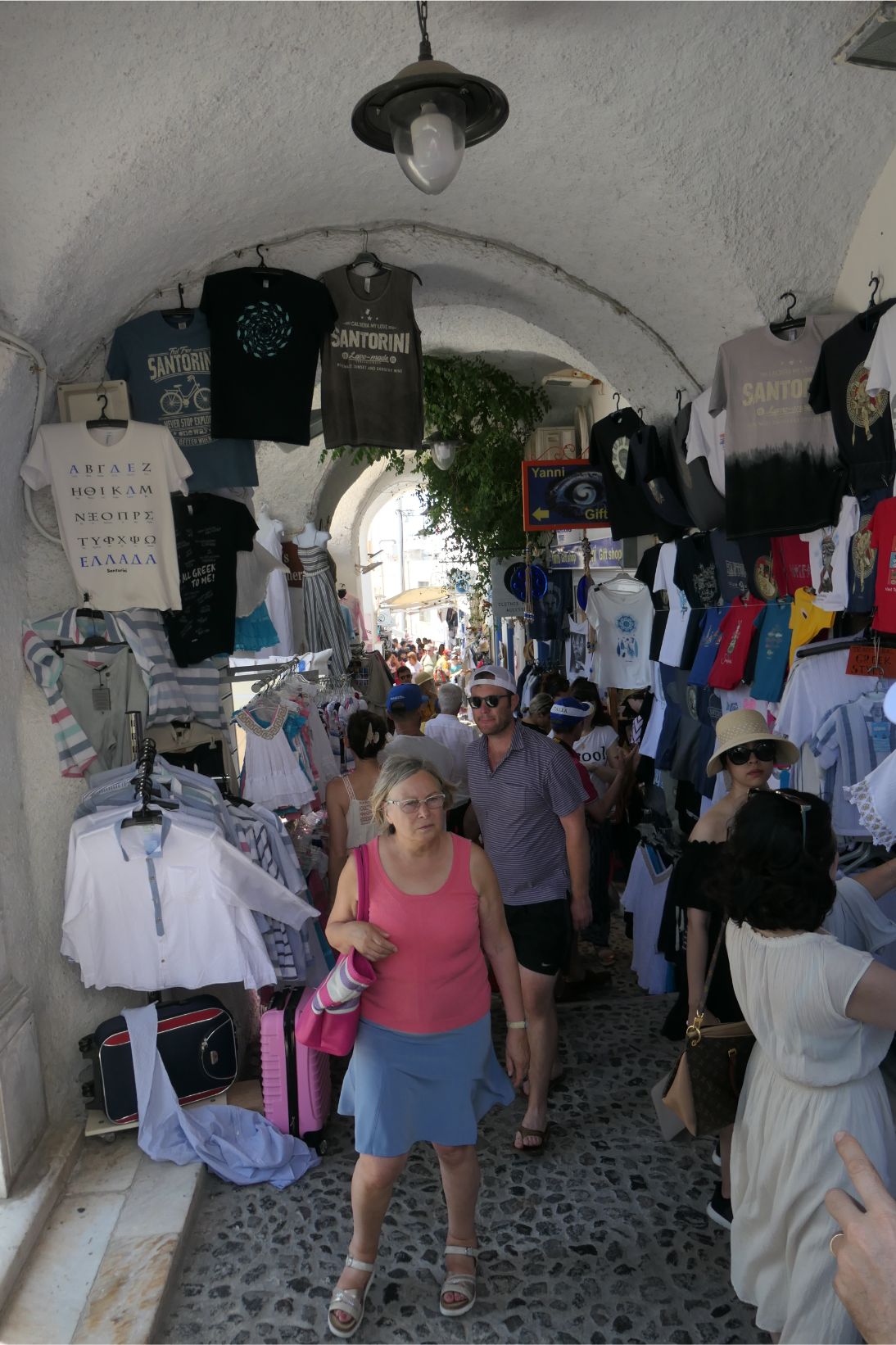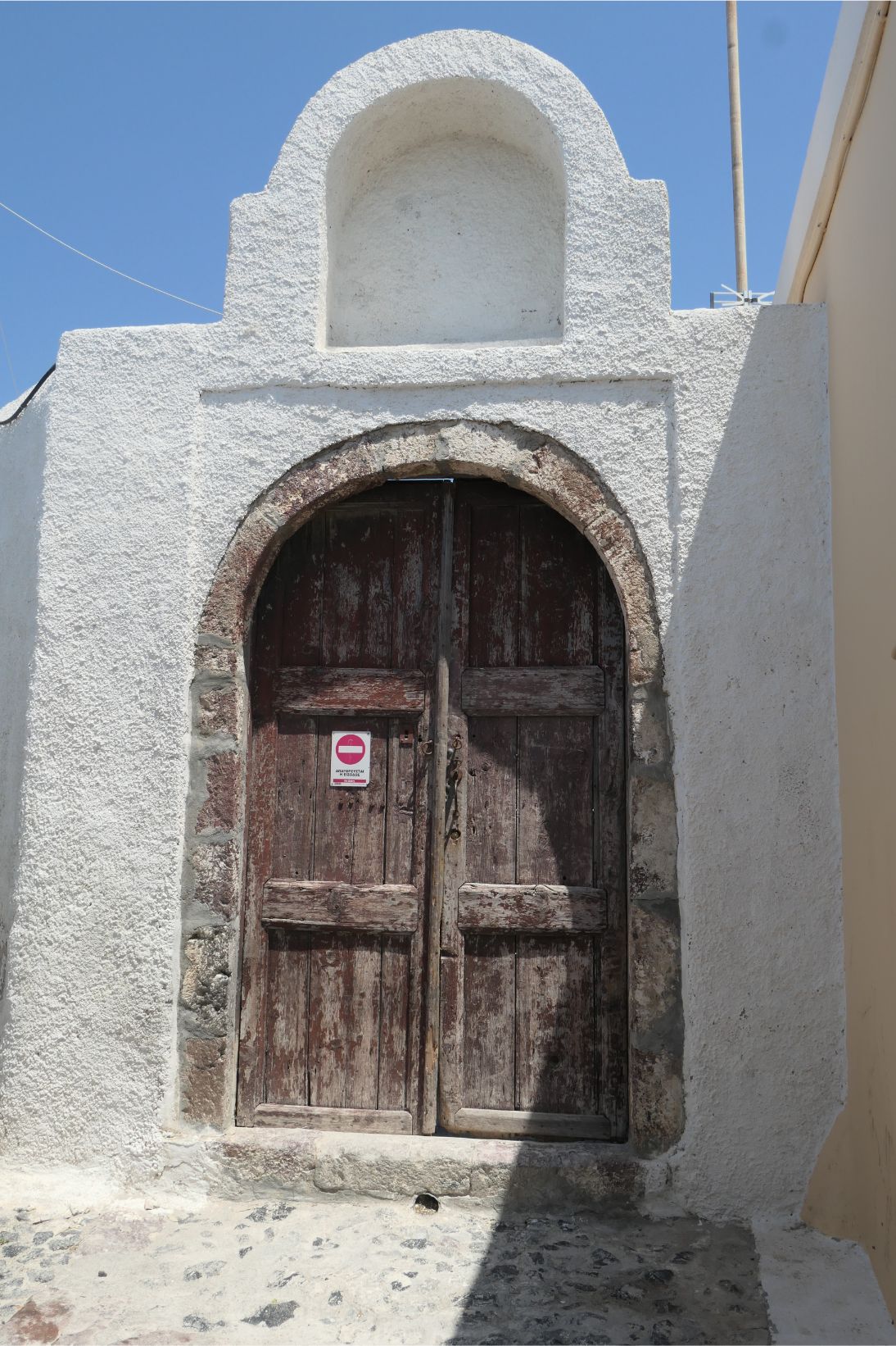 On our morning walk, Marg and I had to keep stepping around people on the path taking photos and selfies. That’s understandable. You don’t find backdrops like this one too often. The morning sun was out and the white buildings looked magnificent, especially when contrasted with the blue gates and doors and the blue sea. The stark contrast between blue and white on this island is really quite striking.