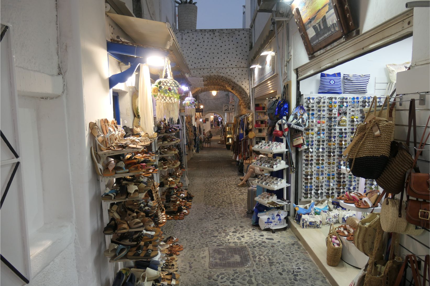 We went out at 6pm and it was cooler, with a bit of a breeze blowing through the laneways of Thira. The crowds had all retreated back to the cruise ships and it was really pleasant checking out all the craft shops and stopping for an ice cream.