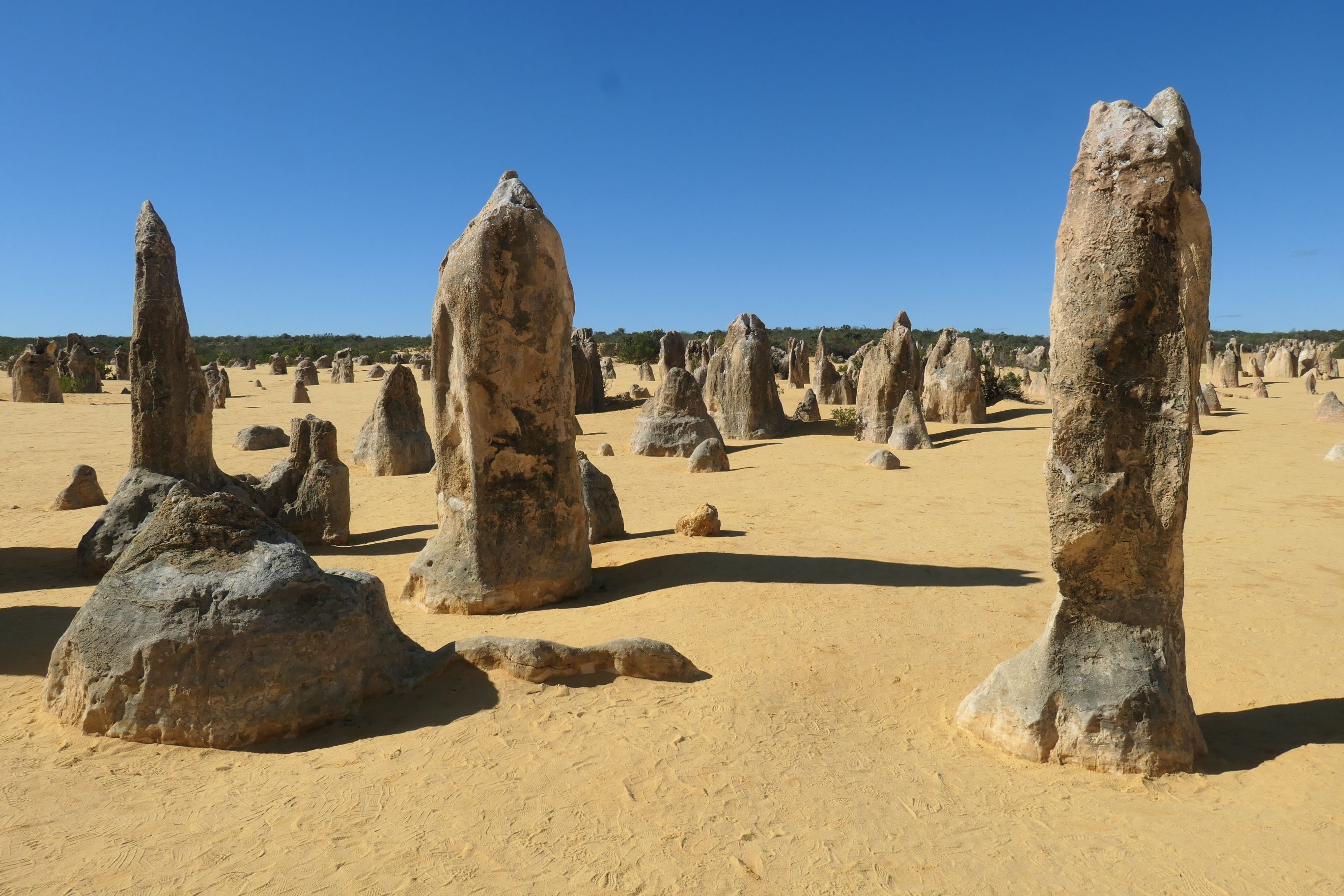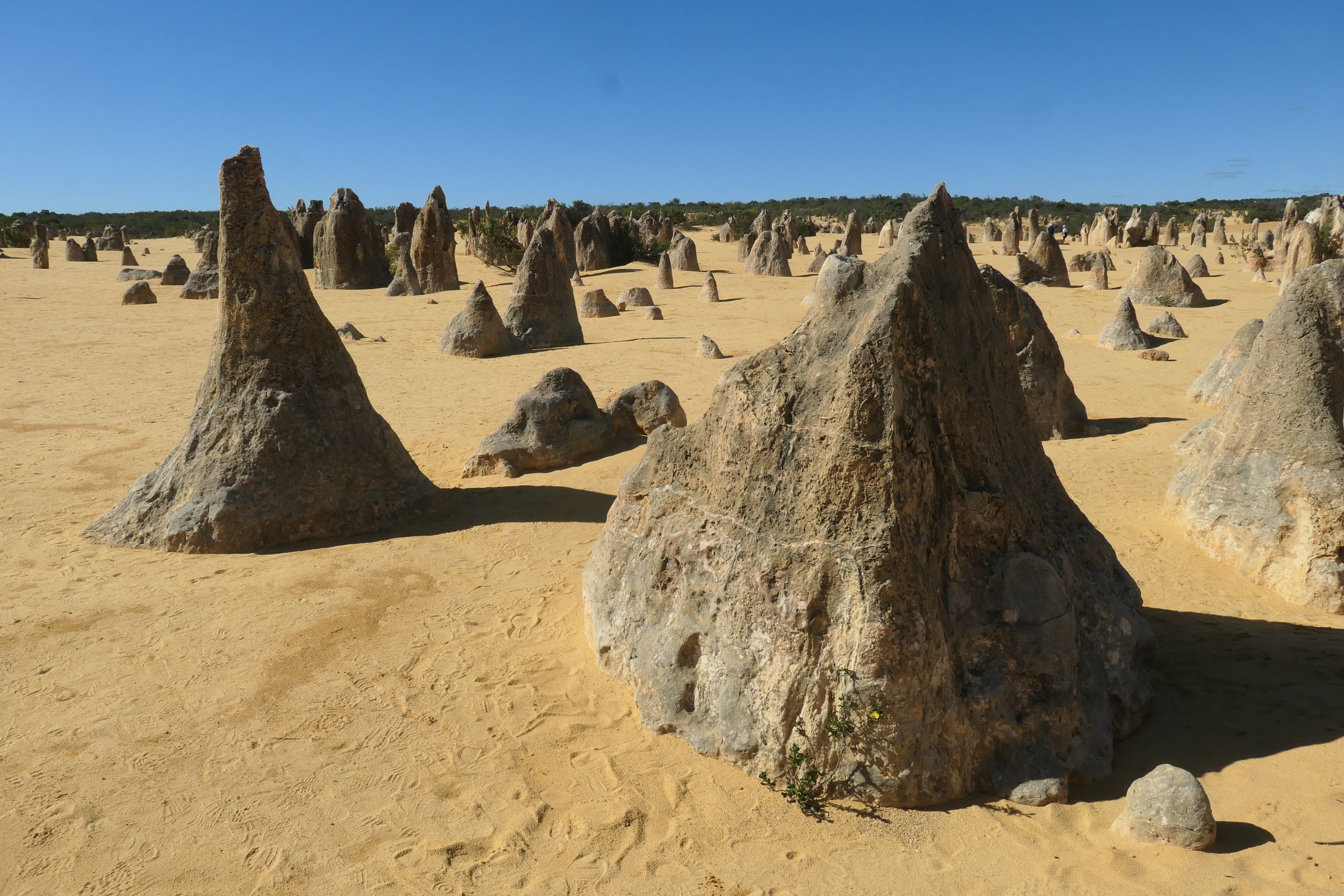 We took a small detour into Nambung National Park to see The Pinnacles. I’d seen them before on billboards and in tourist brochures, but didn’t really know much about them. I wrongly assumed there might be a hundred or so of them. I was gobsmacked to discover that there are literally thousands of limestone pinnacles of varying heights protruding from a rather large area of desert sand, surrounded by scrub and within sight of the ocean. It was a fantastic place to visit, and without doubt one of the most amazing natural wonders I’ve ever seen in Australia. At the visitors’ centre we were keen to discover how the pinnacles were formed, but it seems scientists still aren’t really sure how they came about, so several possible theories are offered. It is likely they were formed hundreds of thousands of years ago and buried under shifting sands until being exposed by wind and water about 6000 years ago. Sands covered them again for a long time and it seems they may only have reappeared a couple of hundred years ago. If you’re ever in this part of WA, make sure you visit The Pinnacles.