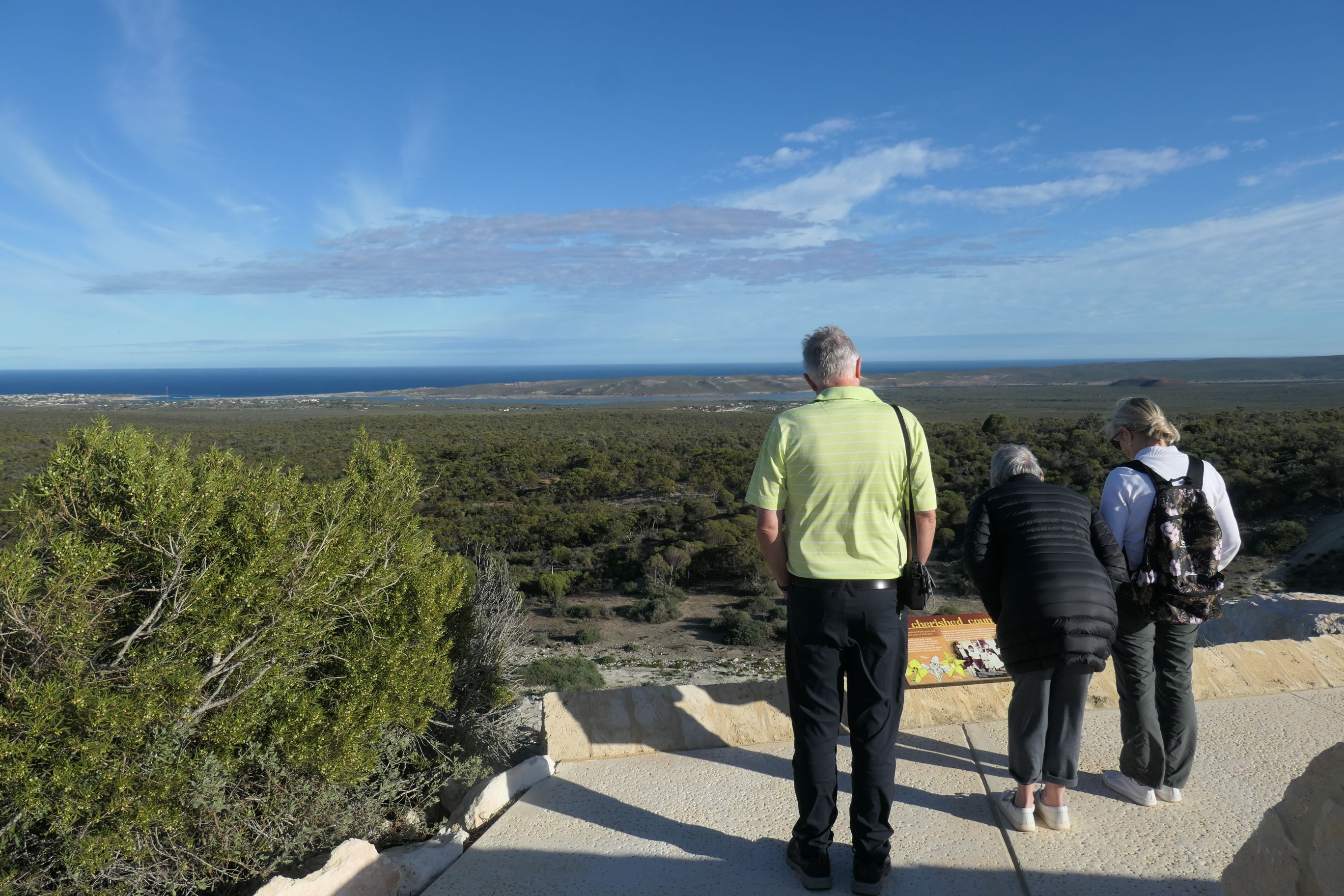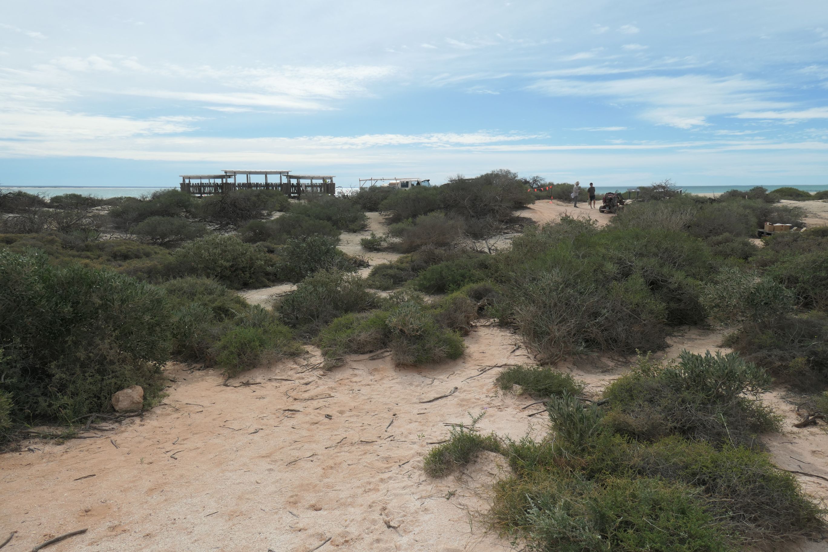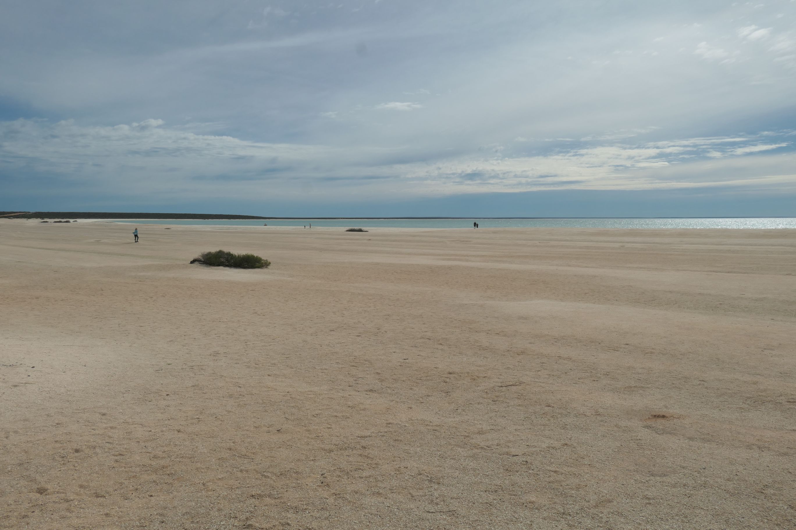 Next stop was the Eagle Bluff Lookout. There is a 400m long boardwalk which overlooks vast seagrass beds, home to dugongs, turtles, sharks and rays. We enjoyed the views and thought we spotted a dugong, though the wave patterns, glinting sunlight and shifting seagrass left us wondering if we had really seen anything at all. We’ll hopefully get much closer than this to dugongs and other marine creatures in the next day or two.