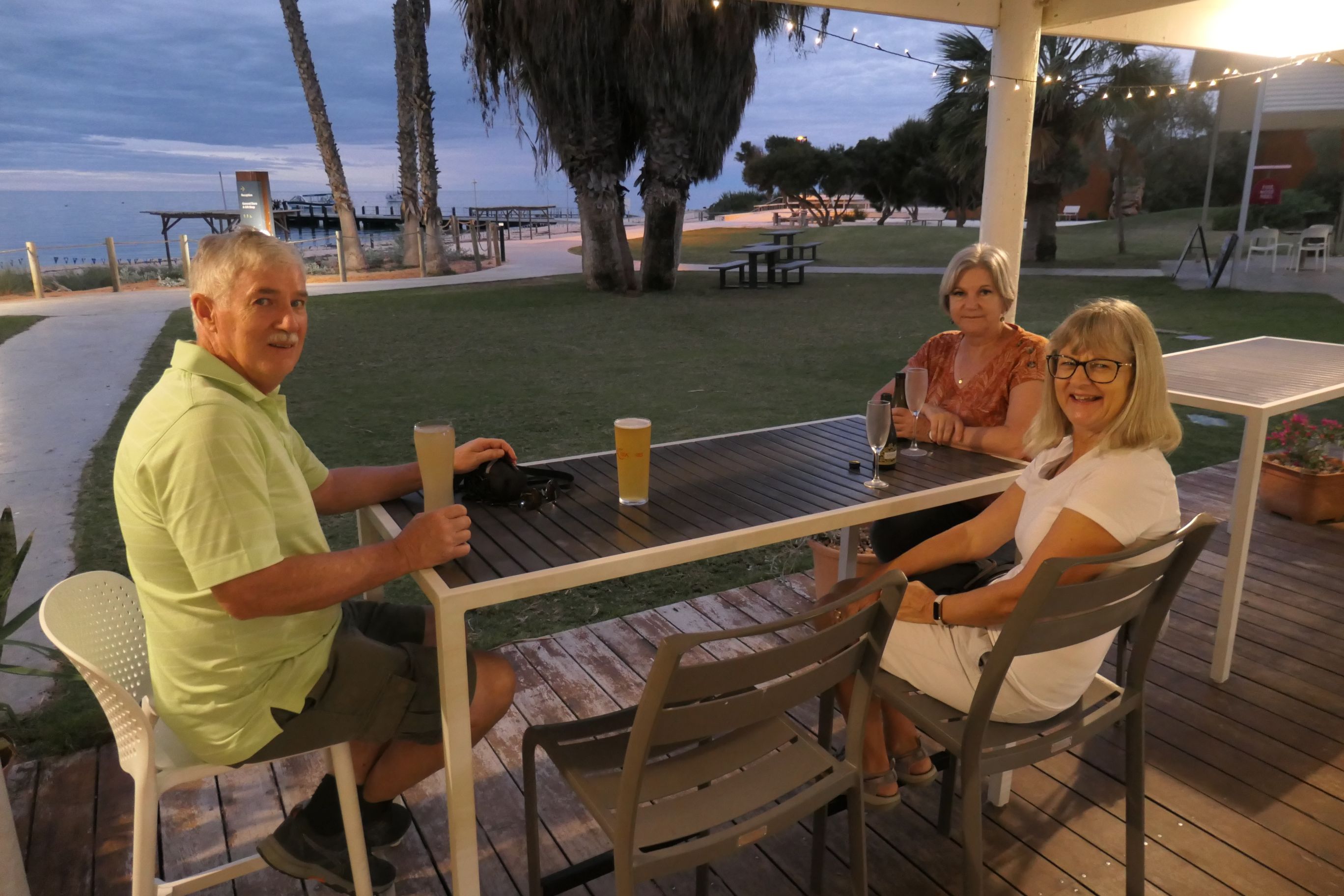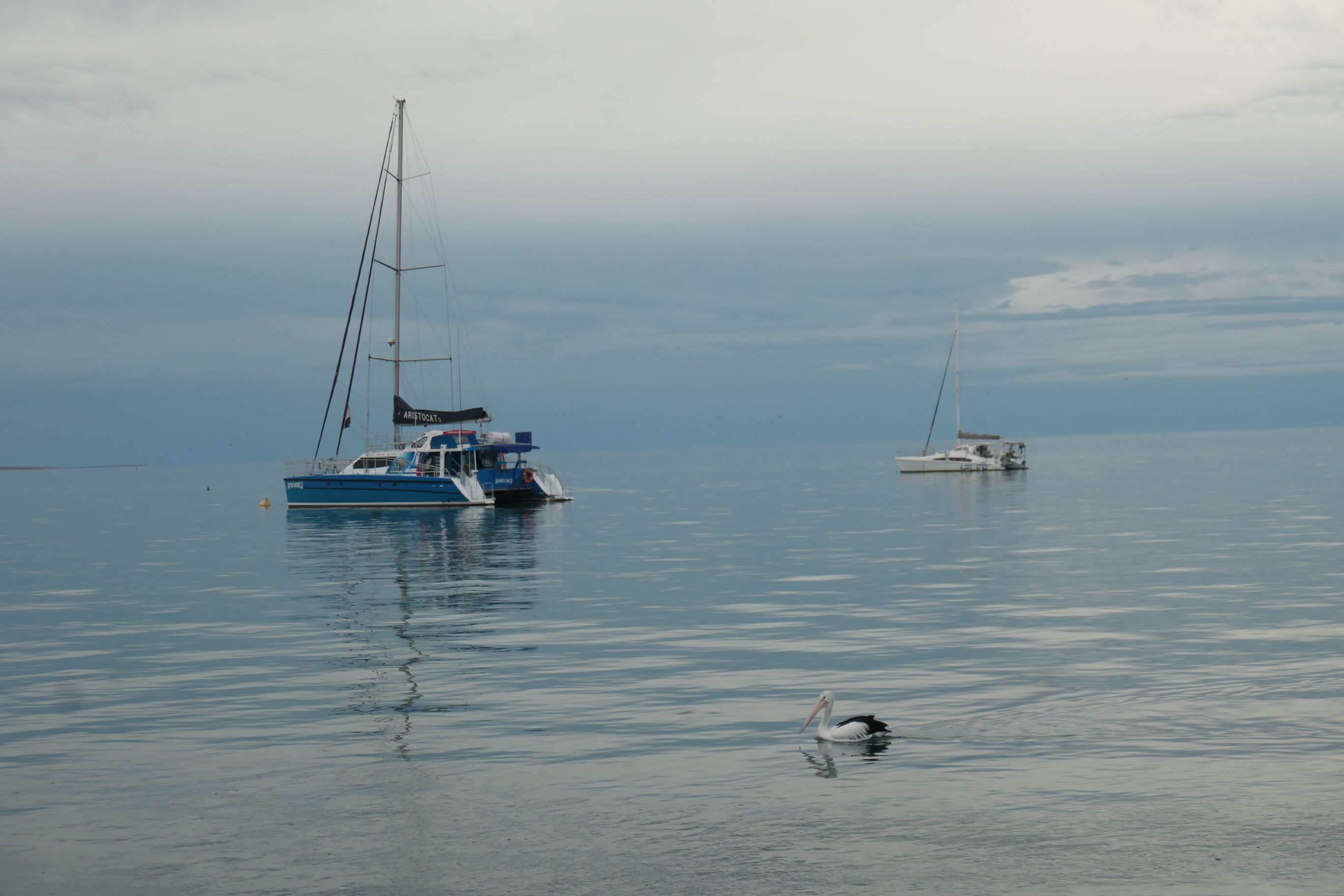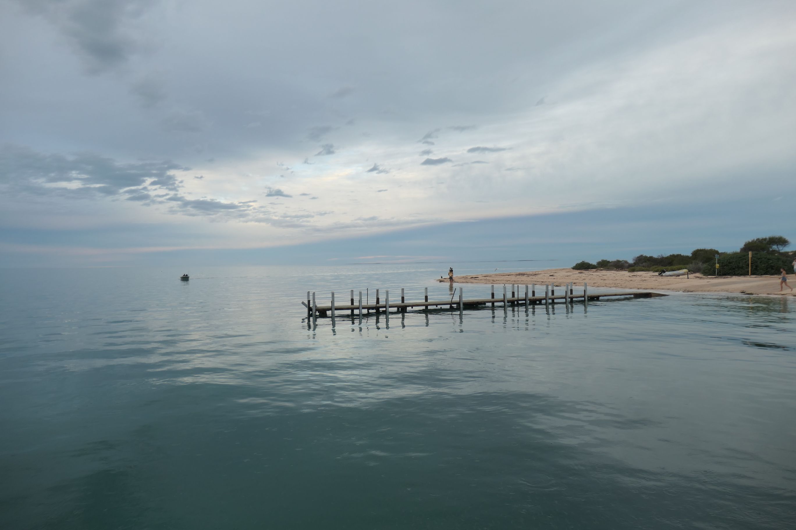 We arrived at Monkey Mia mid-afternoon and settled in to our beach view rooms at the RAC Dolphin Resort. We wandered down to the jetty to see what we might find and were lucky enough to see some fairly large fish swimming alongside the pylons and … even better … three turtles, each of which swam close to the surface, occasionally raising a head above the water. That was a really special way to end the day. Tomorrow we’re expecting lots of rain.