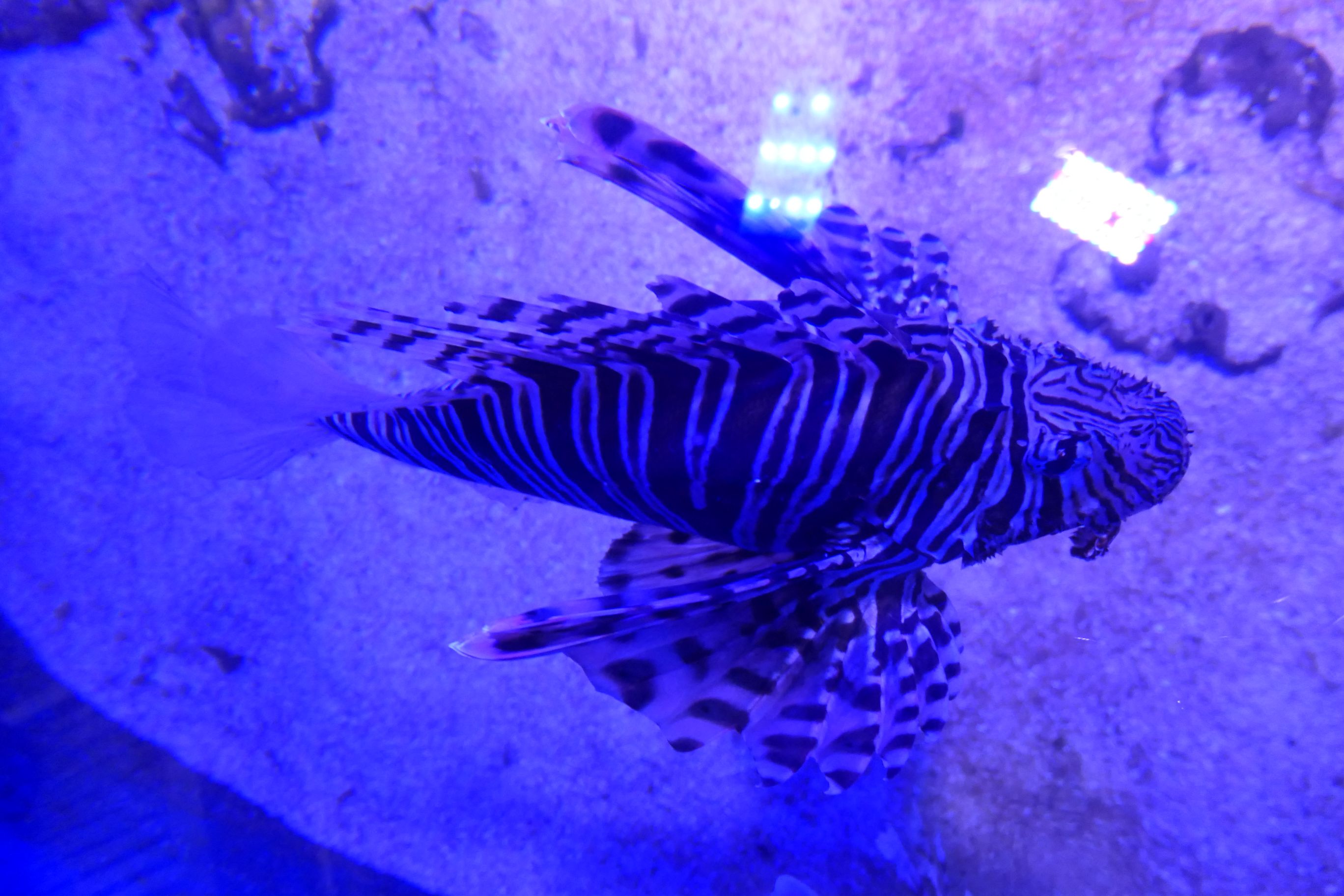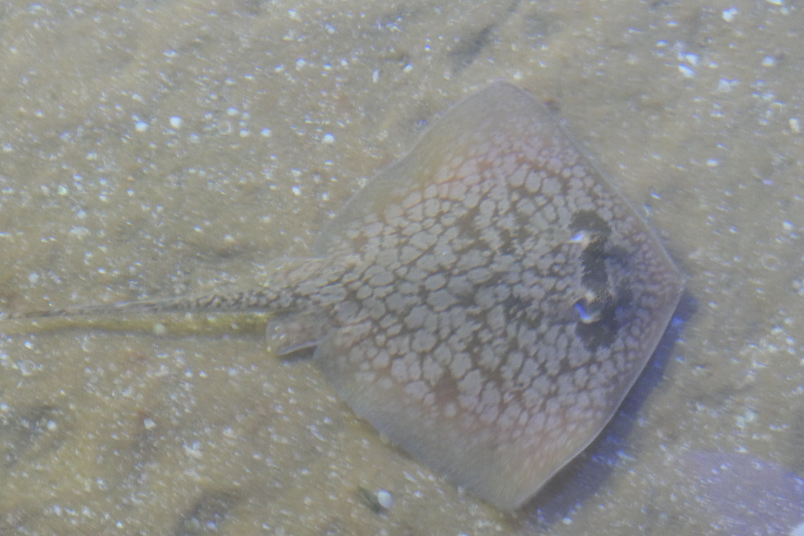In the second outdoor pool, the ‘shark feeding’ took place. Our guide dangled a couple of pieces of fish on a line down over the water. He dipped it in once or twice, then quickly withdrew it again as the tiger shark approached it. There was thrashing in the water, a large splash, and the bait was withdrawn as the shark swam away. It was theatre, but with a purpose, as he was making the point that sharks do not require more than about 500g of protein per day and are not the eating machines people think they are. This shark was not hungry and did not need to be fed.