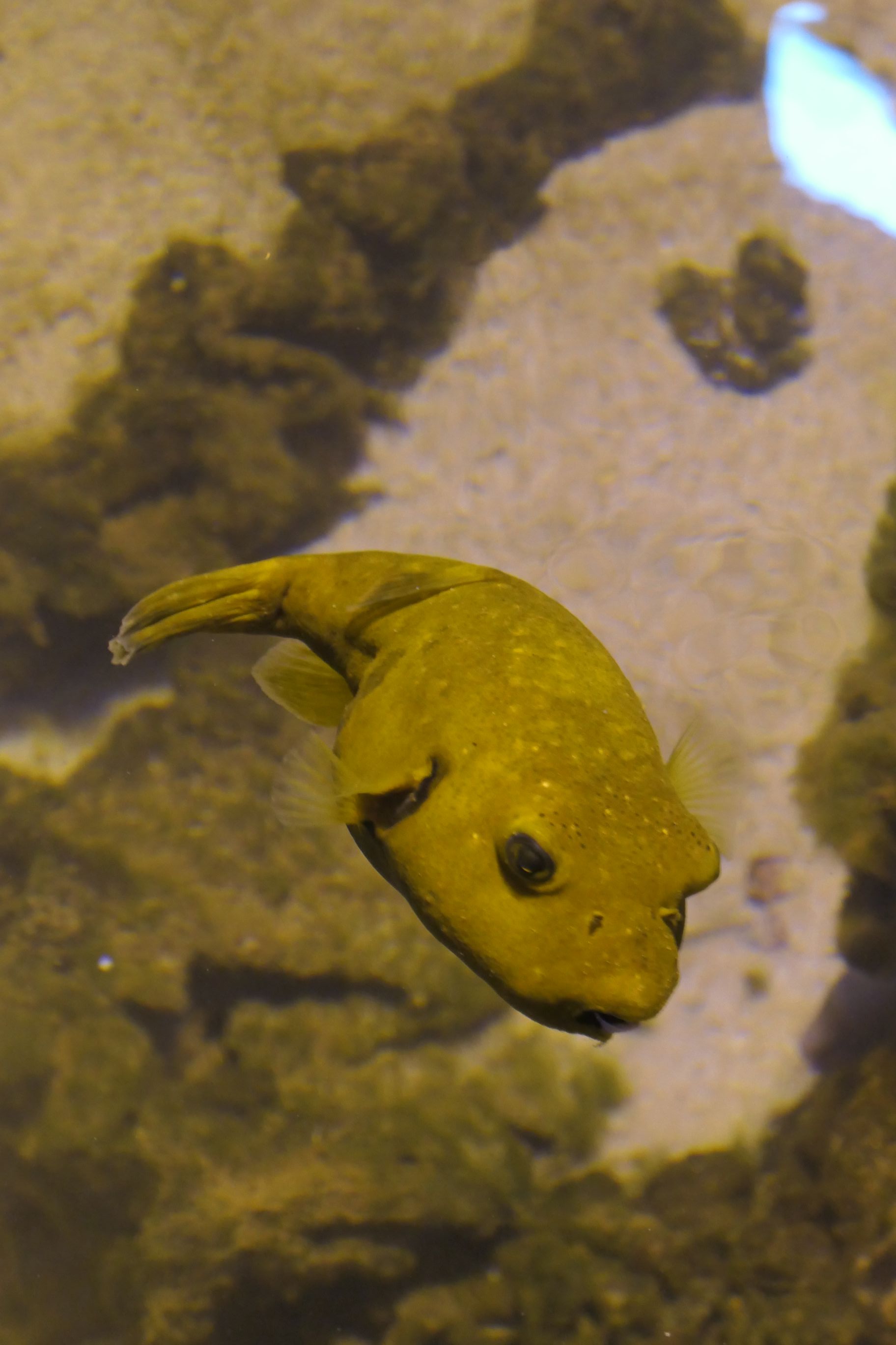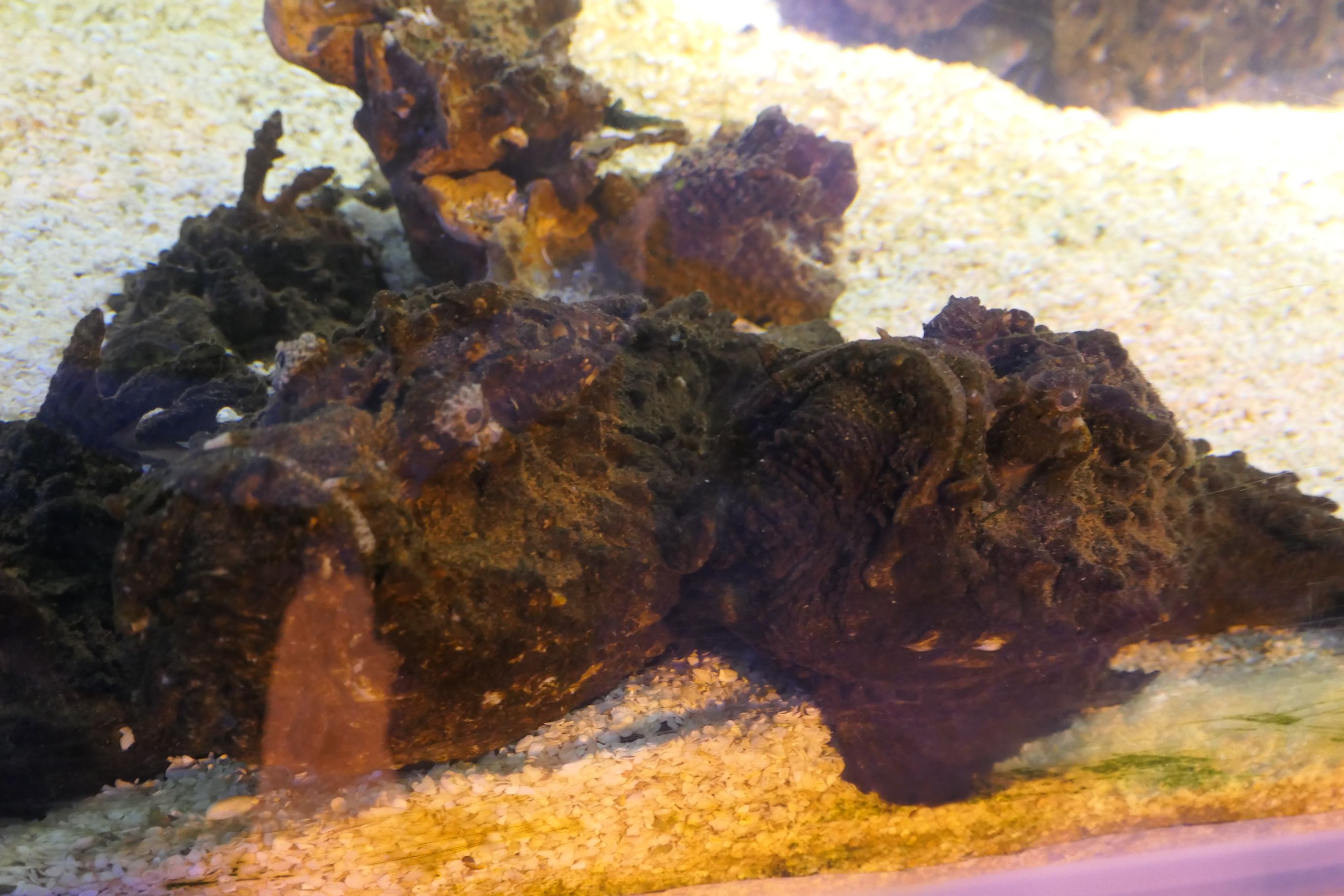 We moved indoors to a number of smaller pools and tanks where other local marine life was on show. We saw sea snakes, moray eels, poisonous fish, squid, colourful reef fish, clown fish and others. What I found most fascinating were the six stonefish sitting motionless on the bottom of a tank, looking for all the world like slime covered rocks. If you step on one, apparently the spike on the stonefish’s back can go straight through the sole of your shoe and you’re likely to be in unbearable pain for up to eighty hours, as nothing is likely to provide relief. Our guide said that when locals swim in Shark Bay they do the ‘shuffle’ to avoid inadvertently stepping on one, and they only swim at high tide so their feet don’t touch the bottom. Our guide was very knowledgeable and his passion for Shark Bay and its marine creatures was very evident. We really enjoyed the experience and stayed on there for lunch while it poured down in bucket loads outside.