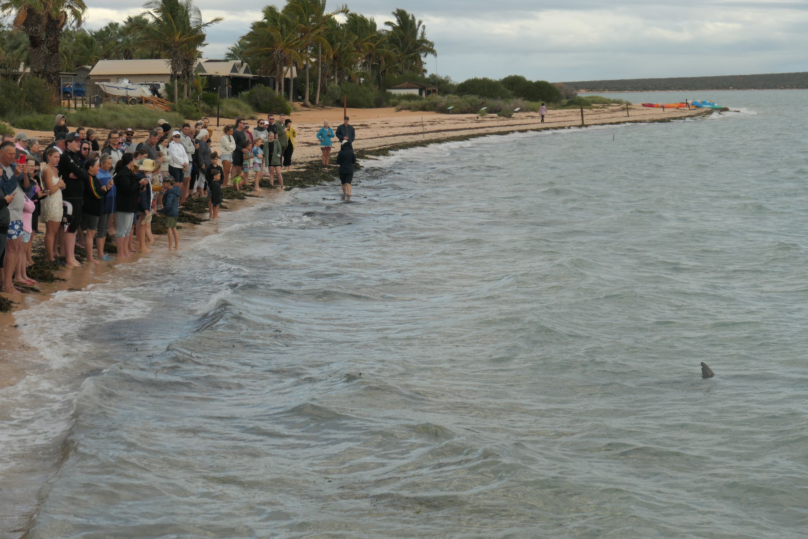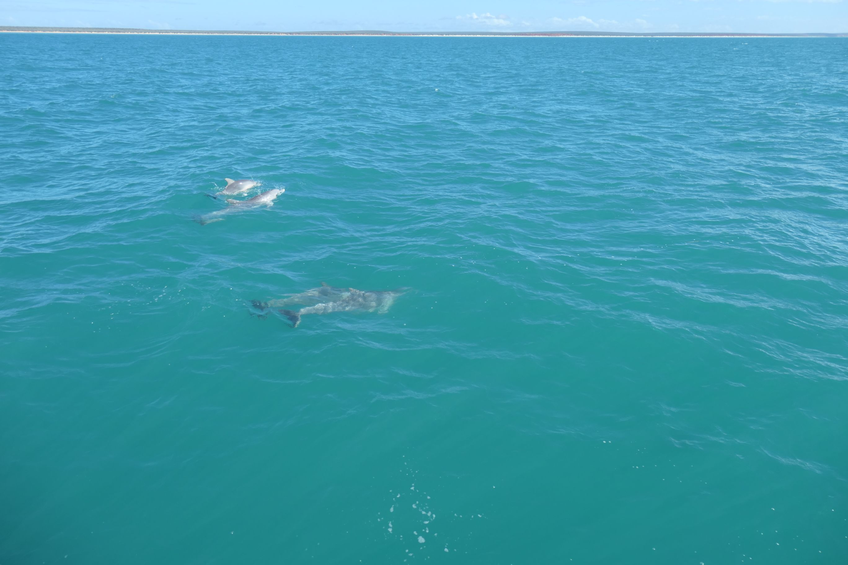 Eventually we reached the seagrass beds where we expected to find dugongs grazing. We were a long way offshore, but the water here was calmer and shallower and it was easy to see the seagrass on the sandy sea floor. Despite there being 10,000 dugongs here in Shark Bay, they certainly proved to be elusive today. The skipper put it down to the water being murky and the seagrass being disturbed after yesterday’s storms.