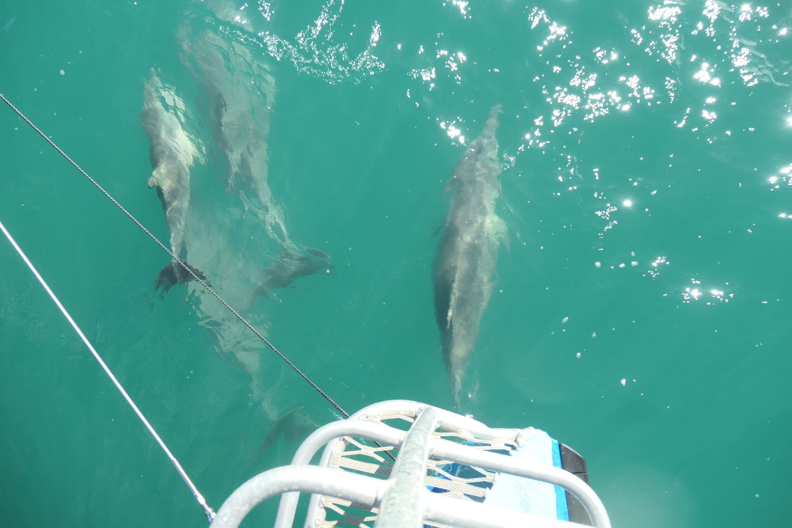 On several occasions we spotted a small pod of dolphins. We slowed the boat and brought it closer. The dolphins would come in close and position themselves in our bow wave at the front of the boat, and for a few minutes it seemed they were guiding us through the waters. This happened a number of times. Then they would disappear from view and we would all spread out around the railings of the boat scanning the sea for the next marine life sighting.