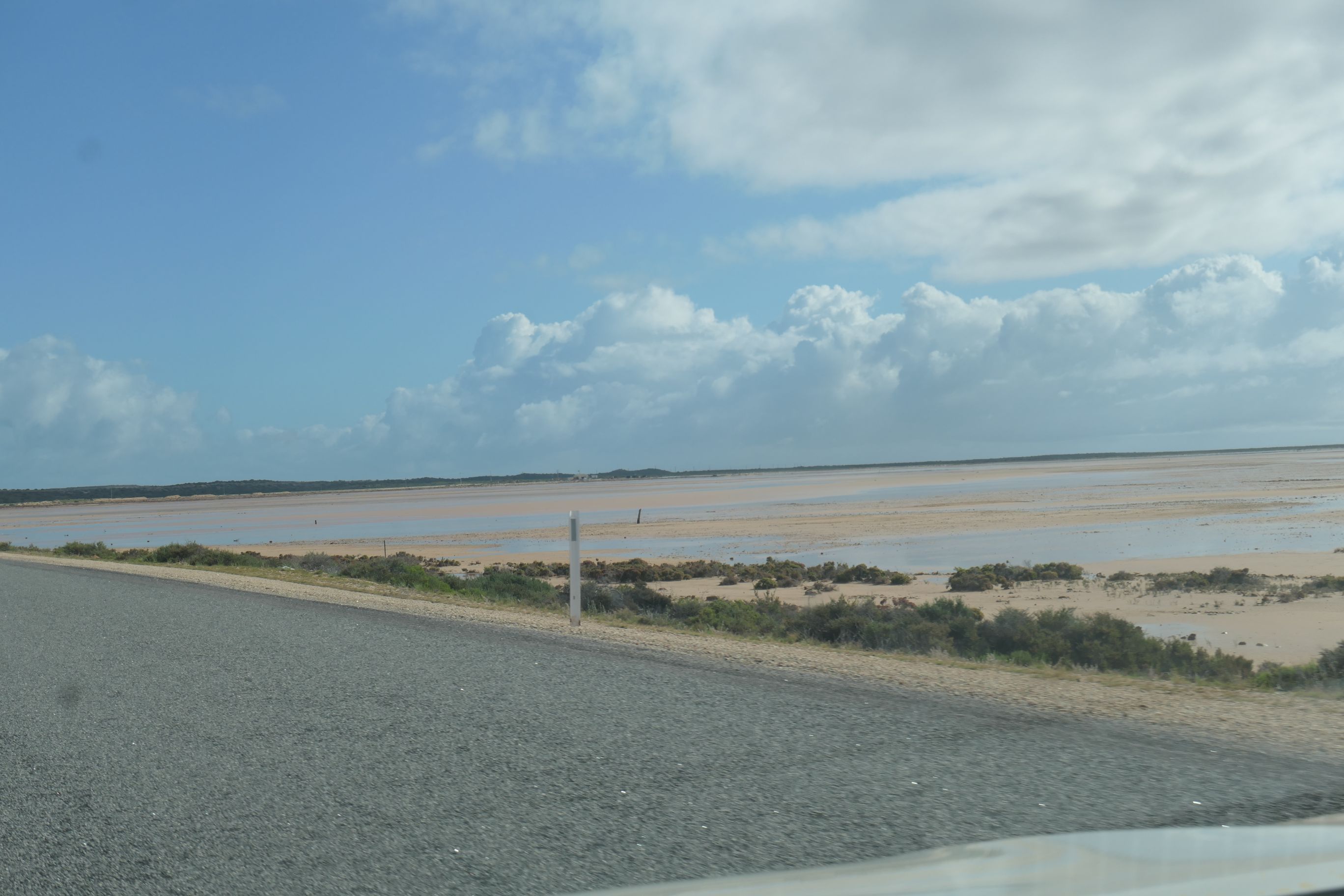 We drove back into Carnarvon again. Passing Lake Macleod, I wondered how long it would take to dry out after the rains. Possibly not long, as sections were already looking quite dry again.