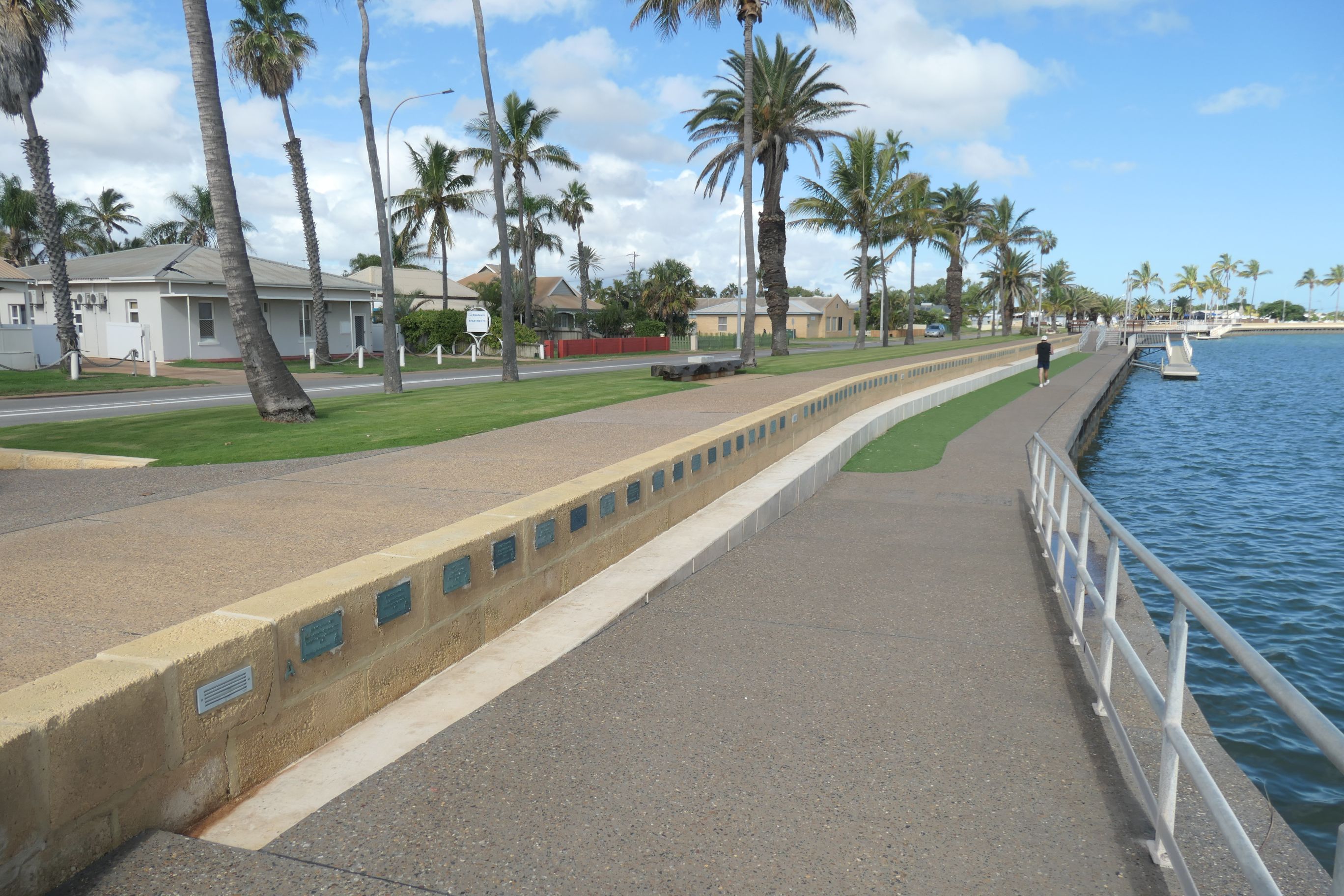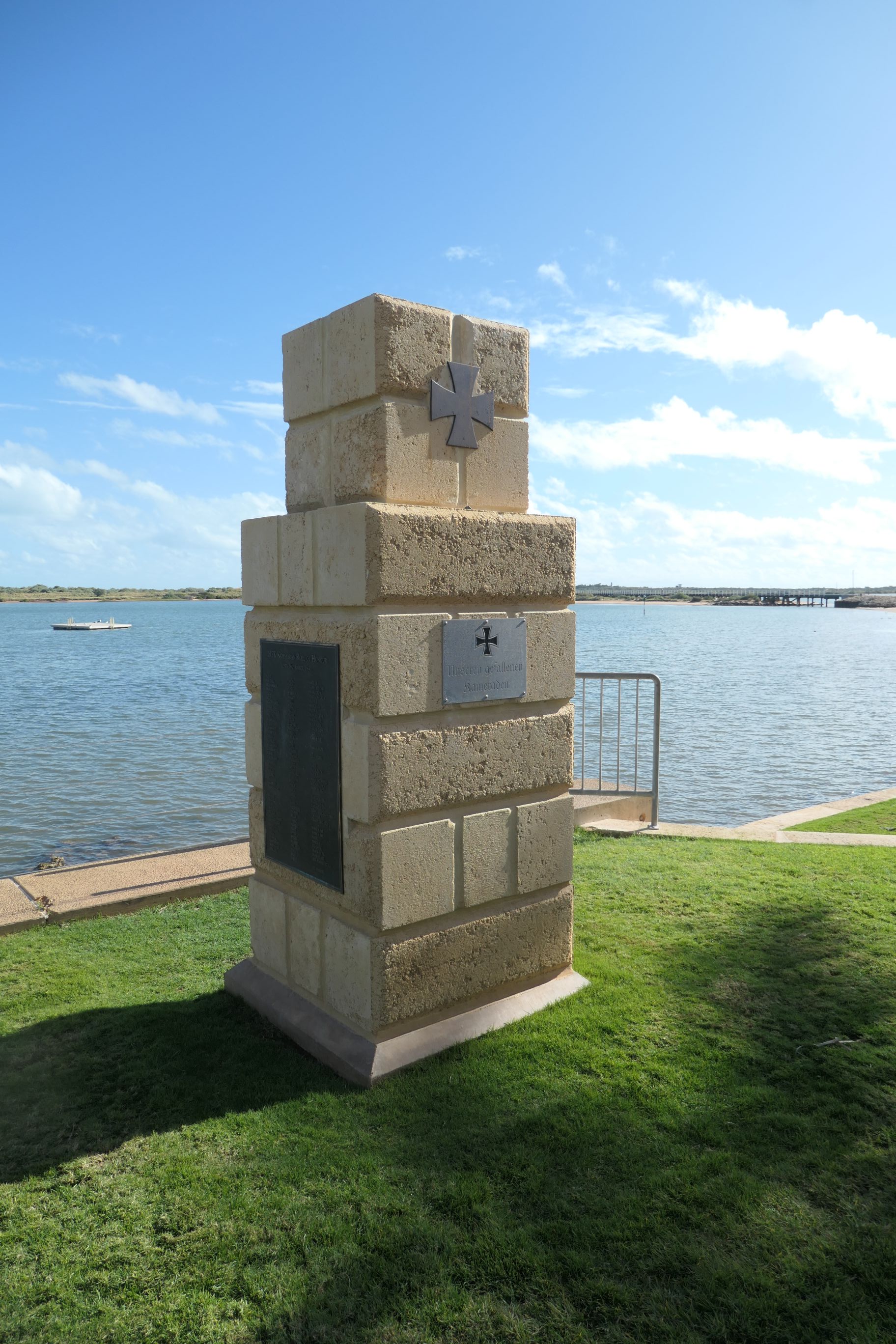 In the afternoon Rod and Cornie went for a long walk around the town and Marg and I went for a shorter walk. We walked along the Fascine by the Boat Harbour. Here we found another memorial to the men who died on HMAS Sydney II in November 1941. 645 plaques bearing the names of those who lost their lives adorned the wall along the path, and many of the 645 palm trees that stood in remembrance of these brave men were also visible here. There is also a monument here bearing the names of the German sailors of the Kormoran who died in the battle with the Sydney.