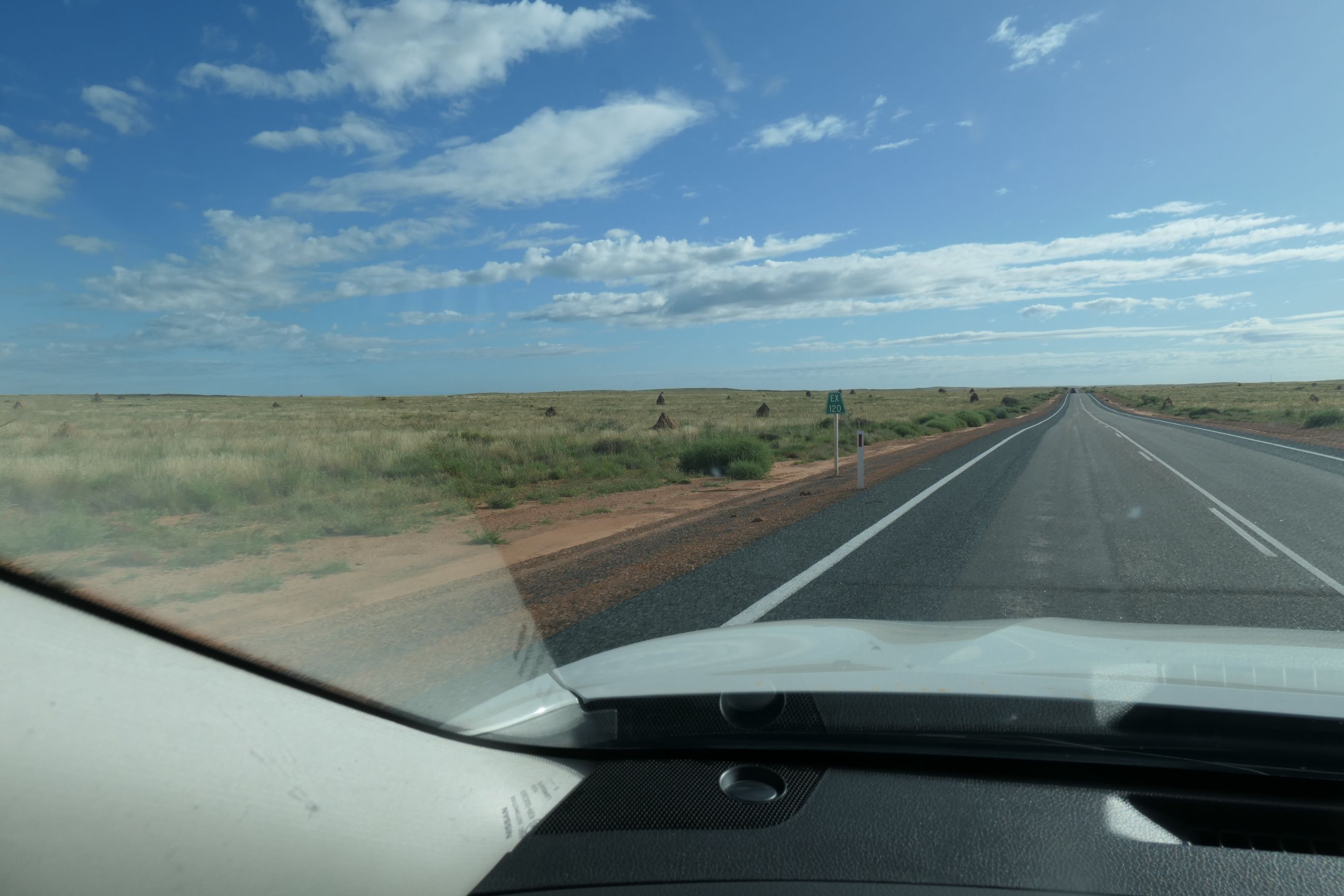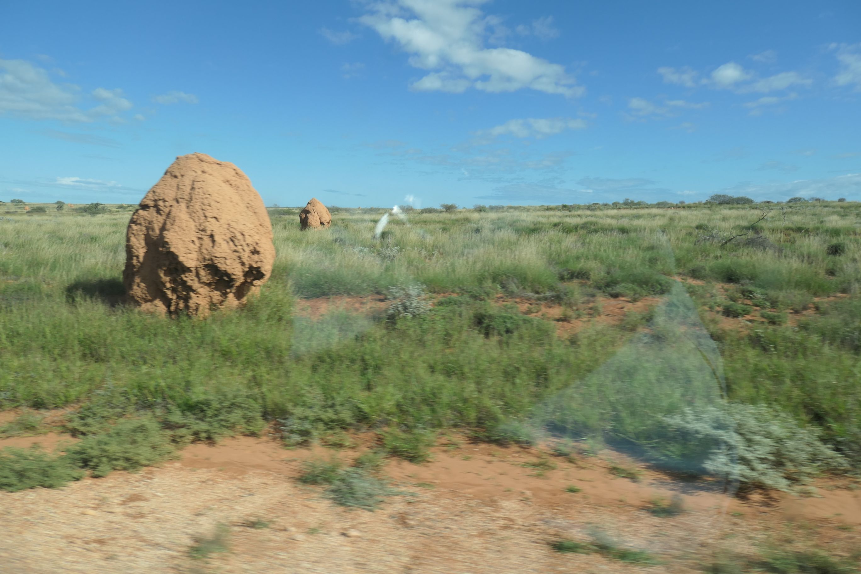 We left Coral Bay early and drove straight through to Exmouth. I don’t think we passed through a single small town along the way. On either side of the road the countryside was flat as far as the eye could see, with large termite mounds rising above the ground like the Pinnacles we saw early in our trip.