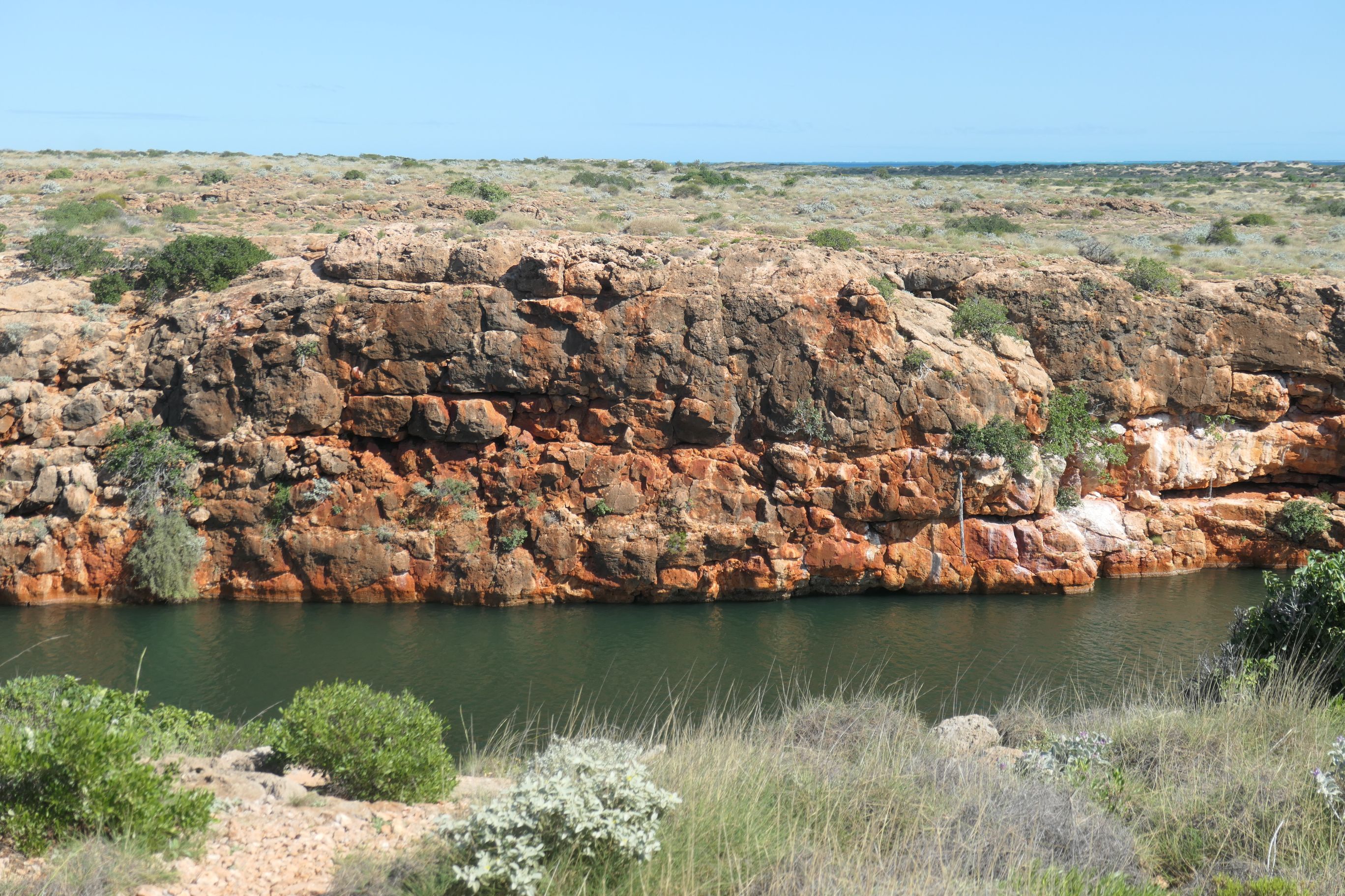 Yardie Creek is the only creek in the area with permanent water, though it is salt water fed from the sea. There is a sandbar across the mouth of the creek preventing the water from flowing back into the sea. Erosion over centuries has cut away the gorge, leaving multi-coloured layers of rock exposed.