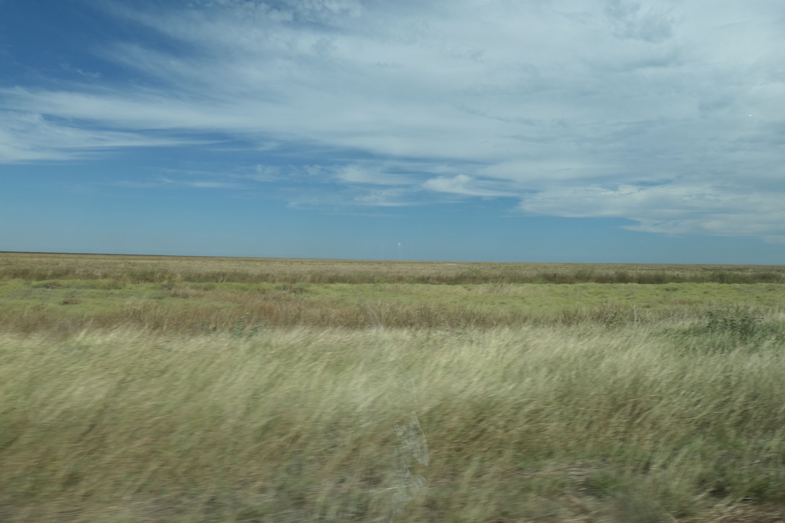 Most of today’s trip has been through totally flat landscape, as far as we could see. As we got closer to Broome, and presumably closer to the coast, the trees appeared. You don’t really see any tall trees in this part of the country though. If you were to enlarge the second photo below (see the third pic below for a magnification) you might just be able to see quite a few brolgas out in the field. We passed quite a few of them not too far south of Broome.