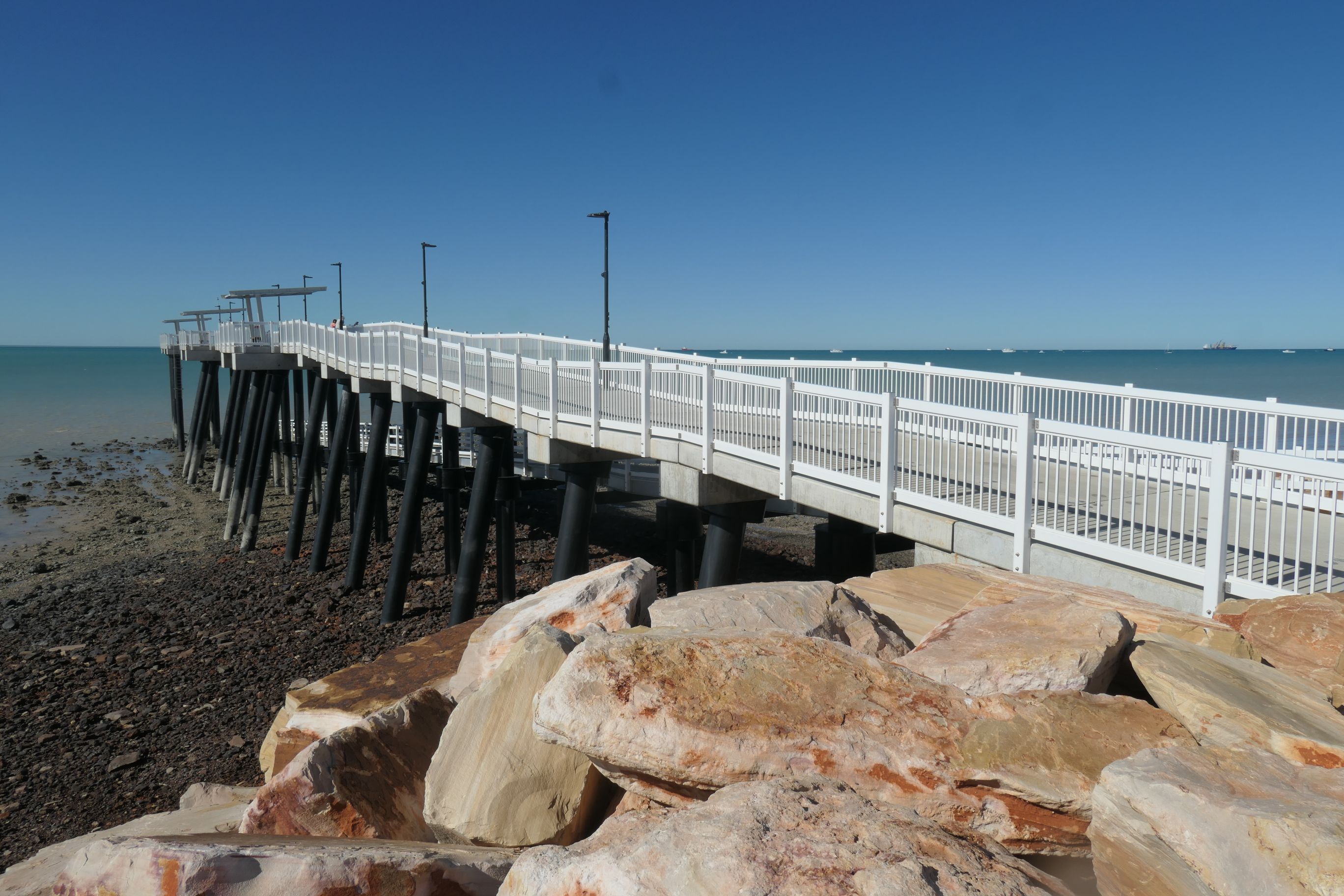 Just up the coast to the north, at Derby, the difference between high and low tide marks has been recorded at over 11 metres. Even here in Broome, the tidal range can often be measured at around 10 metres. So even though the jetty pylons in my photos are fully exposed, I imagine twice a day the water will cover a good portion of them and the views would be quite different. At low tide this morning we looked down from the jetty onto rocks and mud.