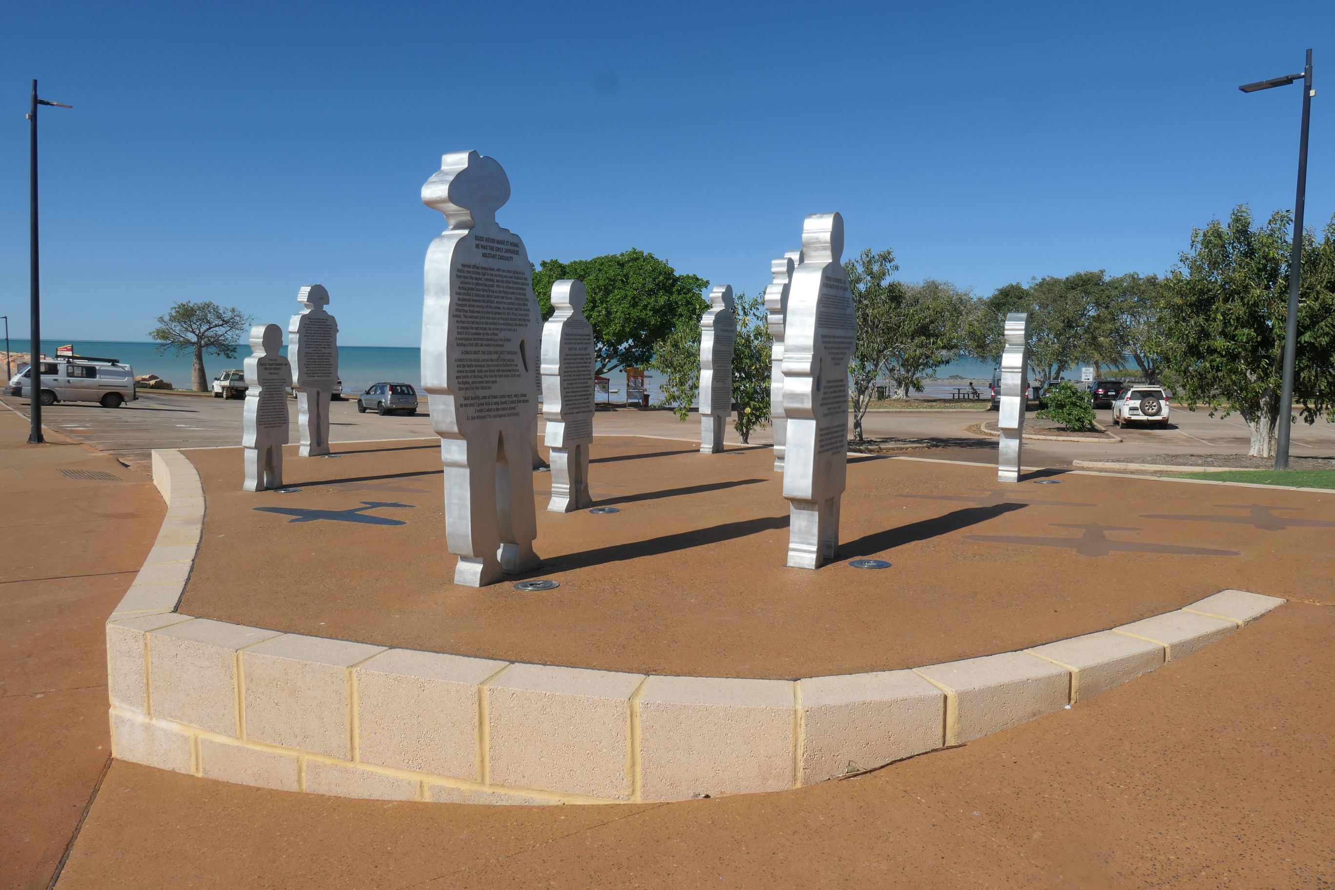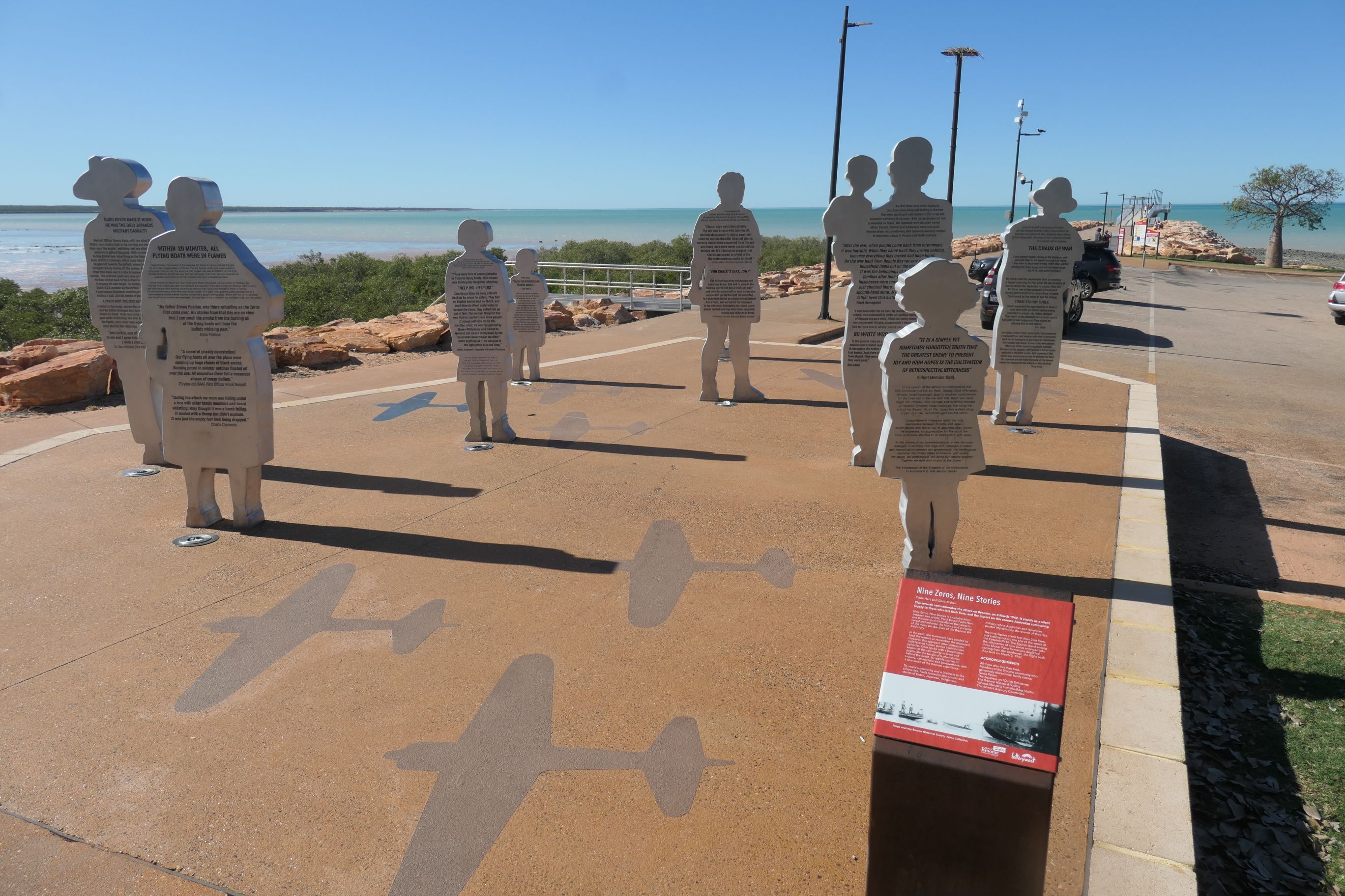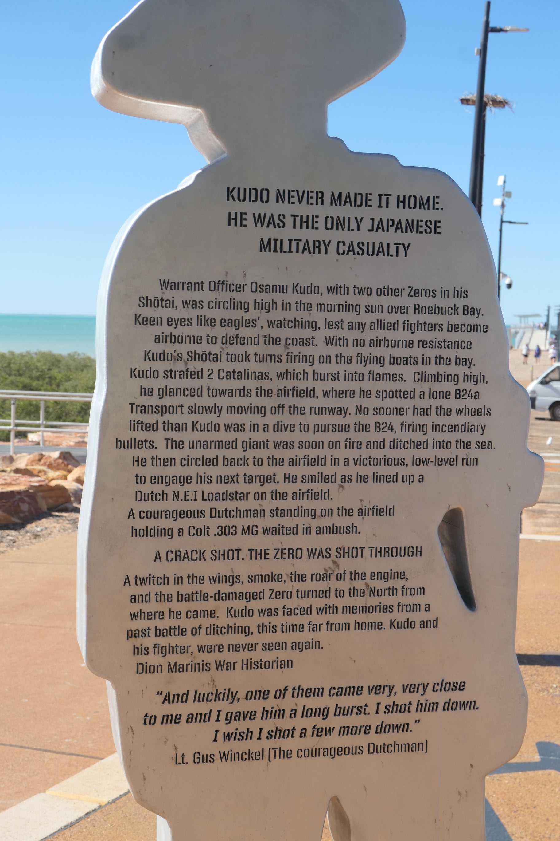 I briefly mentioned in yesterday’s blog post that there are sculptures at the entrance to the new jetty that commemorate the Japanese raid on Broome during WWII. This morning we stopped to read all the personal stories. Nine Japanese Zeroes attacked Broome in March 1942. A number of Catalina and Dornier flying boats at rest on Roebuck Bay while waiting for refuelling were destroyed and at least 88 people, including both civilians and military personnel, lost their lives.