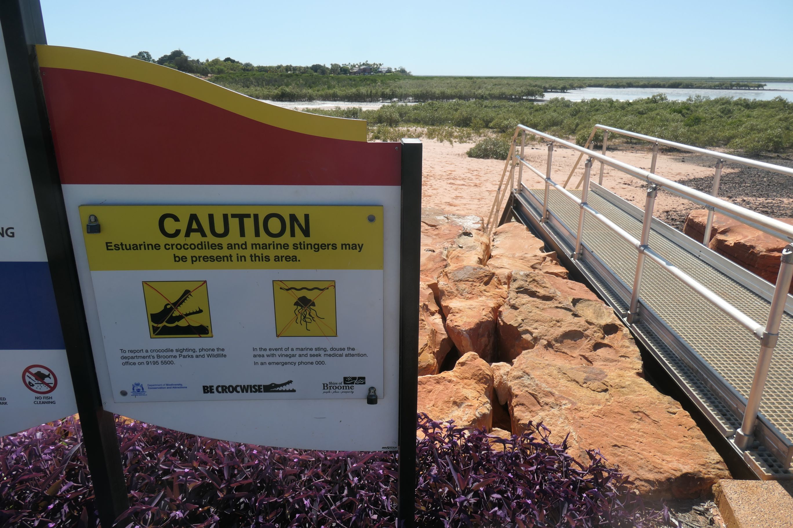 The Town Beach area has had a major facelift since our previous visit, with new paving, seating and garden areas. It looks great and is sure to make this end of Broome popular with tourists. There’s a second brewery (Spinifex) recently opened here and Matso’s is nearby as well. And there’s a fantastic new jetty for pedestrians and fishermen to share. It provides great views up and down the mangroves and the beach. There’s always boating activity on Roebuck Bay to catch your eye. I believe it’s possible to spot dugongs from the jetty occasionally. I wonder if you might also see a crocodile now and again.