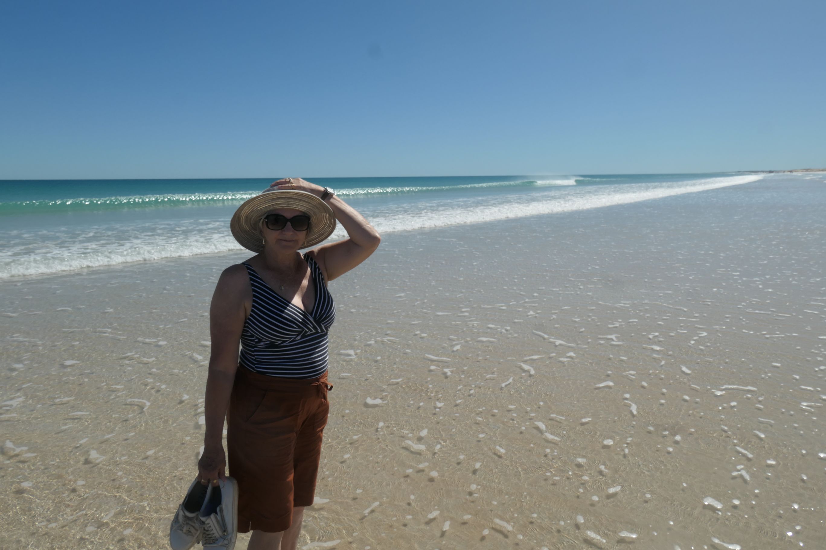 Instead we drove over to Cable Beach. Rod and Cornie went off on a nature trail, while Marg and I preferred a beach walk. It was great to get my sandals off and walk through the shallows, making sure I gave the stingers being washed ashore a wide berth. The sun was out and we had cloudless blue skies. A magnificent day for the beach.