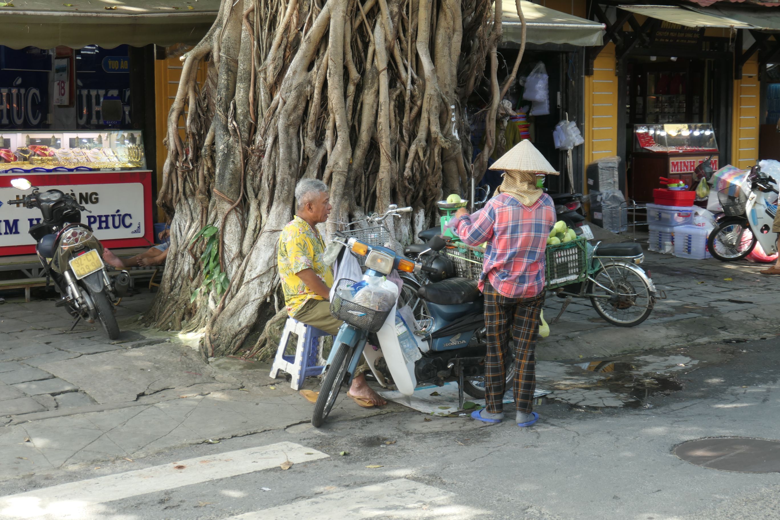 We weren’t far from the Japanese bridge. I remember being scammed there five years ago, when two women appeared around a corner carrying fruit baskets on shoulder poles. They broke into broad smiles. It was a great photo opportunity. The minute I’d taken my shot, out came their hands for money and they weren’t prepared to accept anything less than a small fortune.