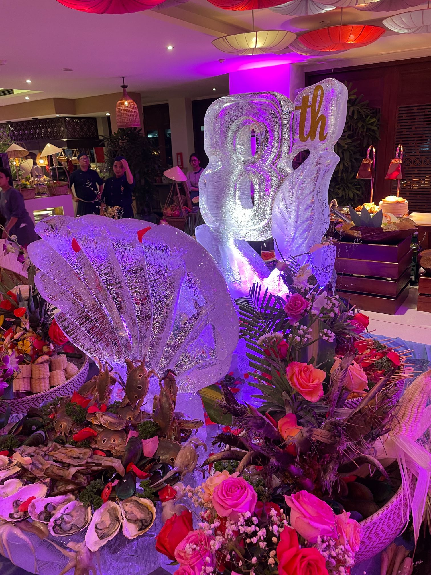 Friday evening was a special occasion for the Almanity Hoi An Spa Resort where we’re staying. It was the resort’s 8th birthday. 8 is the luckiest number in Vietnamese culture, as it represents good fortune and wealth. The resort staff invited us to book a table at the birthday buffet dinner celebrations, so we did.