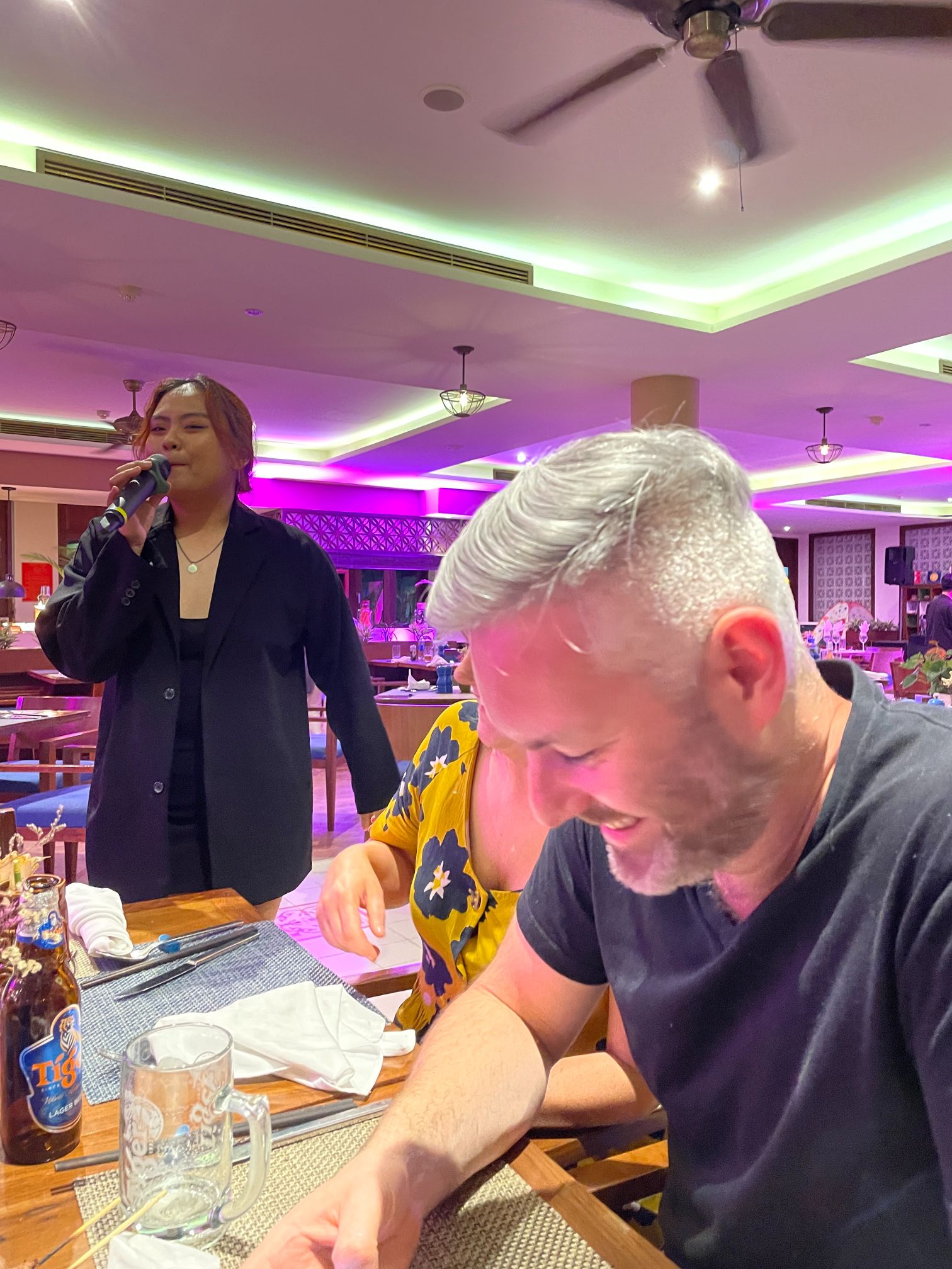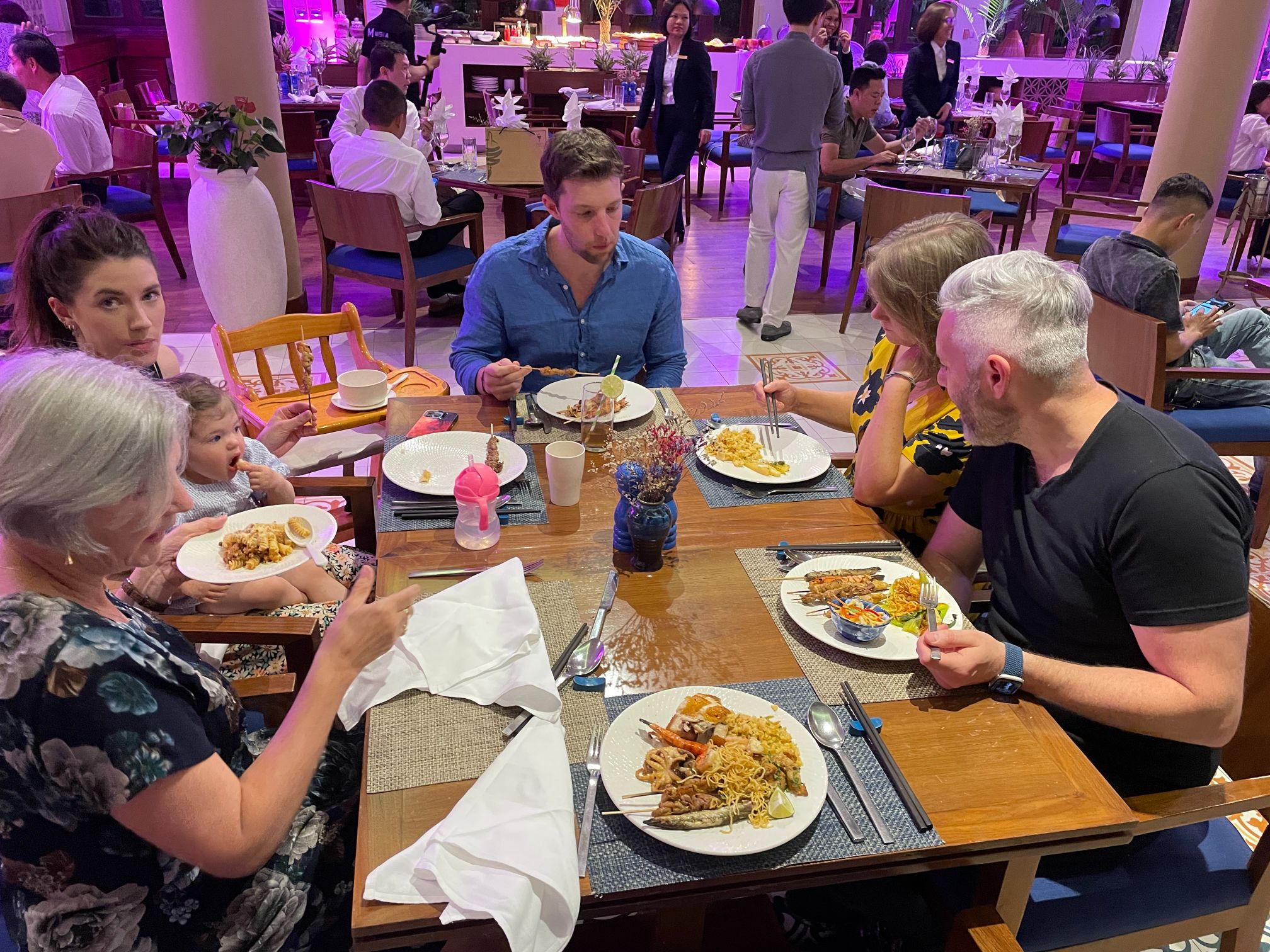 We stayed and had a good time, although Casey had to take Layla to bed early. The music was way too loud for her. Surprisingly, most of the invited locals, who were well dressed for a big night out, disappeared by about 8pm. This left the dining hall looking almost empty except for a few tables of resort guests who had much better staying power than the VIPs. It was no wonder the hotel management came to our table to thank us personally for coming to help them celebrate the occasion.