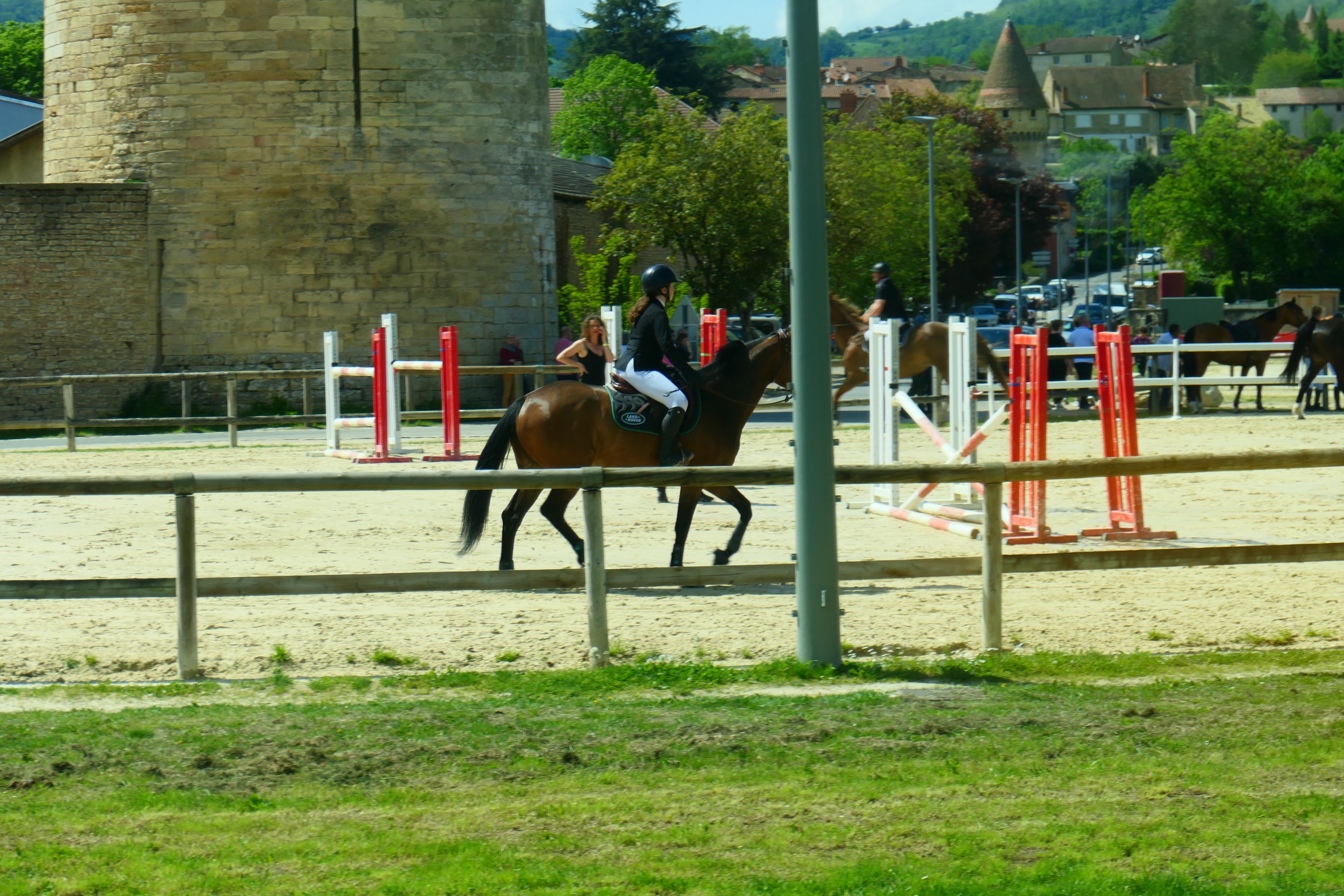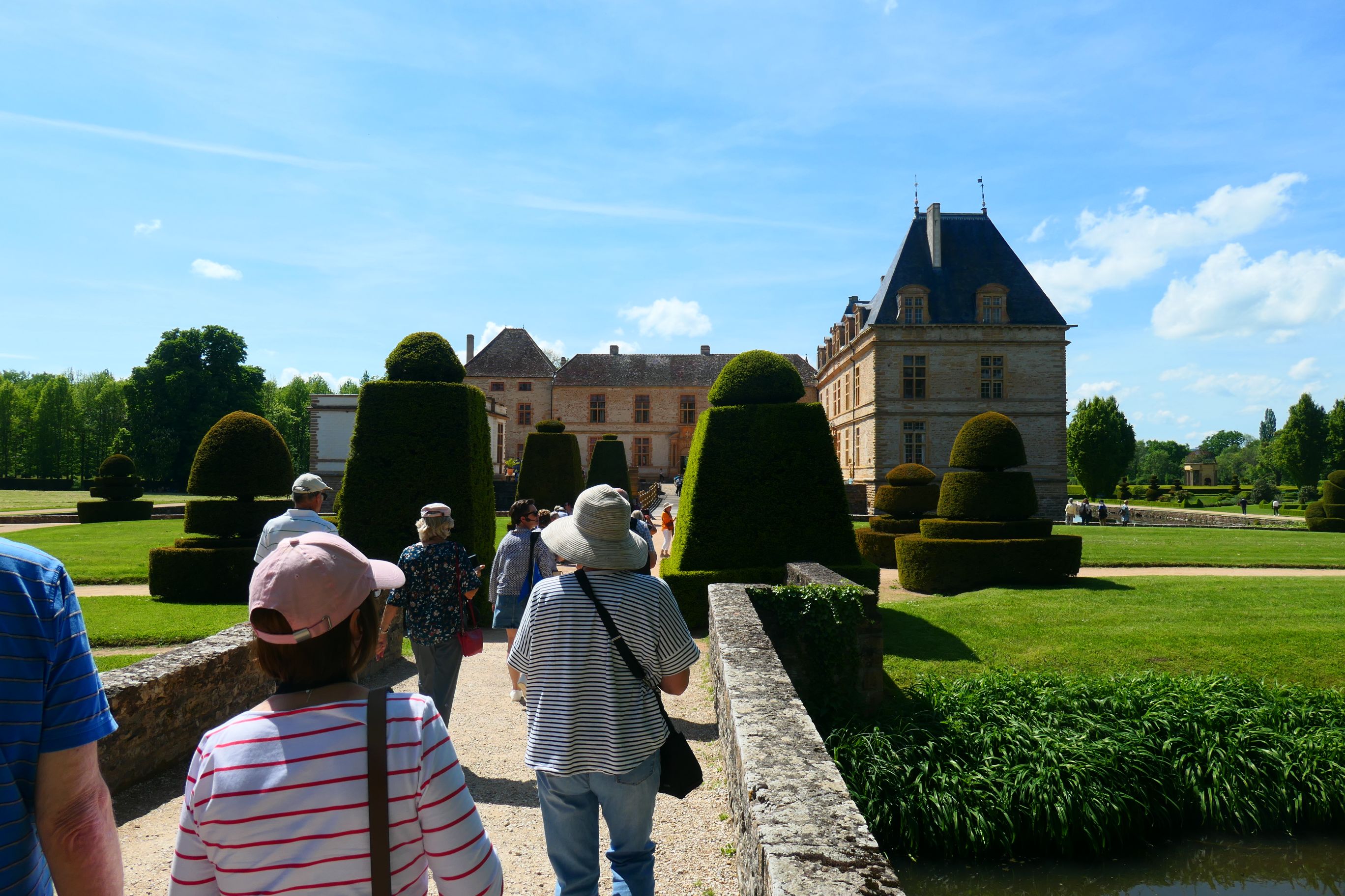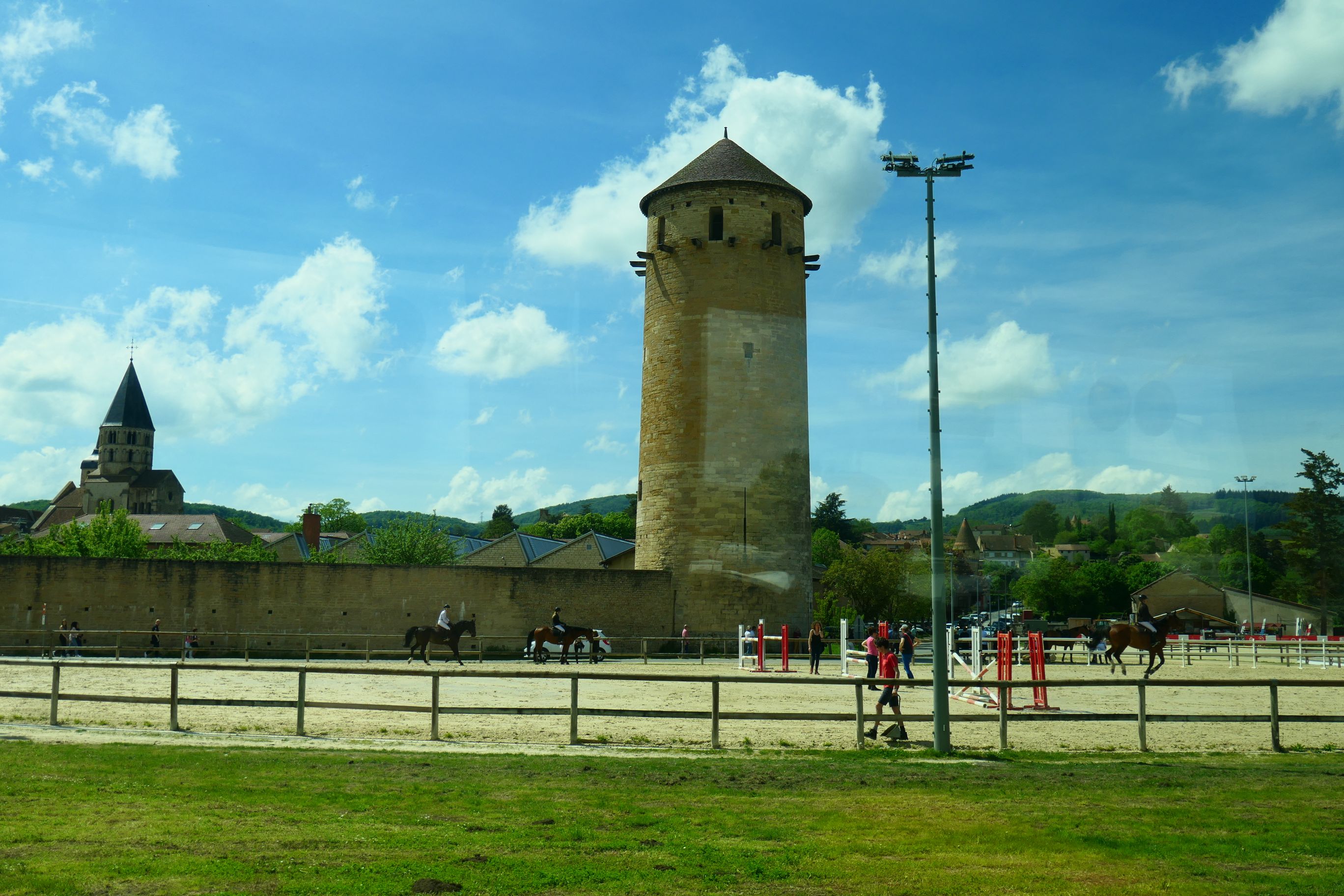 At 2.30pm we left the ship and boarded buses. Large numbers had opted for the chateau so we needed two buses. The bus journey from Macon to the small rural village of Cormatin took about 45 minutes and covered a distance of 40km. The route took us through green farming land. There were very few vineyards in this part of Burgundy. Apparently there once were, but the soil was not considered optimal for growing vines and now cattle have replaced them. So I guess this region of Burgundy will be better known for its cheeses than its wines. One town we went through, Cluny, is famous for its dressage training. There were hundreds of horse floats in a large car park, and across the road many smartly dressed riders were putting their horses through a number of different equestrian skills. I saw what appeared to be dressage and showjumping taking place in the sort of arenas gymkhana events occur in.