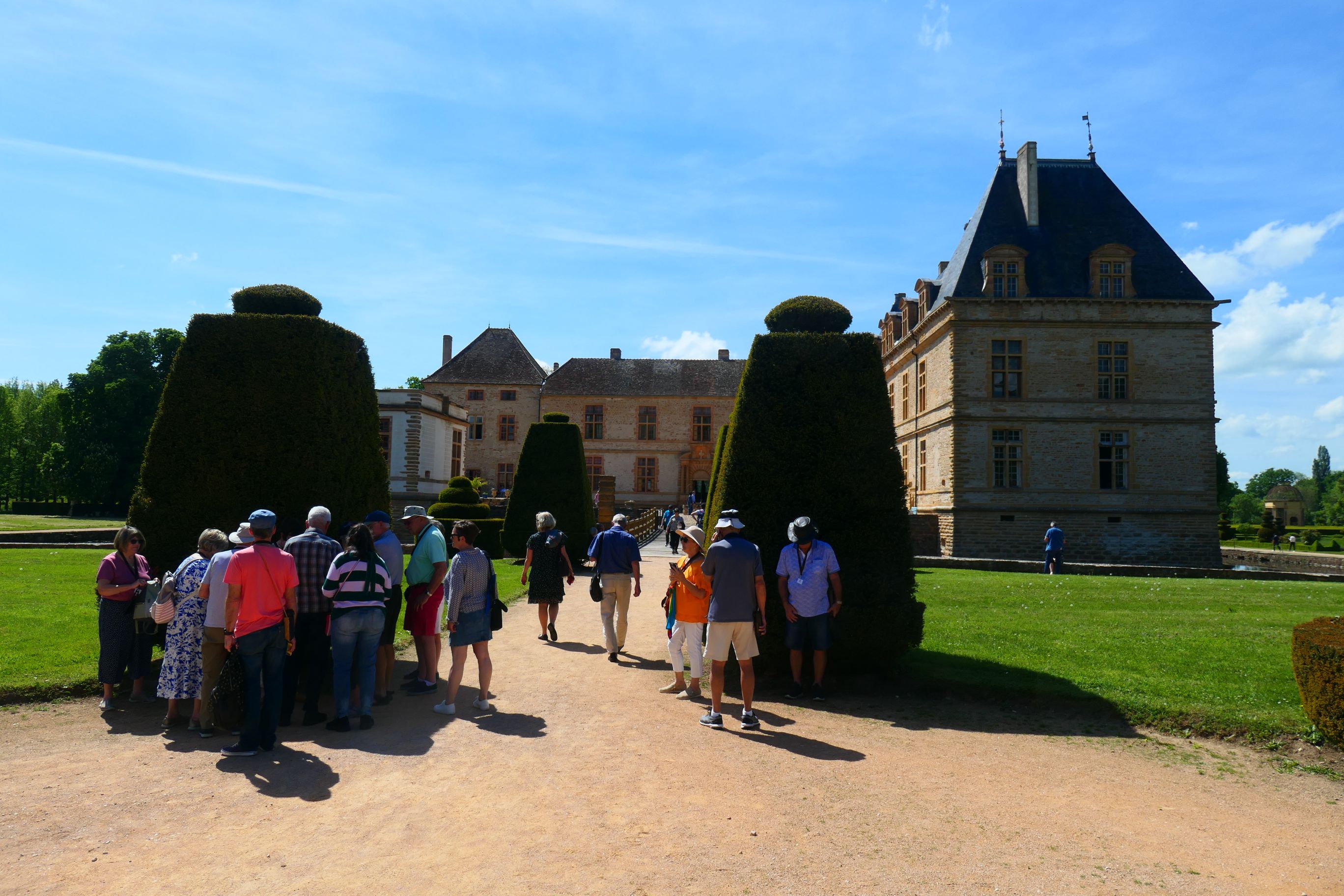 This morning our ship docked in Macon, a river port town in the south of Burgundy. We ate lunch on the boat and then split into three different activity groups. Months ago, when we booked our trip, we were give a choice of three activities for today. We had to make our choices well in advance so bookings could be made with the attractions, buses etc. The Freechoice activities (as Scenic calls them) were either a cooking class in the town, a trip to a truffle farm or a visit to a historic chateau. We chose the latter.