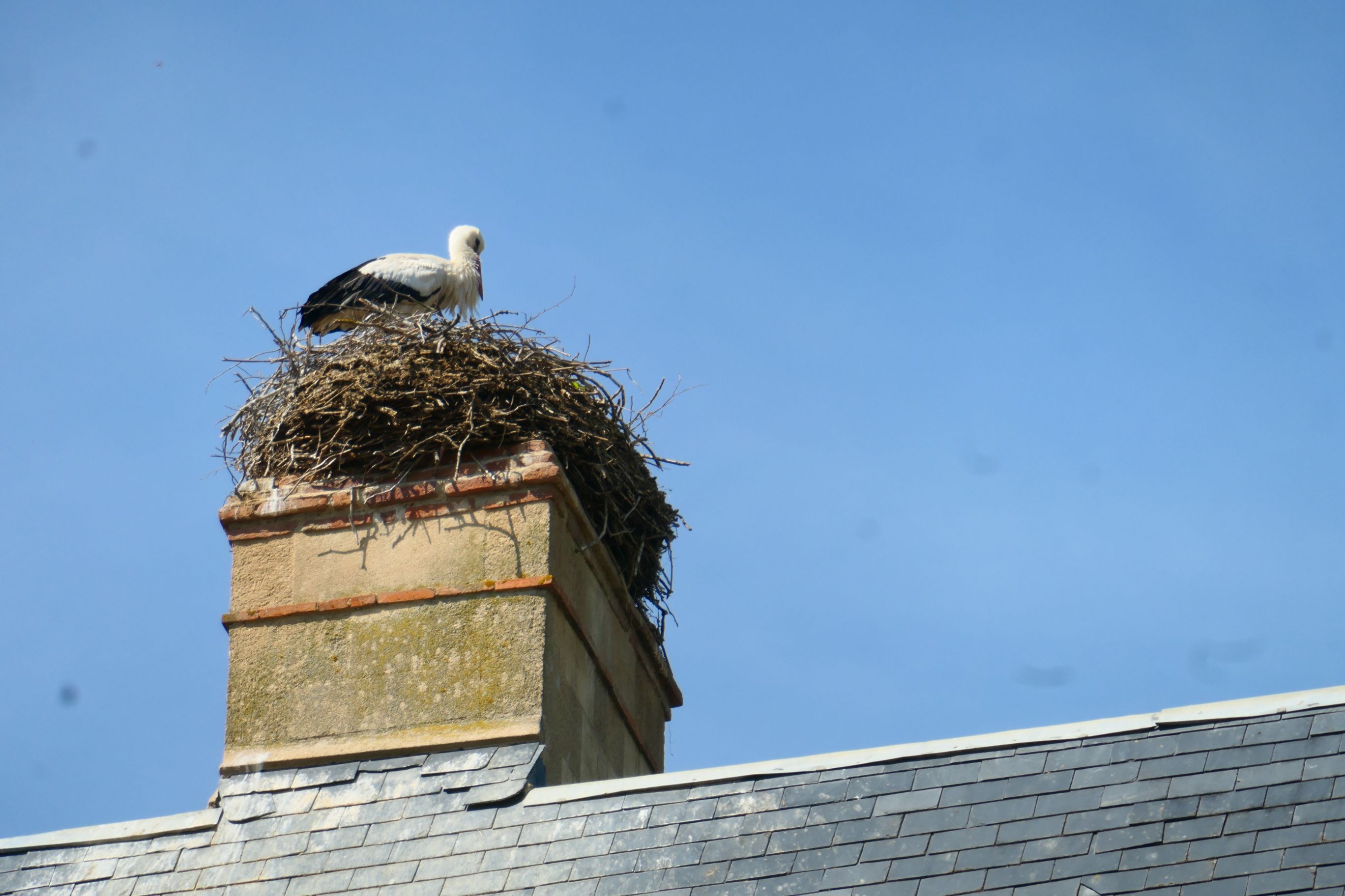 A glance at the chimneys high above the ground revealed a stork sitting on a nest. Apparently it’s quite common to find one there.