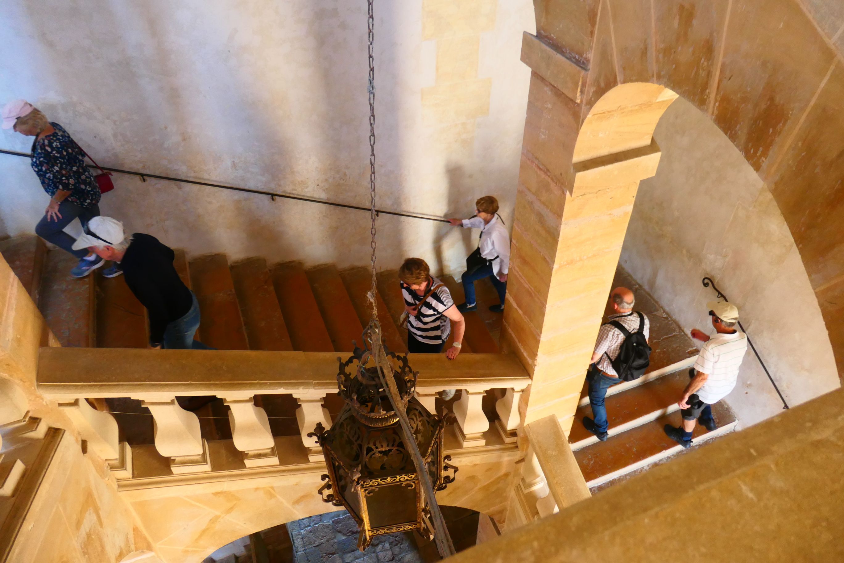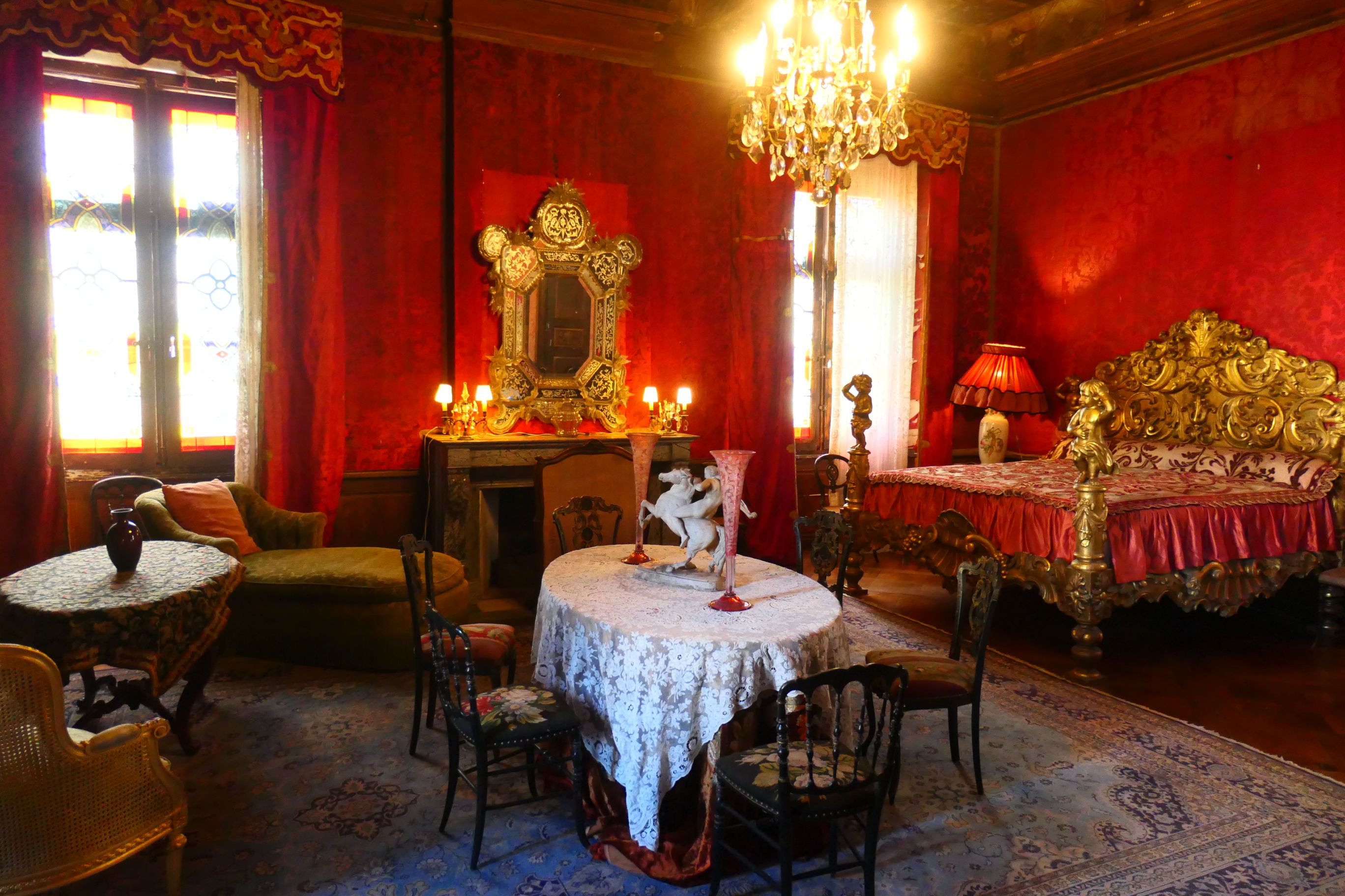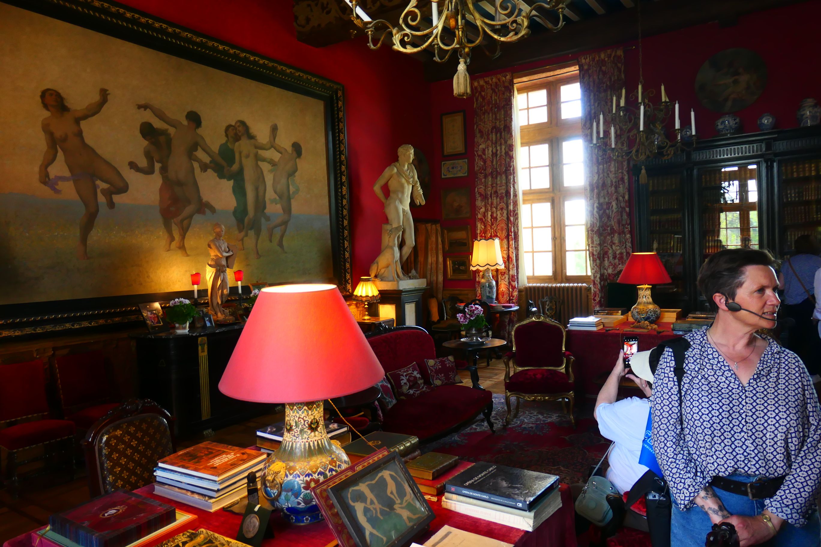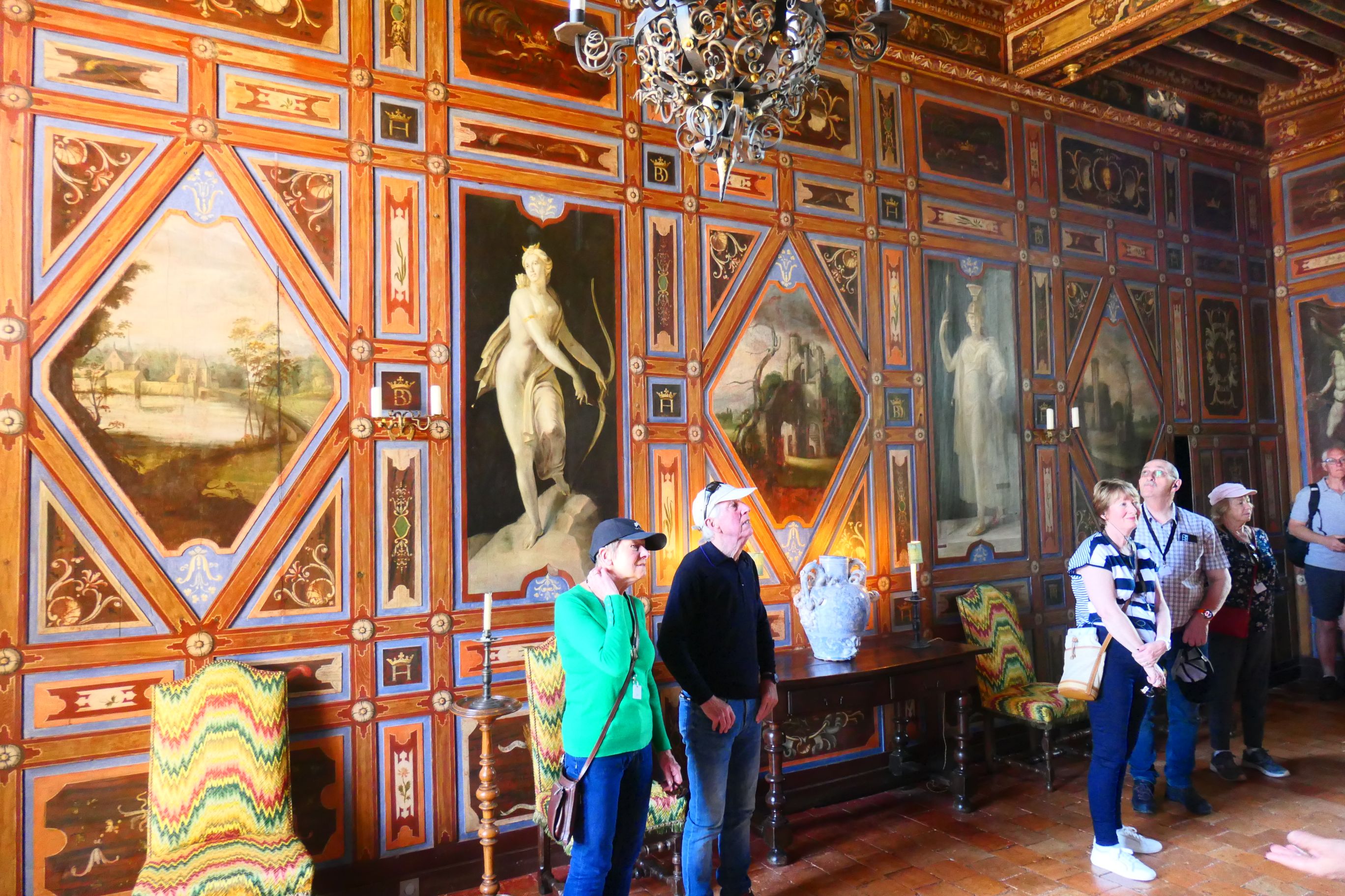 Our guide was eager to take us inside the building. If we had expected the colours and decor inside the building to mirror the external appearance of the chateau, we were misguided.