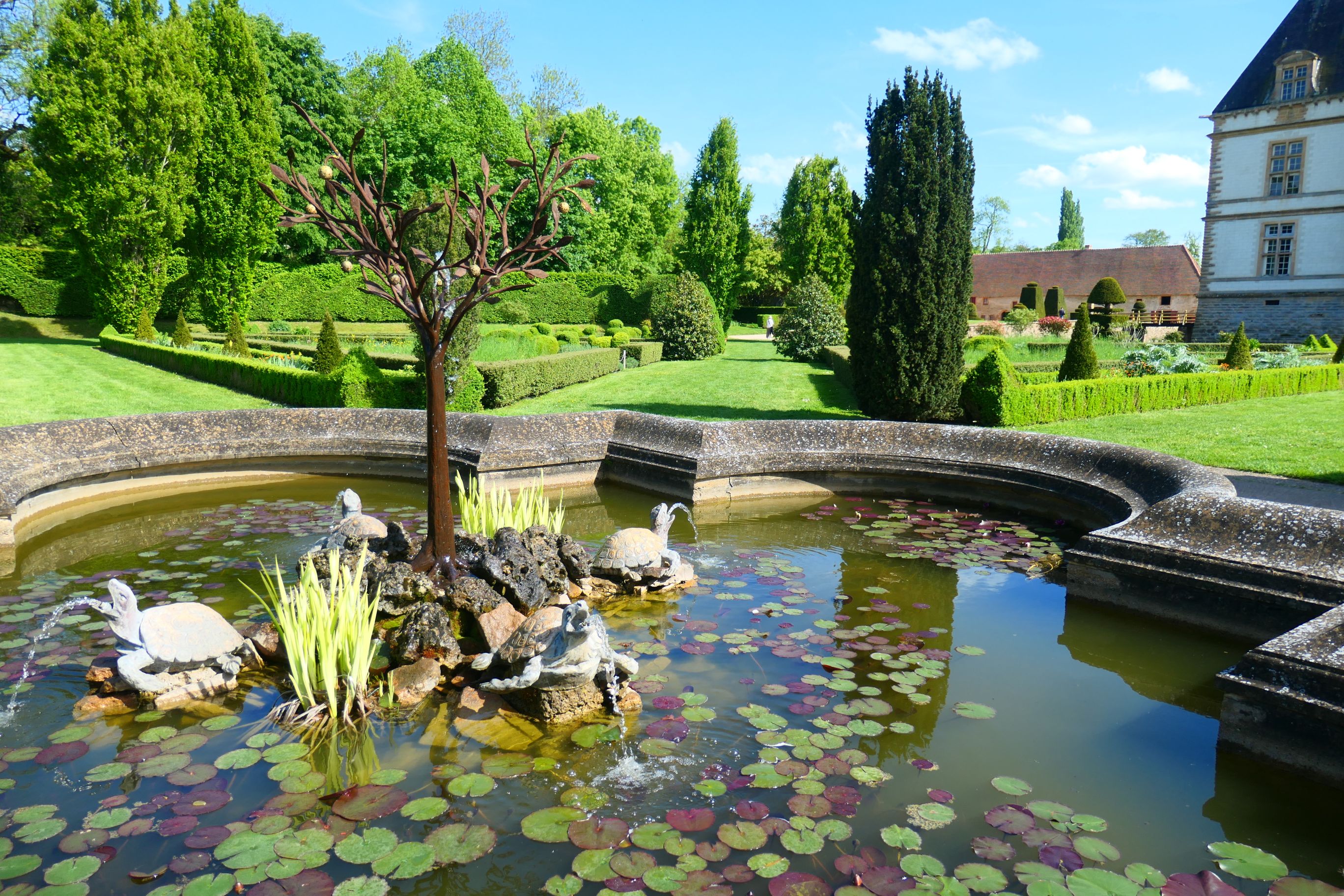 And just as the building and the rooms were meant to display wealth, power and influence, so too were the gardens. Typical of other fabulous French gardens, they were laid out in geometric patterns that were clearly visible from the upper floors of the chateau. There was a maze with a central tower and spiral staircase in the middle where you could climb to a vantage point and watch the hapless guests as they tried to find their way through the labyrinth. Other parts of the garden that appeared typically French included well manicured topiary trees and large hedges. And there was a fountain placed as a feature in the centre of the garden, with water spouting from the mouths of four tortoises – you could say it was a poor man’s tortoise fountain in comparison with the famous tortoise fountain at Versailles.