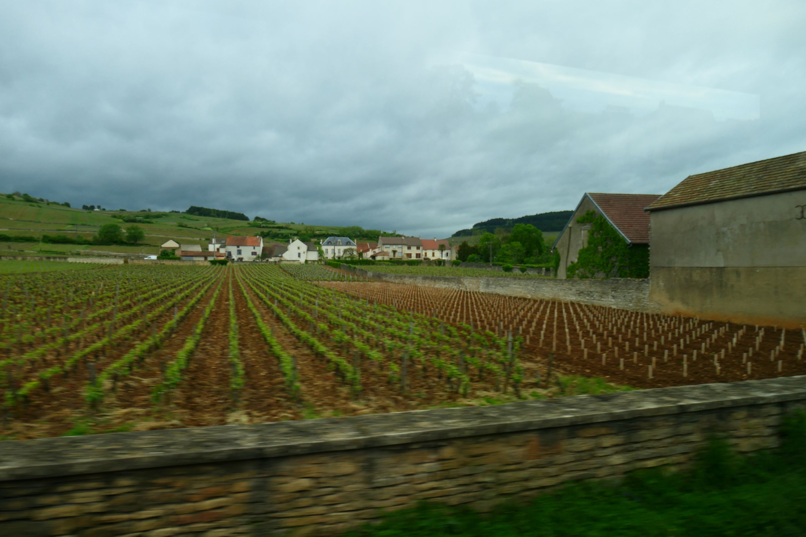 Our coach drive took us through one of Burgundy’s most famous wine regions, the Côte d’Or – Meursault, Volnay and Pommard are three of its best known wine communes. The vines are low to the ground, where they can benefit from the warmth radiating from the soil. Two types of grape are essentially grown in this region – chardonnary for white wines and pinot noir for reds. Sometimes the vineyards were enclosed by dry stone wall fences, a direct result of the amount of rocks and stones the vignerons had to extract from the soil when preparing the ground for their vines. Our English speaking guide was very knowledgeable about the regional wines of this area and she described each of them very eloquently. I recall one description of hers, that the wine was so special it was ‘like an angel peeing on your tongue’.
