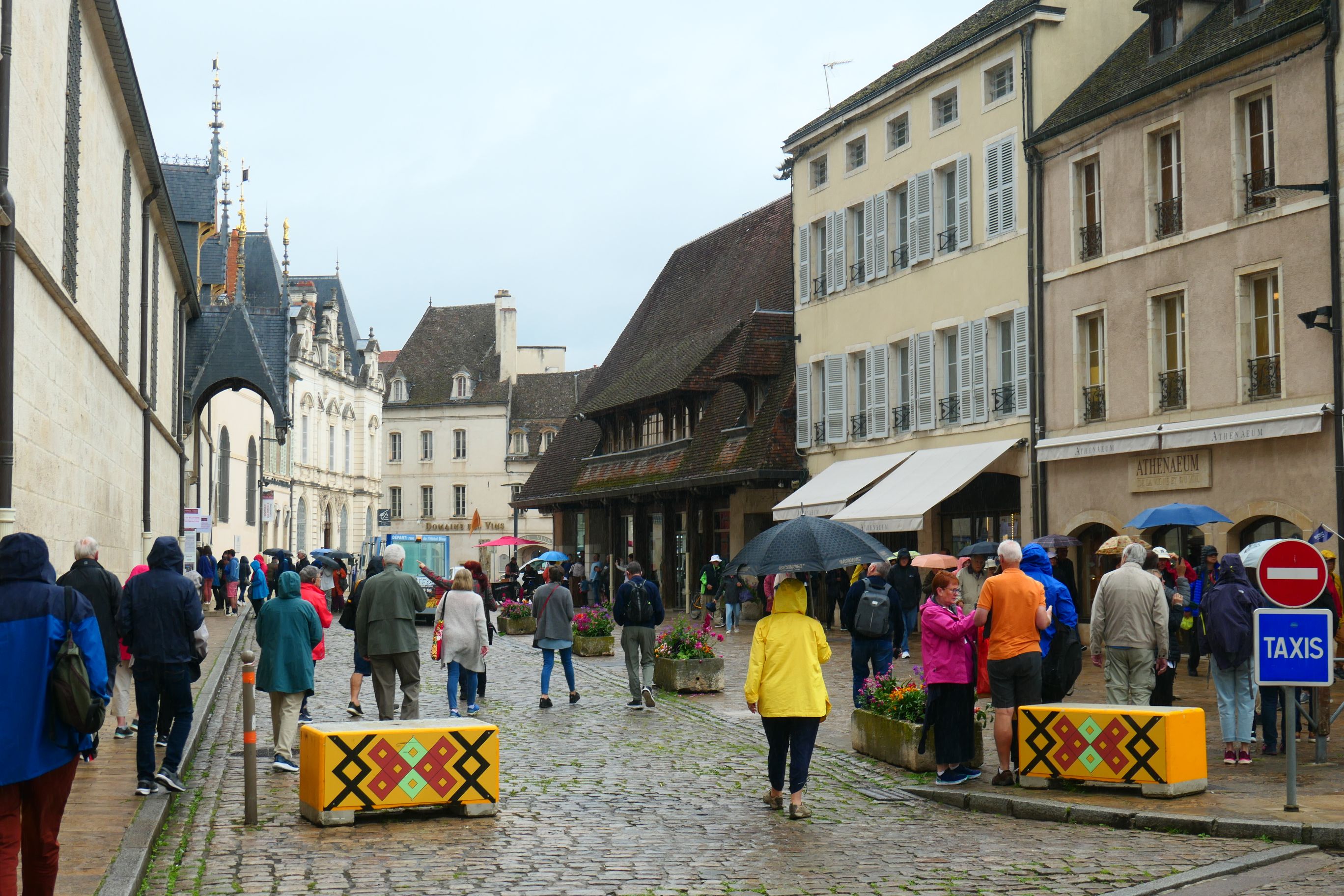This morning our ship was docked at Chalon-sur-Saône in Burgundy. All three groups for today’s Freechoice options departed the ship immediately after breakfast. One group visited a winery, another visited a photography museum (the first ever photograph was taken in Chalon), and our group drove about 30 km north by coach to visit the historic town of Beaune.